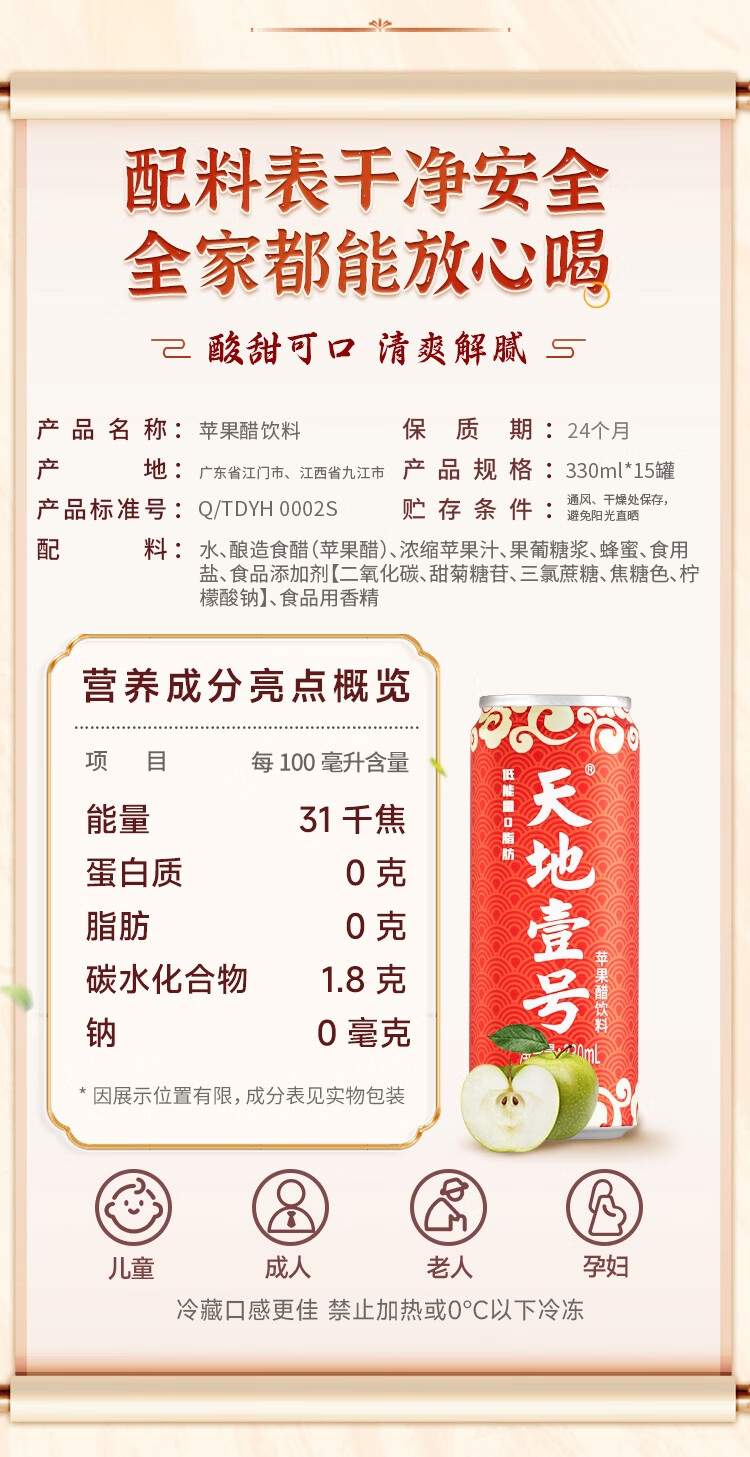 天地壹号国风插画版330ml*15苹果醋饮料低糖0脂送礼宴请年货 多喝醋有好处