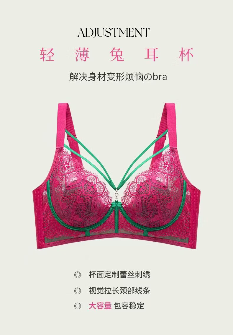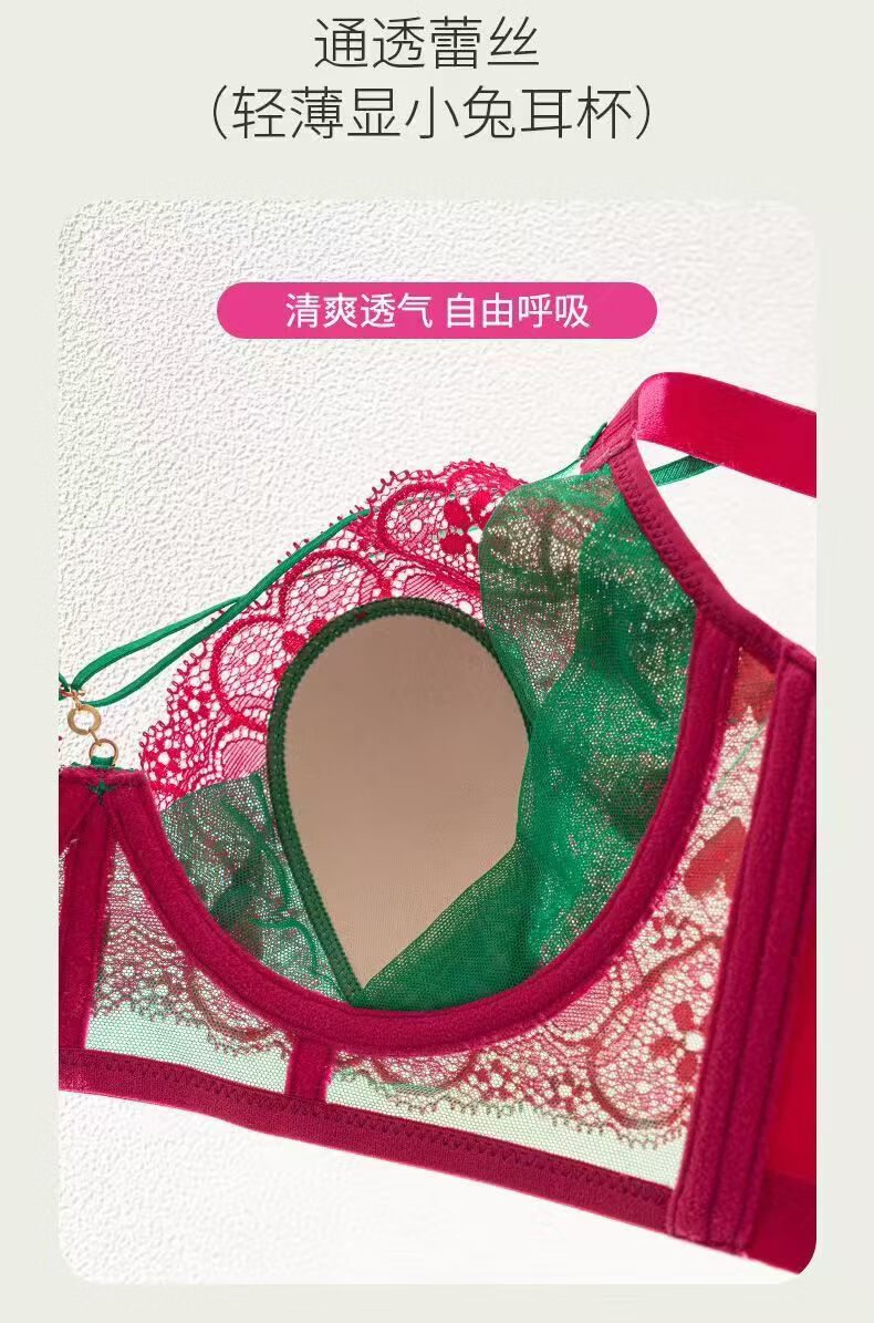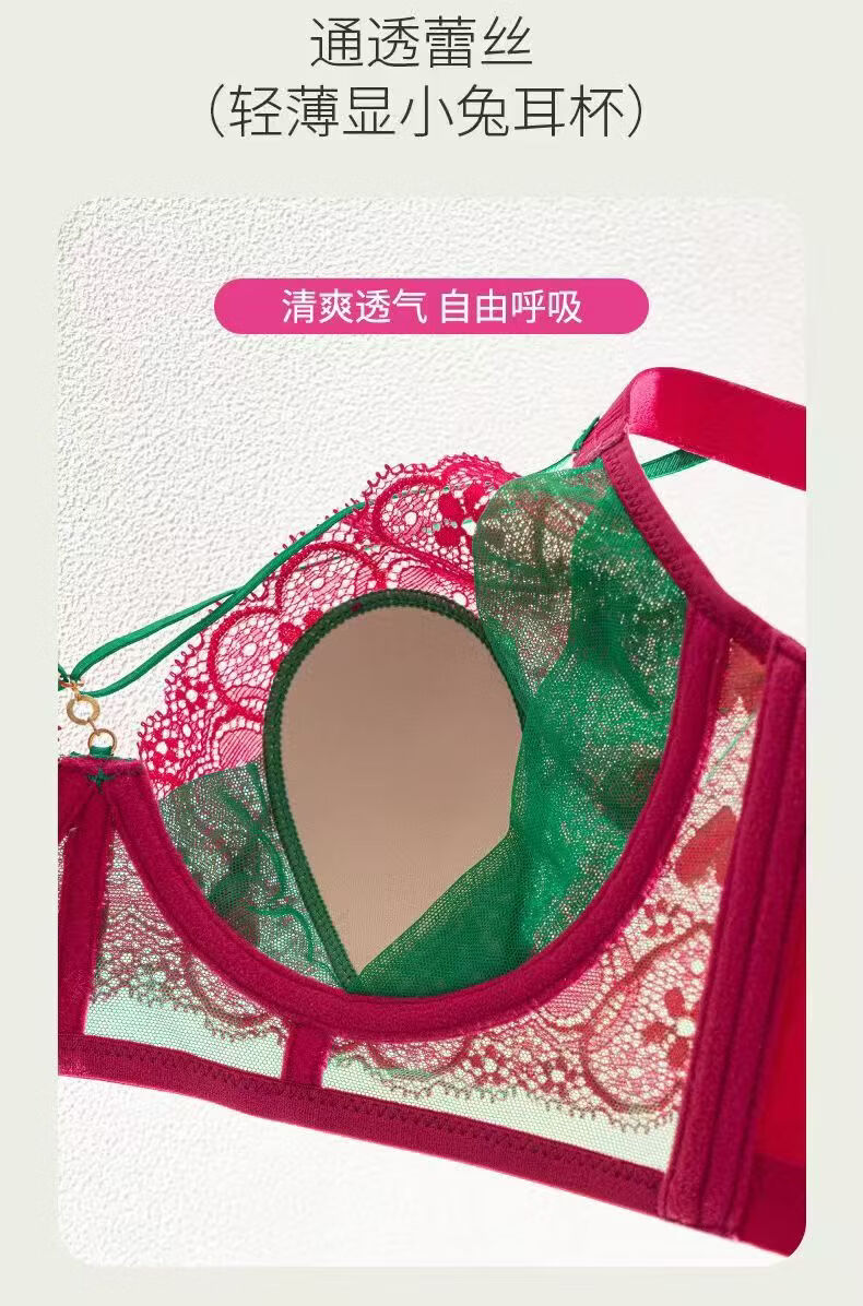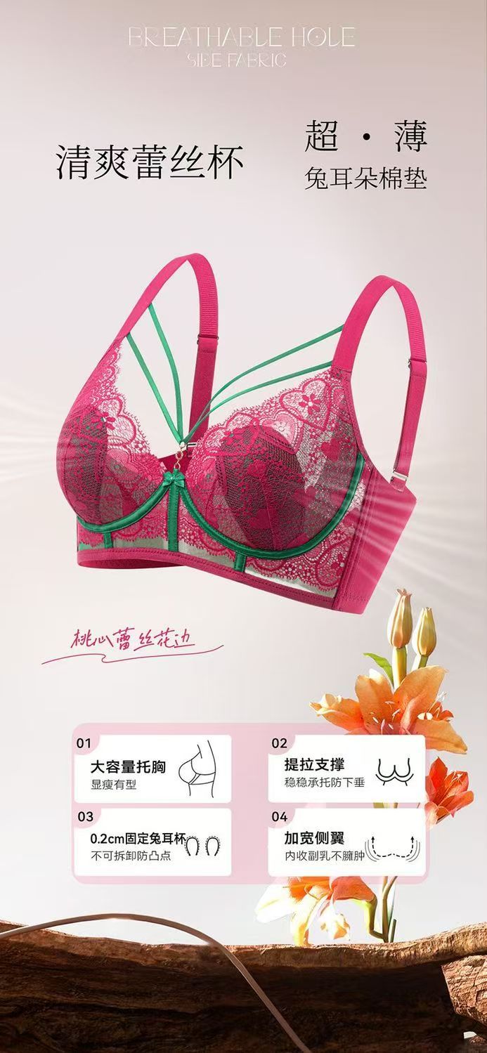 超薄文胸免耳杯大胸显小性感纯欲撞色蕾丝聚拢上托防下垂文胸内衣 米色+浅灰 (水晶蓝色) 95B 42/95B