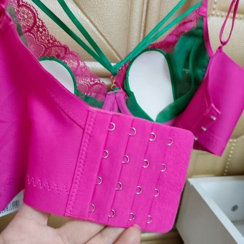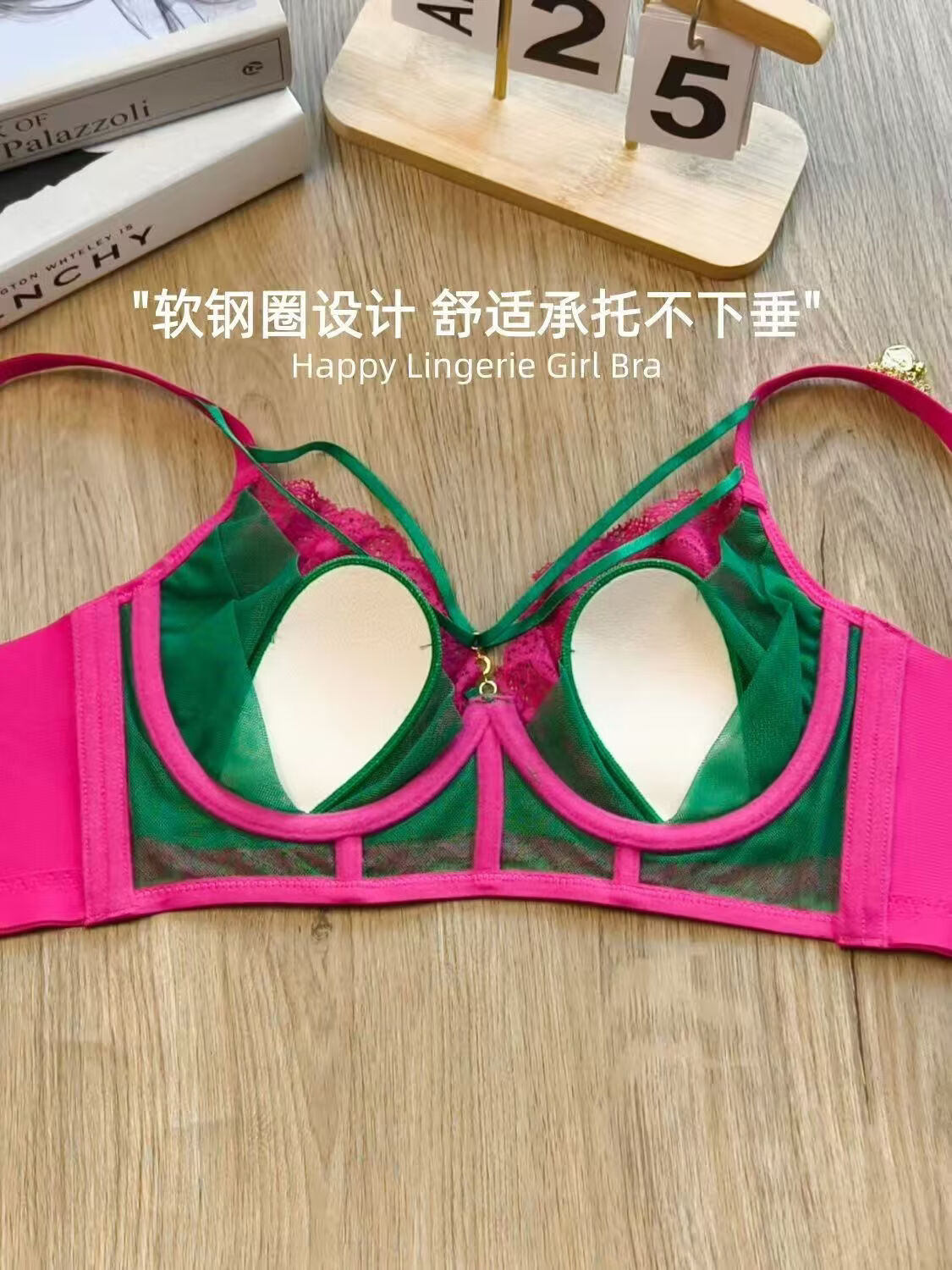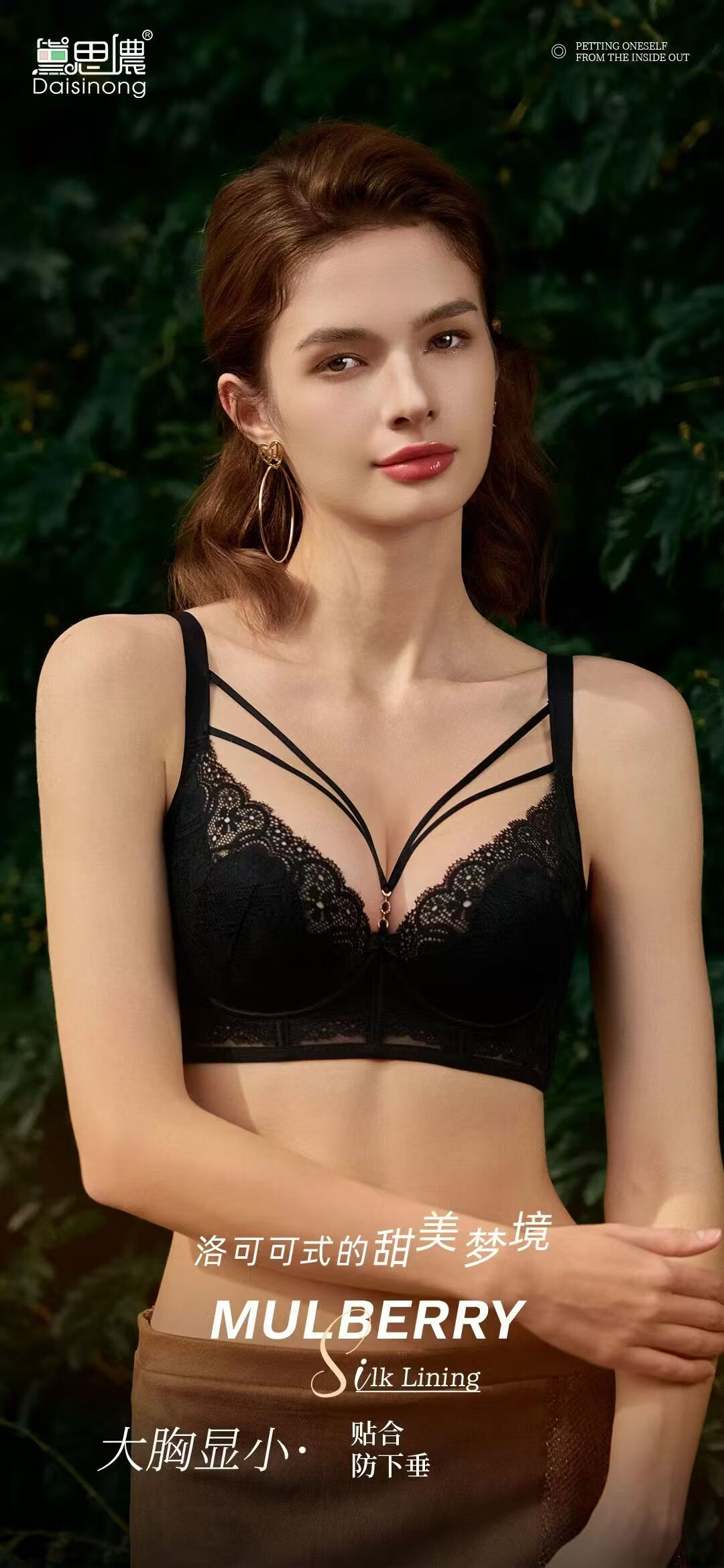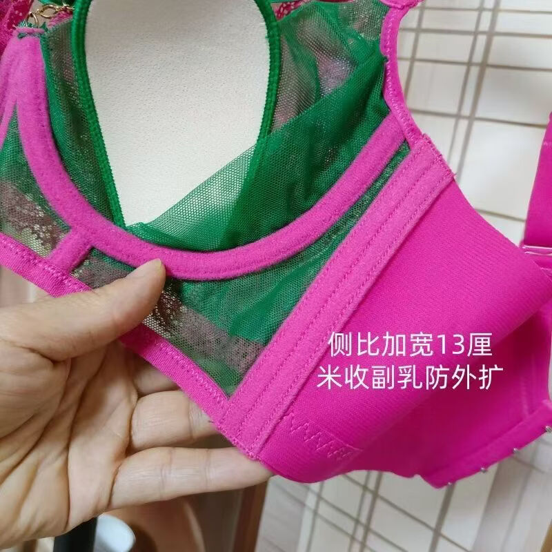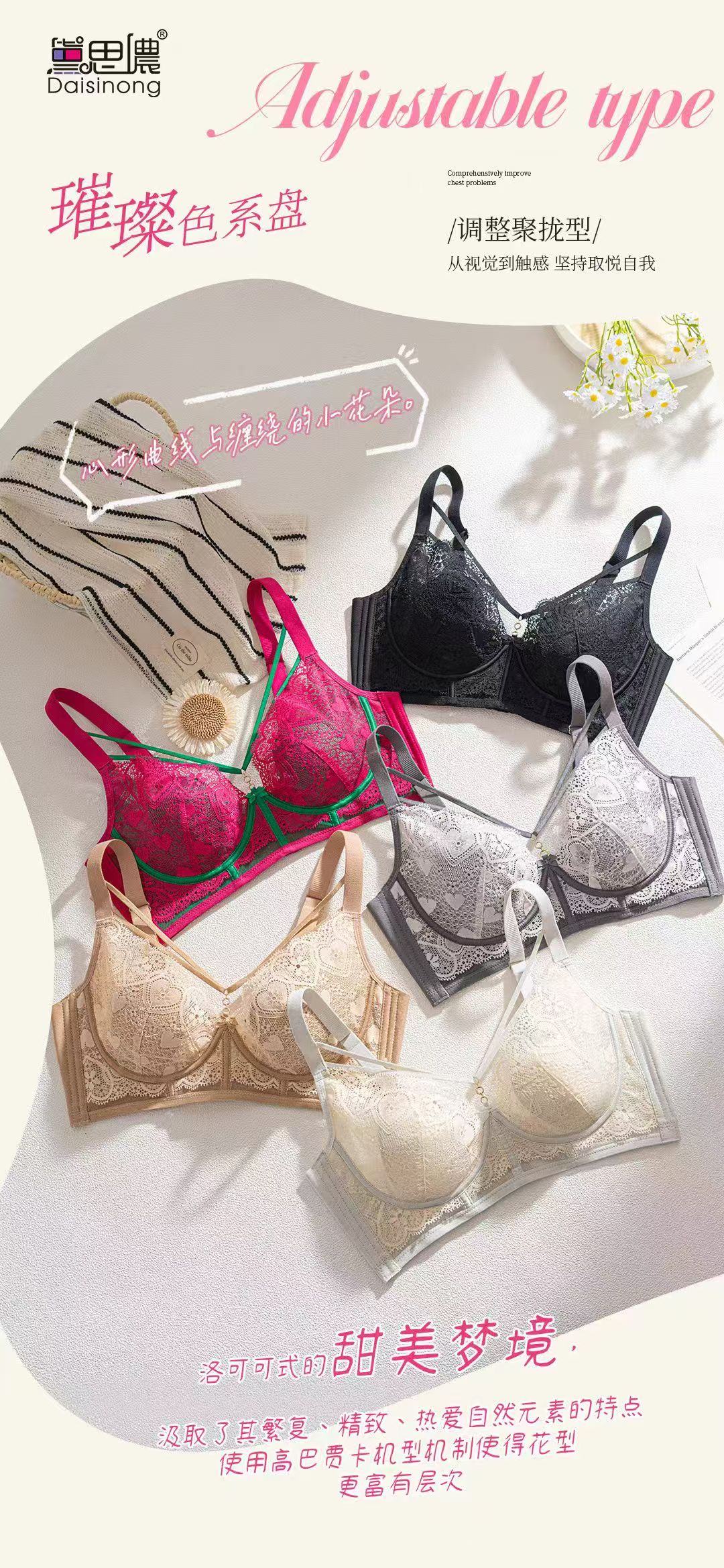 超薄文胸免耳杯大胸显小性感纯欲撞色蕾丝聚拢上托防下垂文胸内衣 米色+浅灰 (水晶蓝色) 95B 42/95B