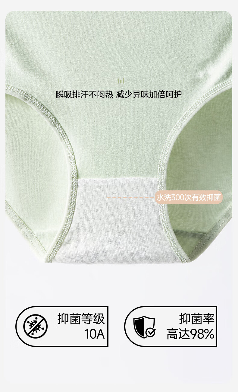 维彩菲 4条盒装简约纯色抗菌内裤女士亲肤抑菌三角裤女舒适透气中腰内裤 【4条盒装】肤色+浅绿+粉色+粉灰 均码 (80-130斤左右)