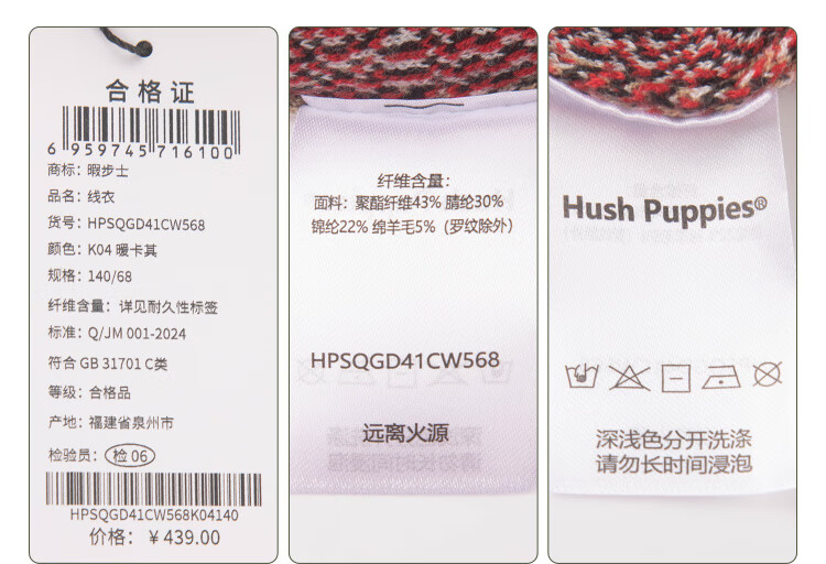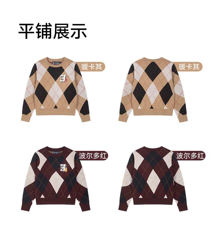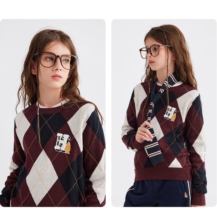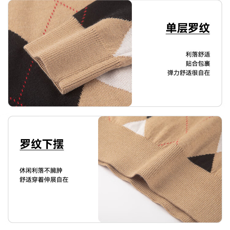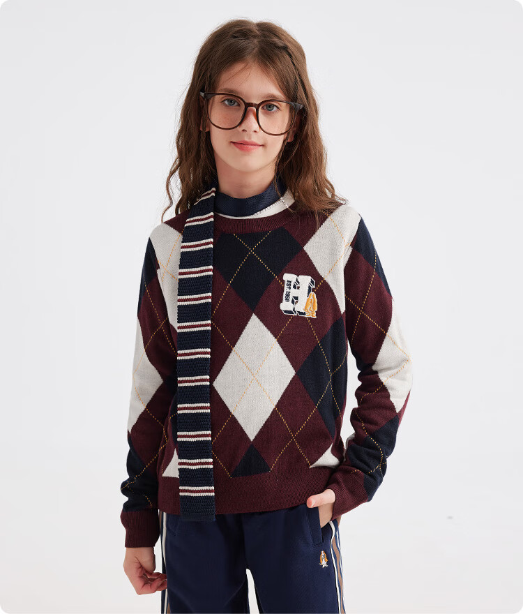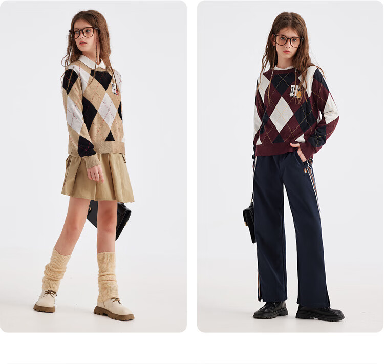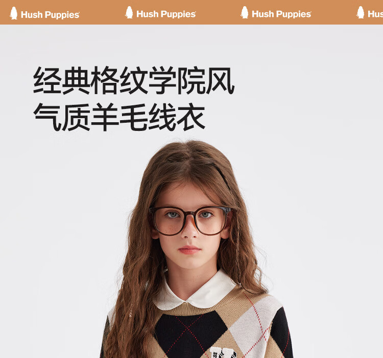 暇步士(Hush Puppies)【经典款】童装儿童女大童秋季新款气质学院风格纹线衣 暖卡其 140