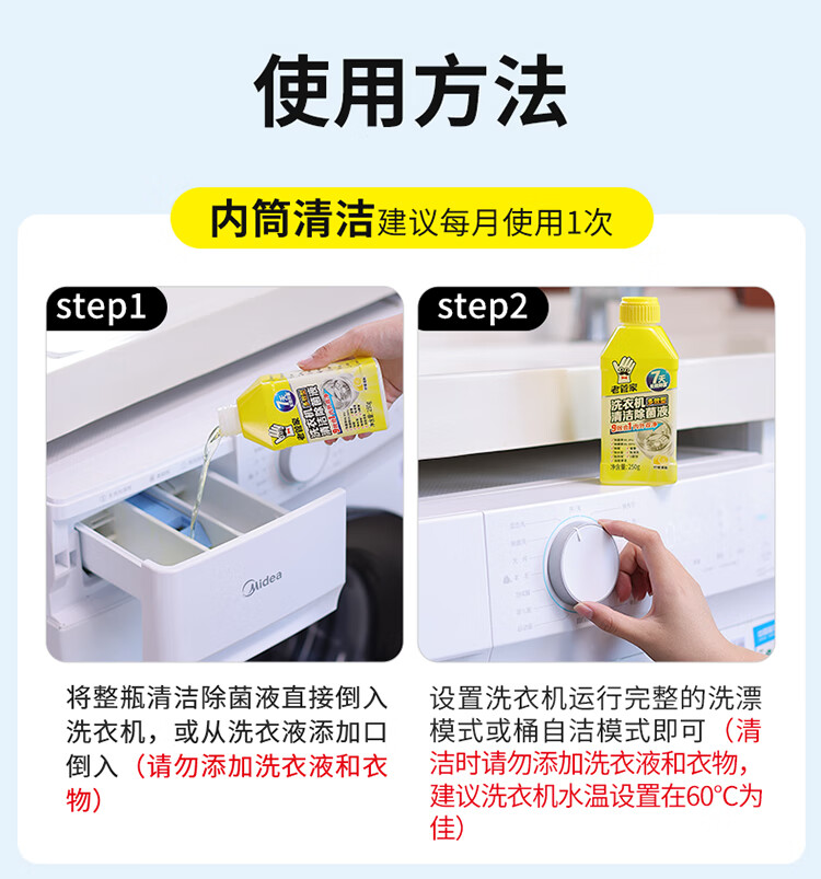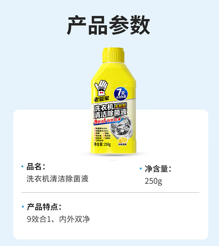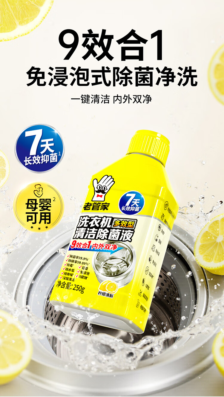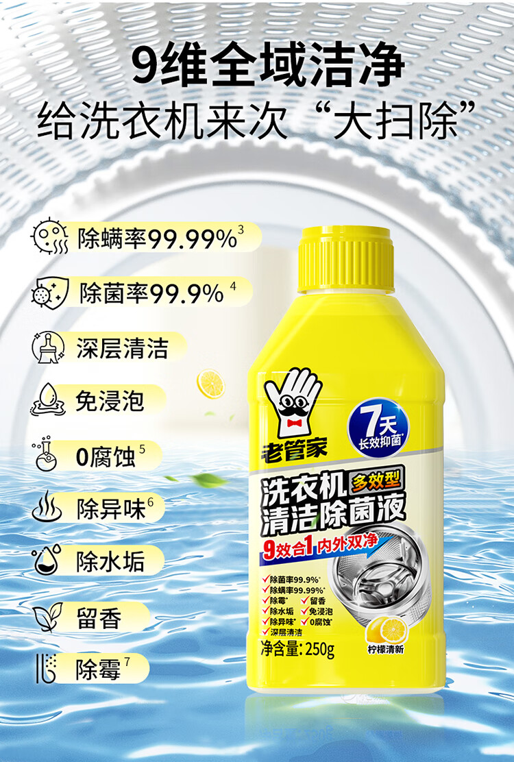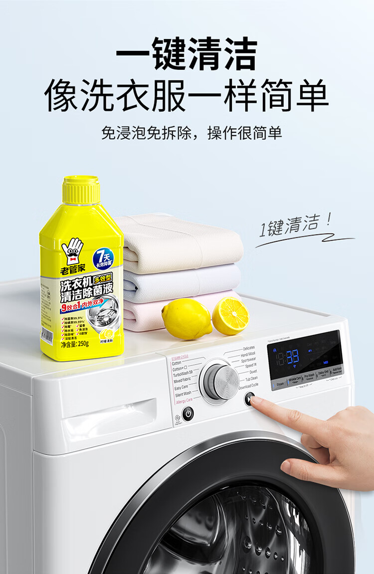 老管家洗衣机清洁除菌液滚筒波轮洗衣机深度清洁剂除垢杀菌 250g 3瓶