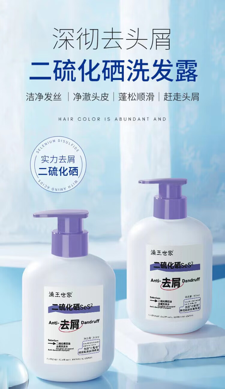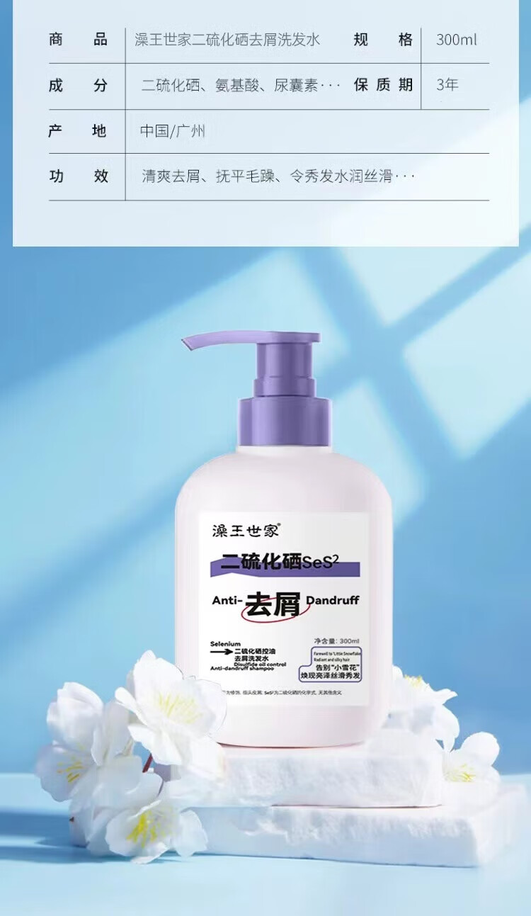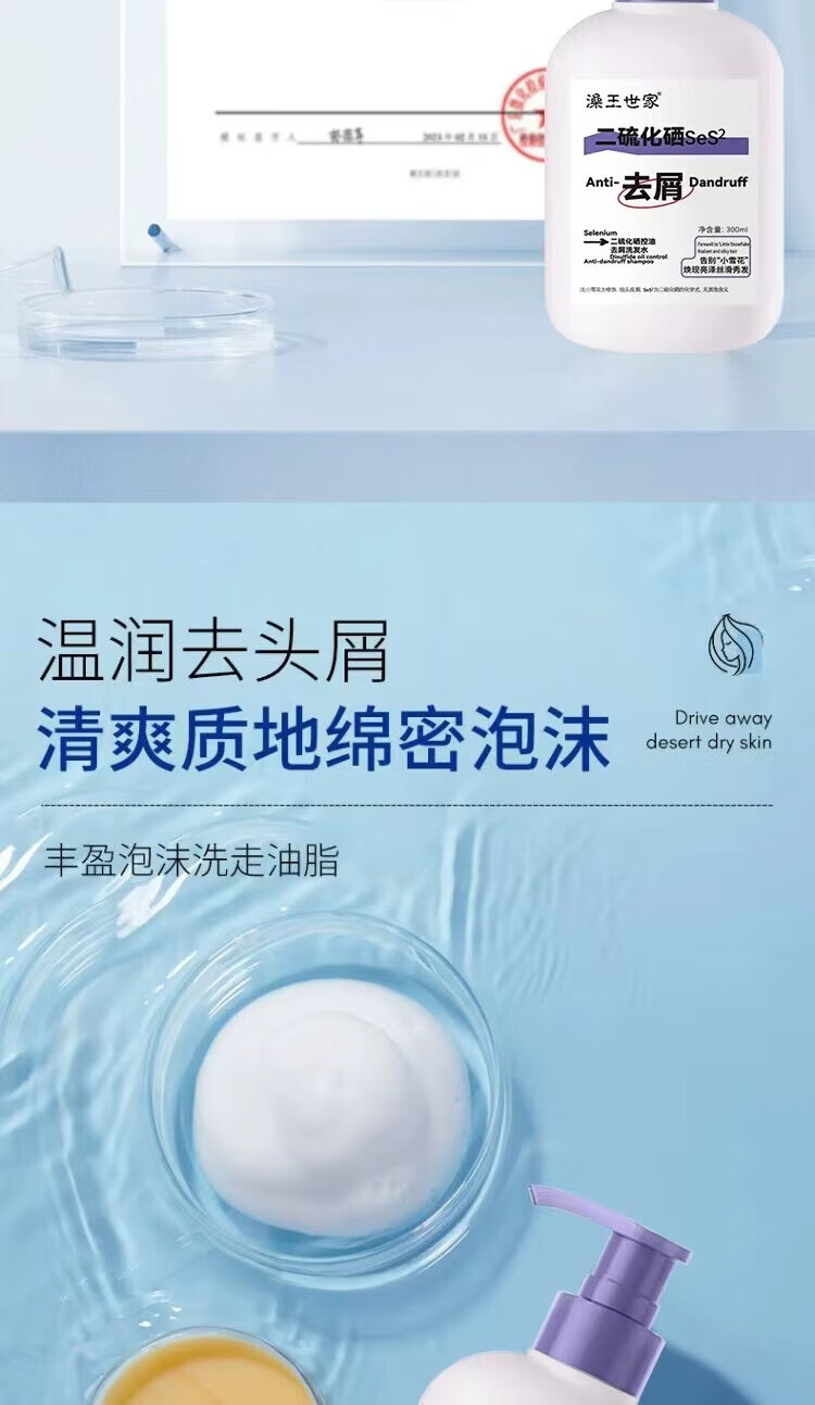 澡王世家二硫化硒洗发液去屑头皮屑洗头水洗发水洗剂流化晒 藻王二硫化硒洗发水300ml×1瓶.