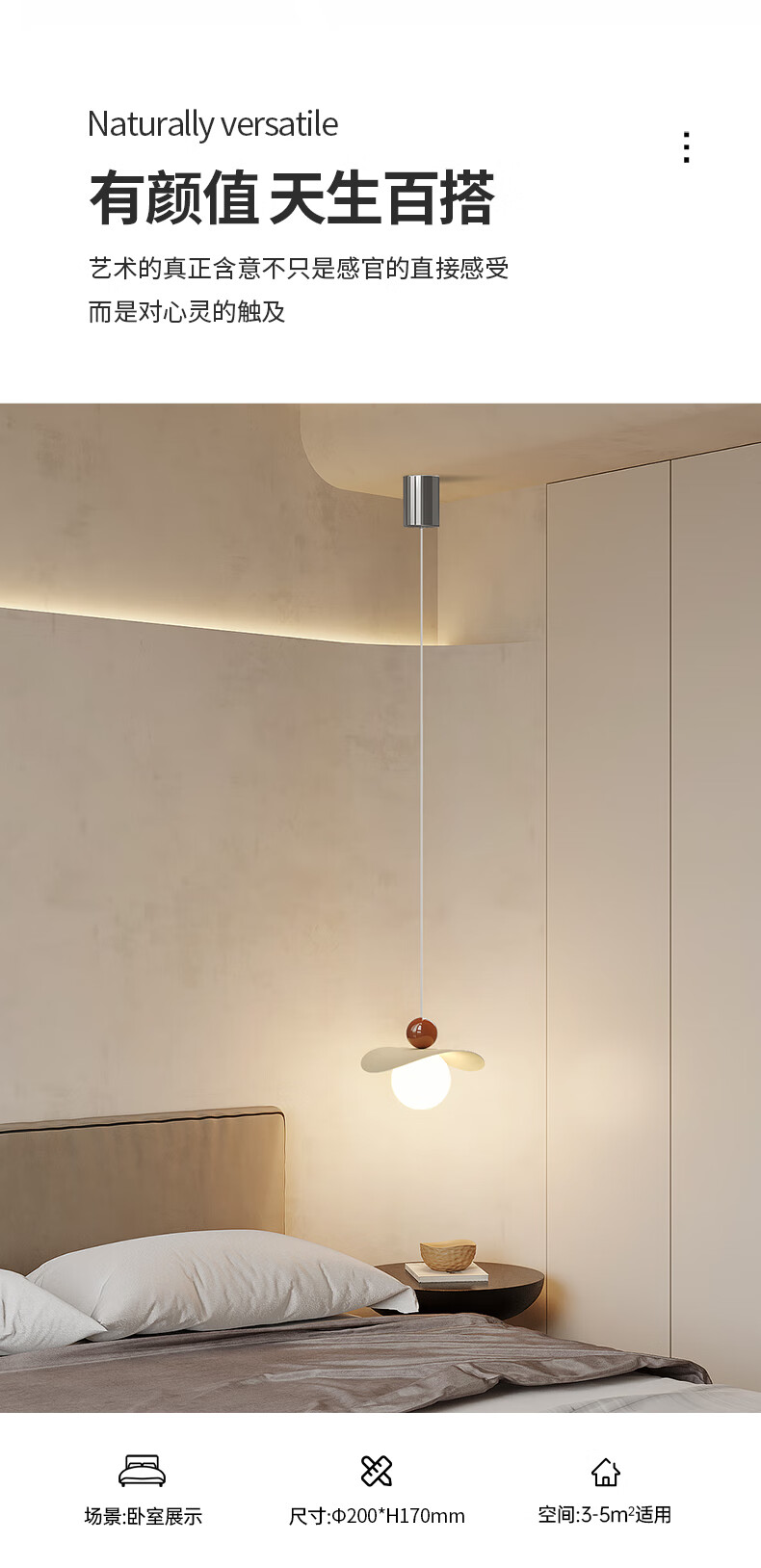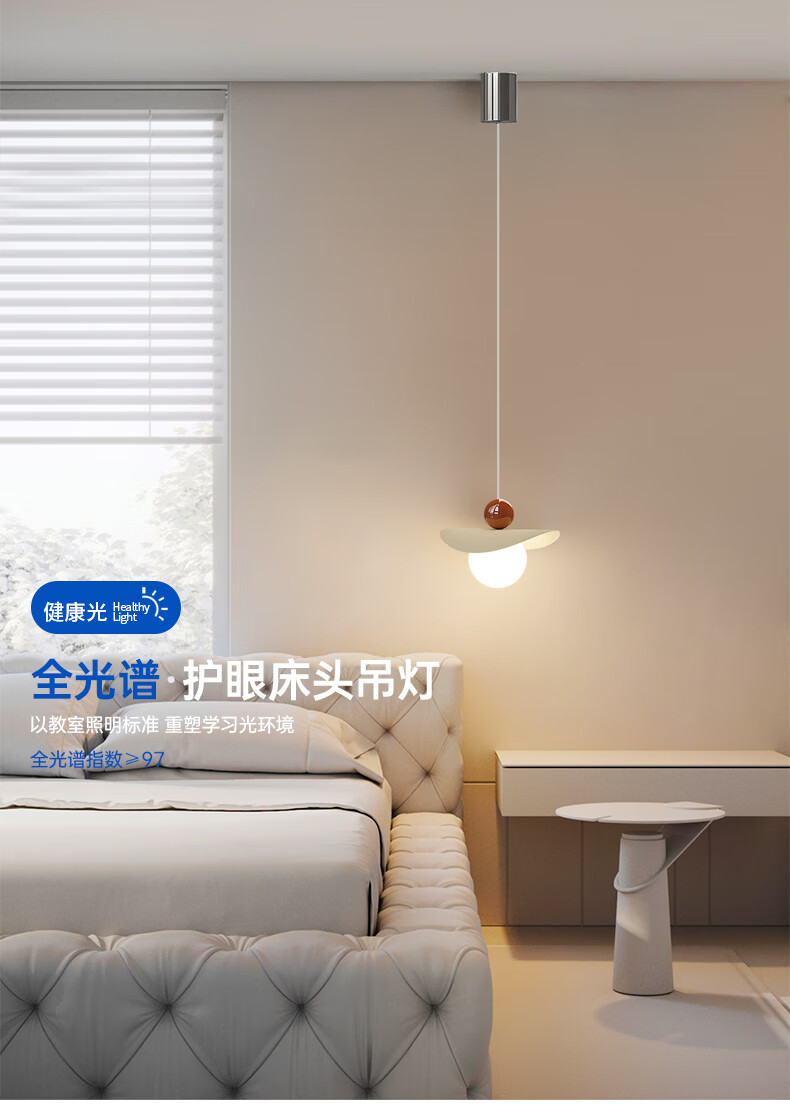 卡伯森设计师款卧室床头吊灯创意个性全光谱护眼客厅北京墙壁灯奶油风 普通款-直径20cm【三色变光】【全光谱】
