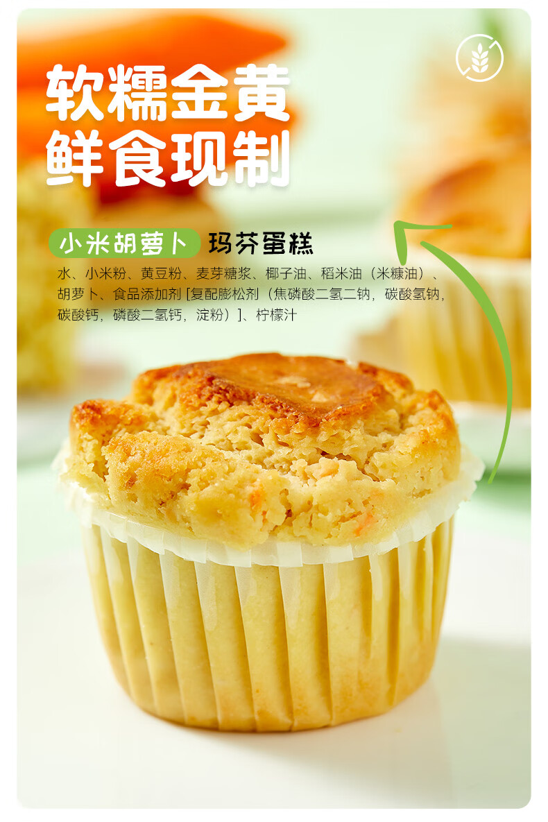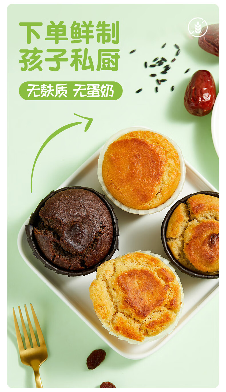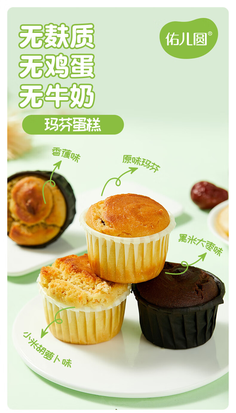 佑儿圆无小麦玛芬蛋糕240g儿童营养无蛋奶早餐零食4粒 独立无麸质生产线 黑米红枣味