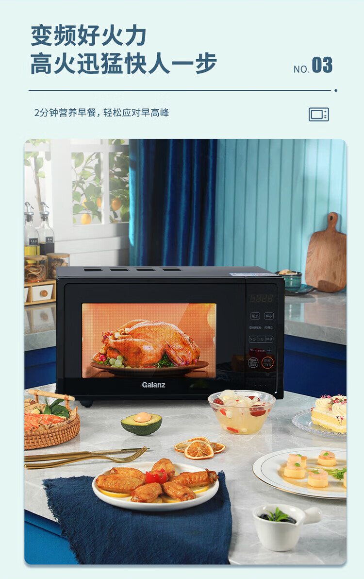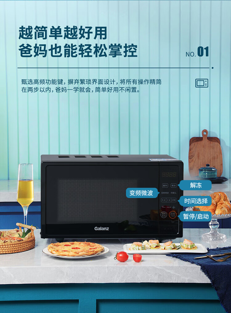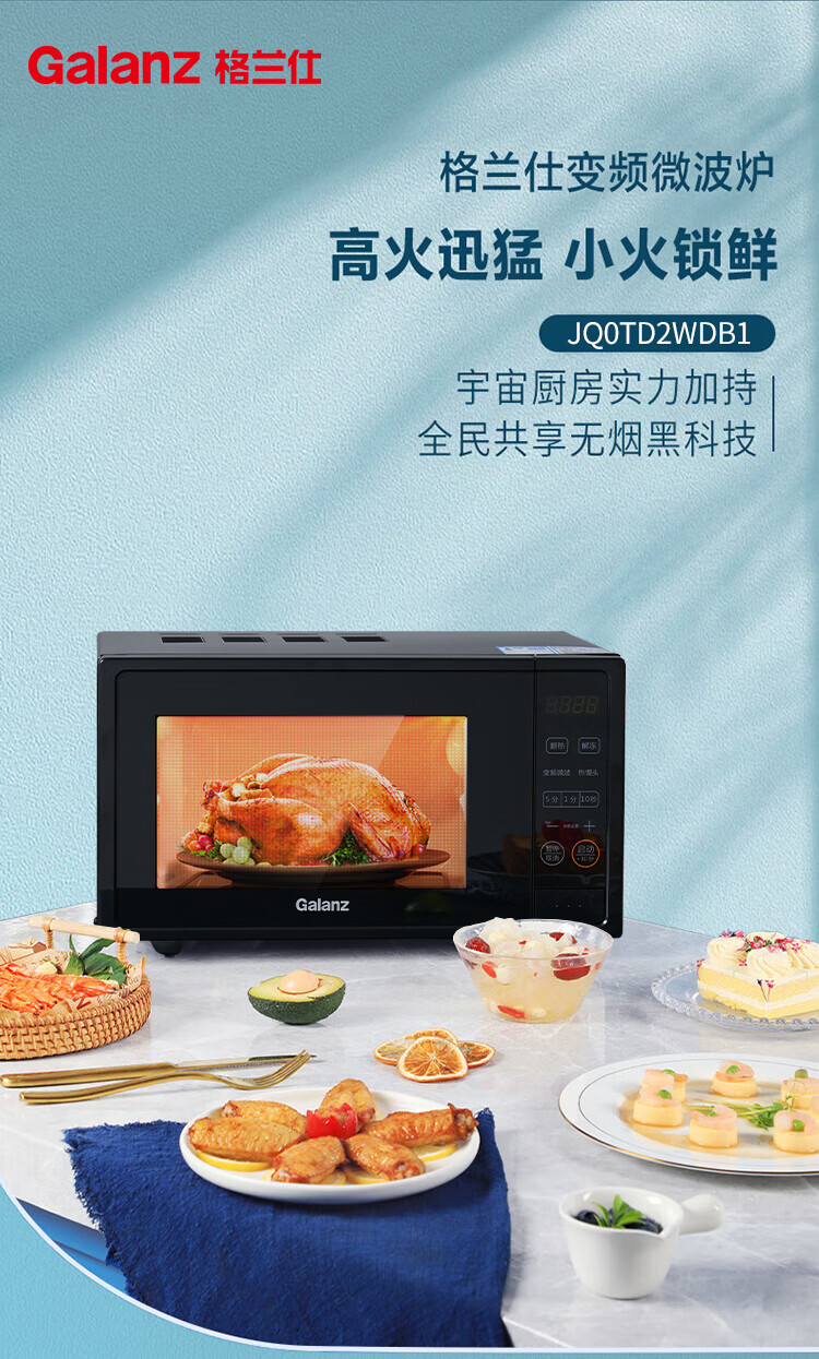 格兰仕(Galanz)一级能效变频家用微波炉20L平板易清洁一键解冻简易操作DB1
