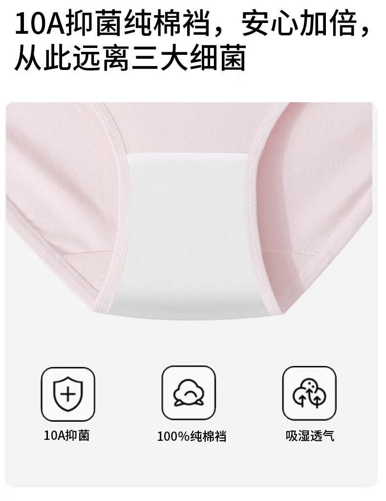 洛·恋内裤女士少女纯棉吸汗抗菌全棉裆性感舒适薄款运动透气女生三角裤 混色 【10A抗菌】 7条 XL 【建议120-140斤】
