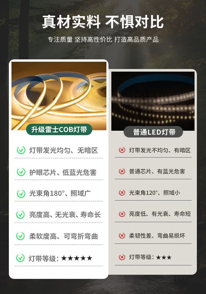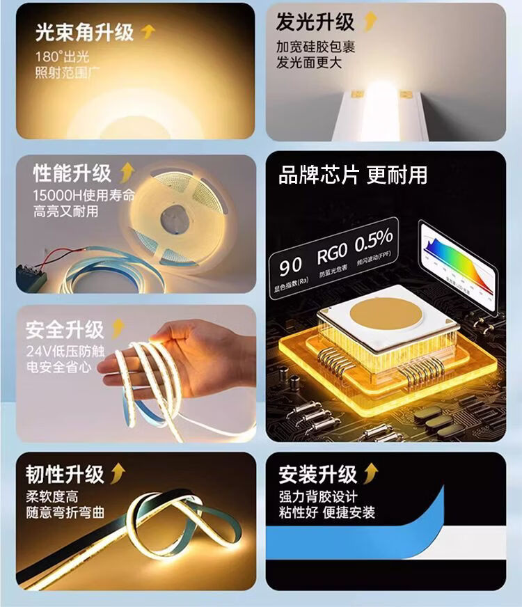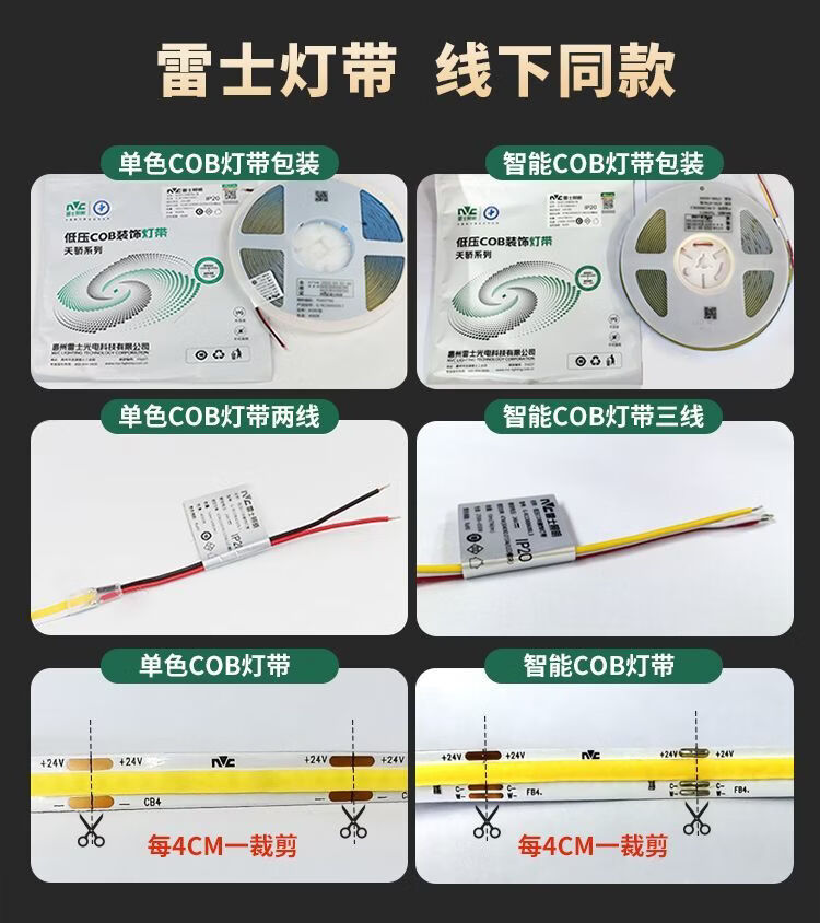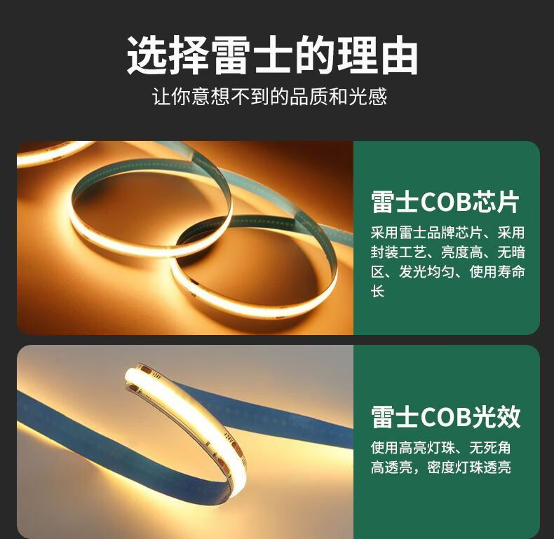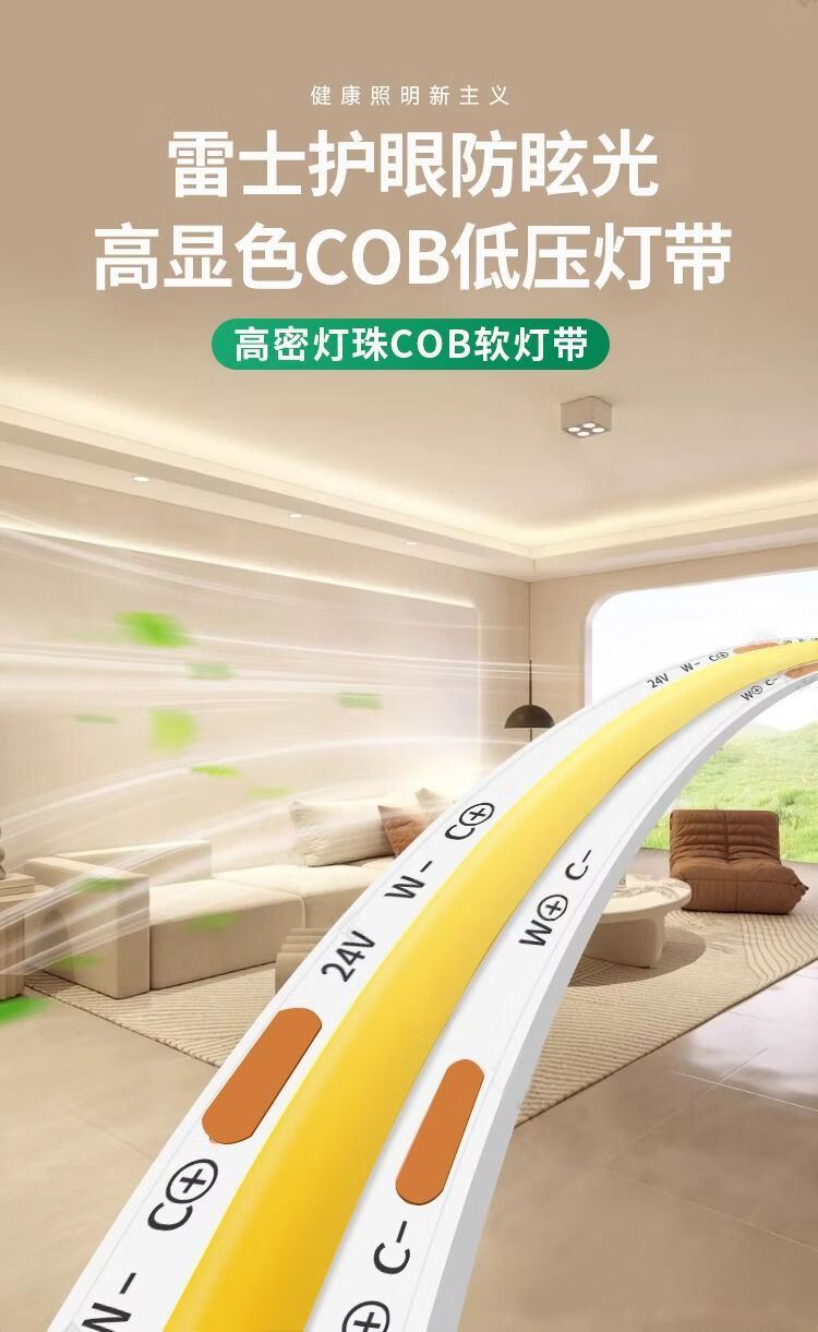 雷士cob灯带低压24v自粘led灯带无频闪线性灯家用客厅吊顶全光谱灯带 其他米数联系客服搭配