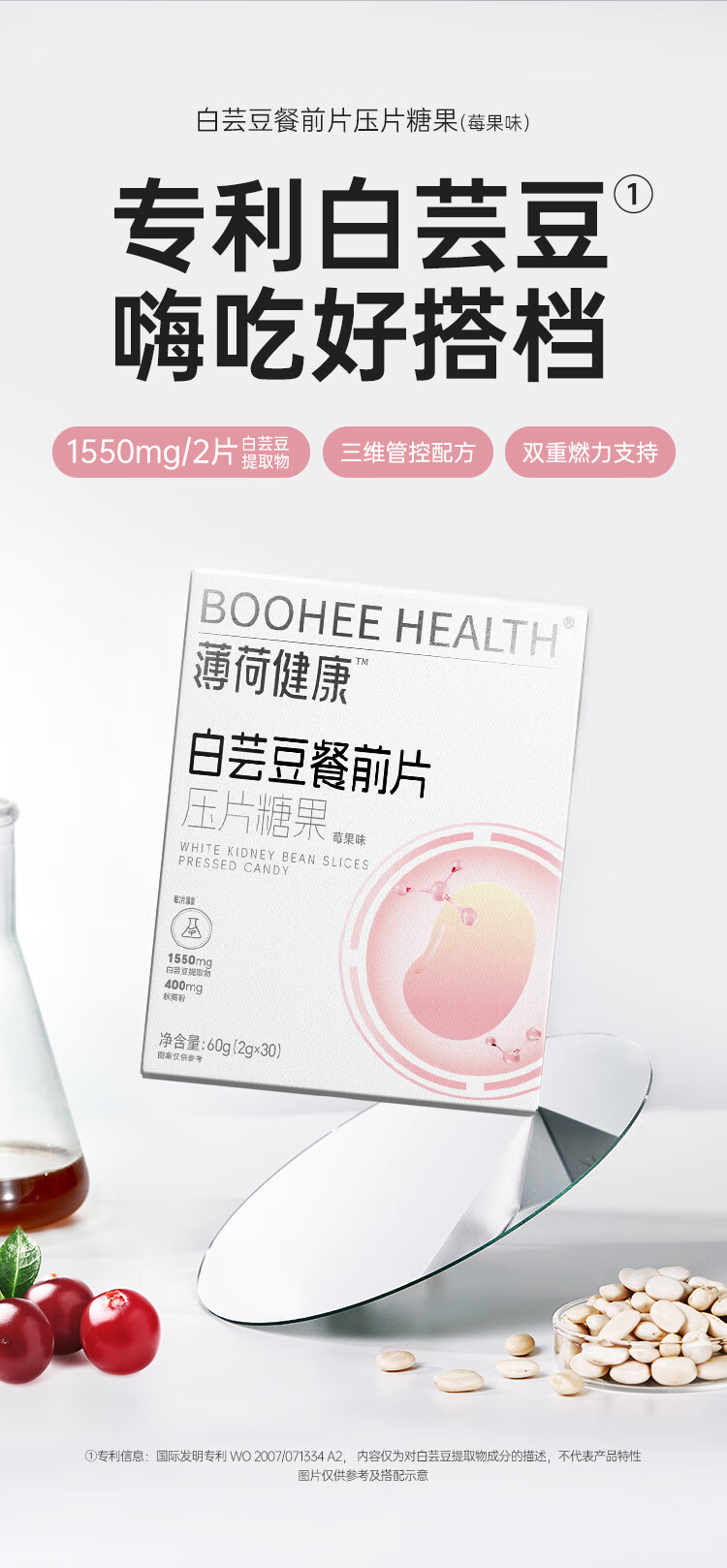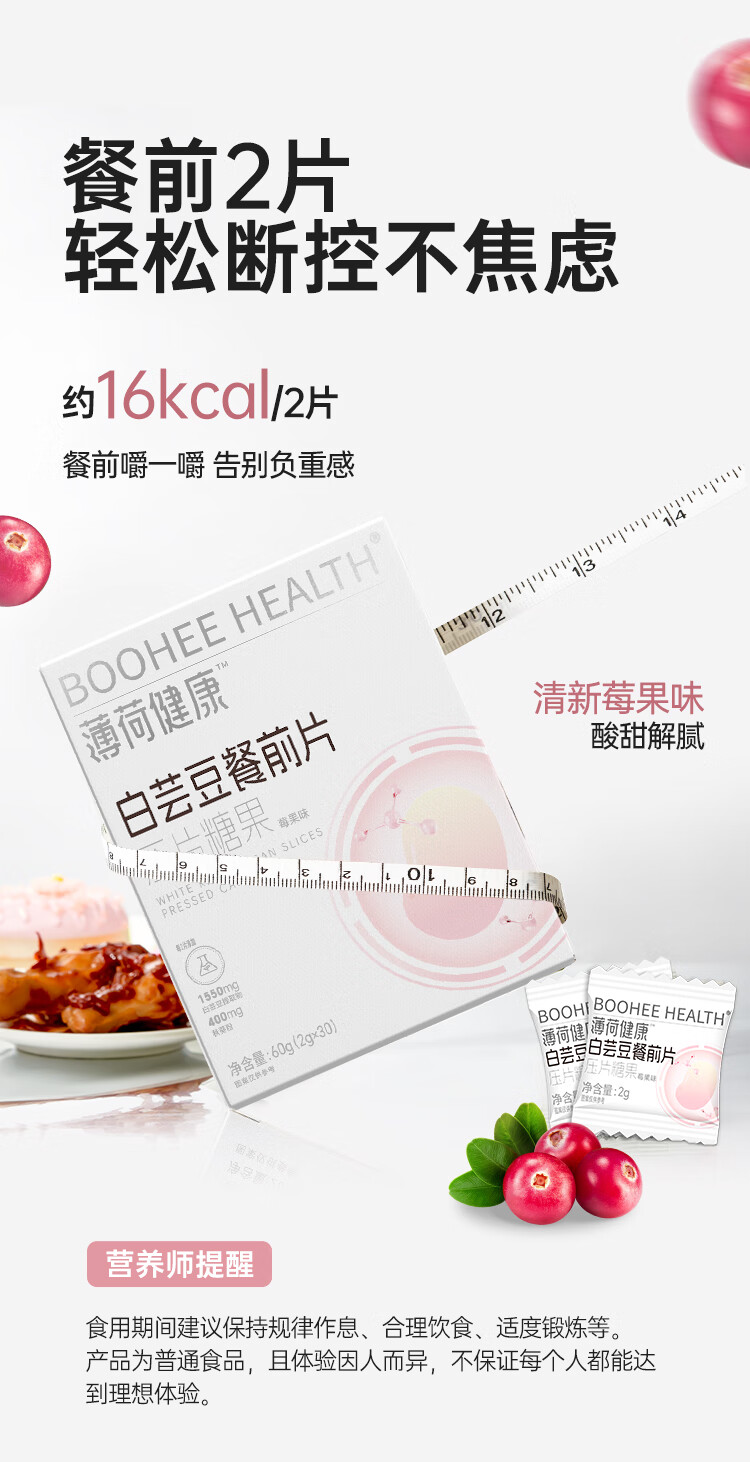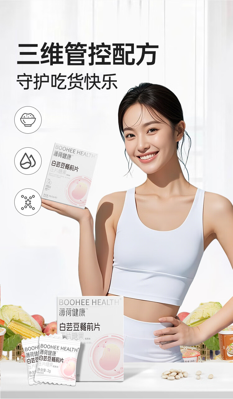 薄荷生活健康家白芸豆餐前片大餐糖碳油腻脂管理咀嚼压片糖果零食食品 【2盒】周期管理
