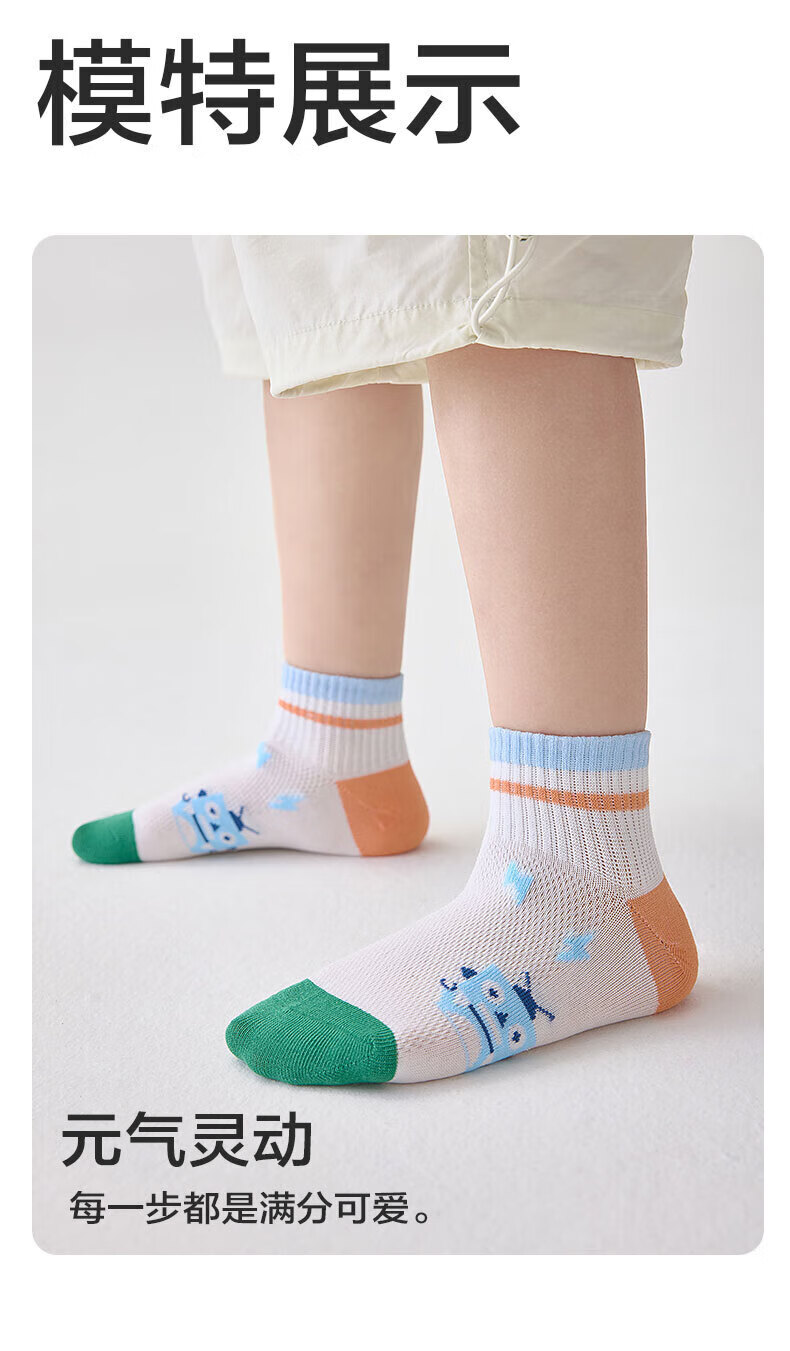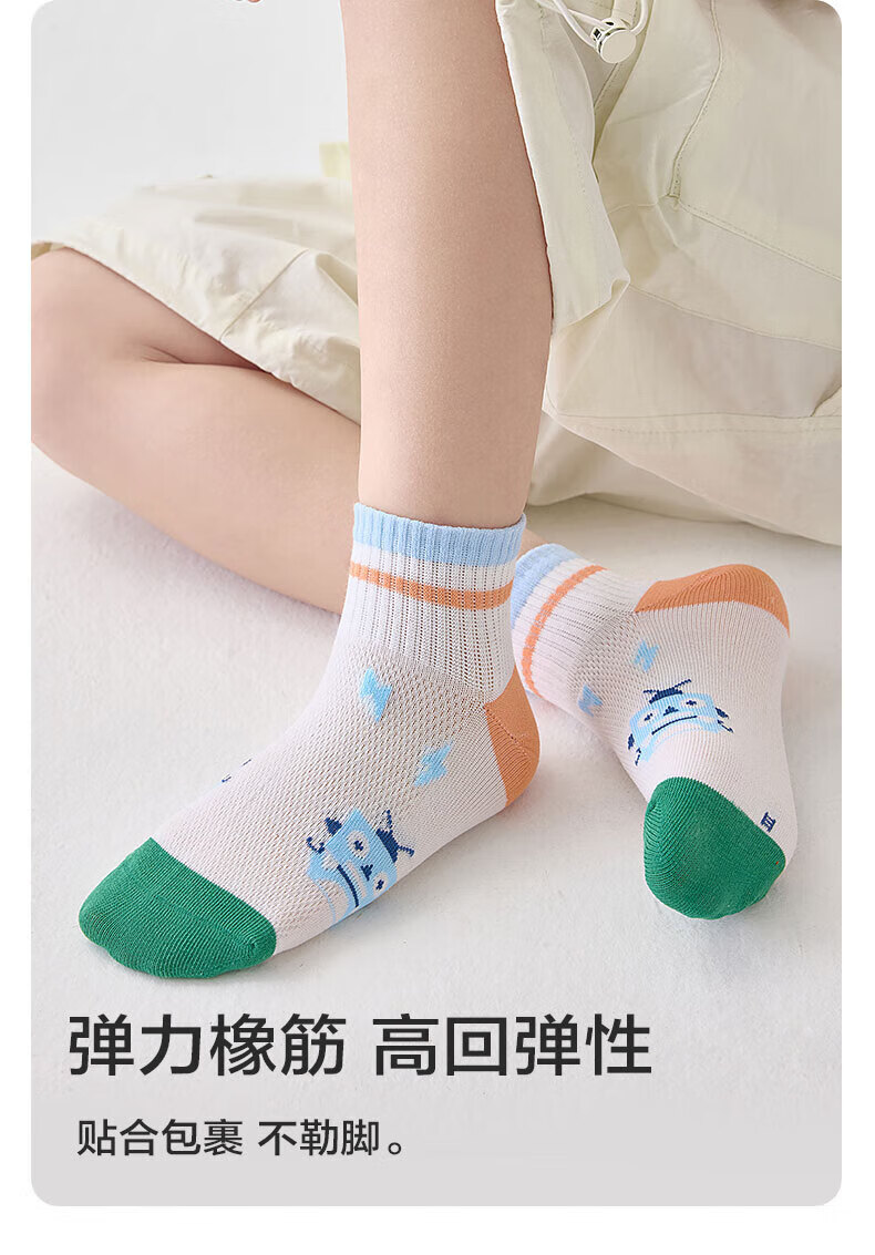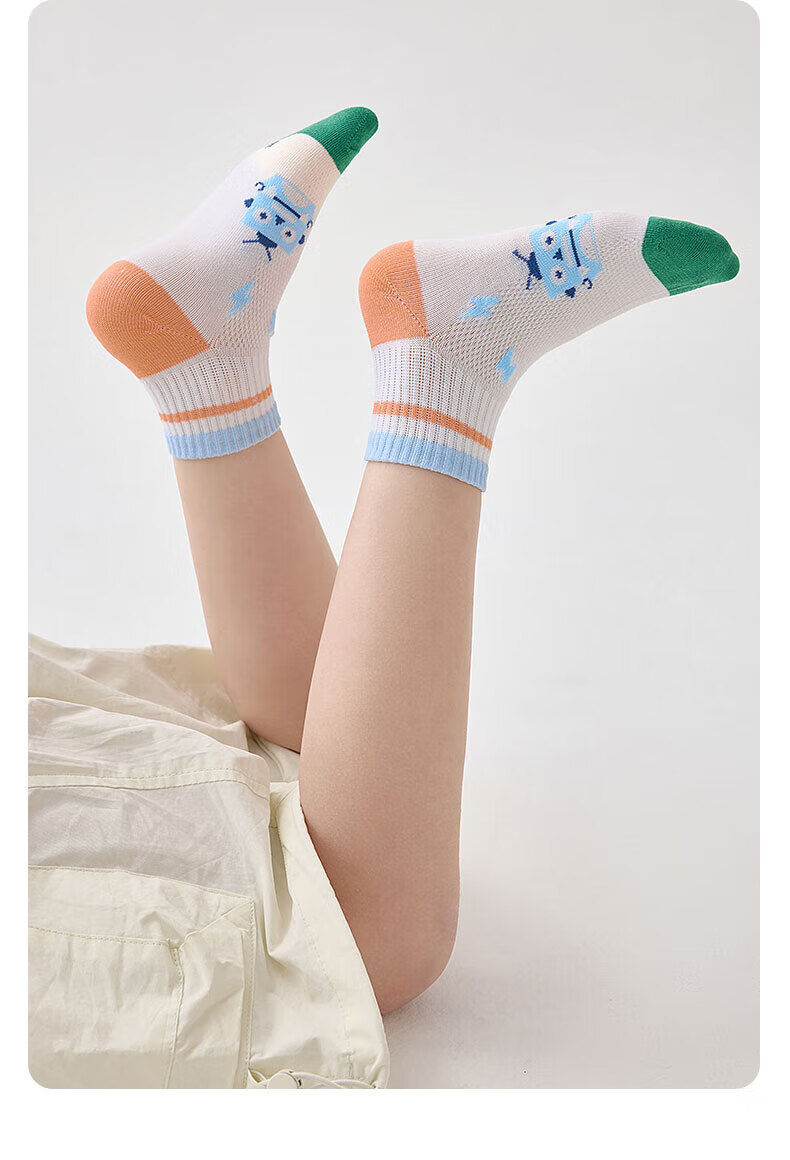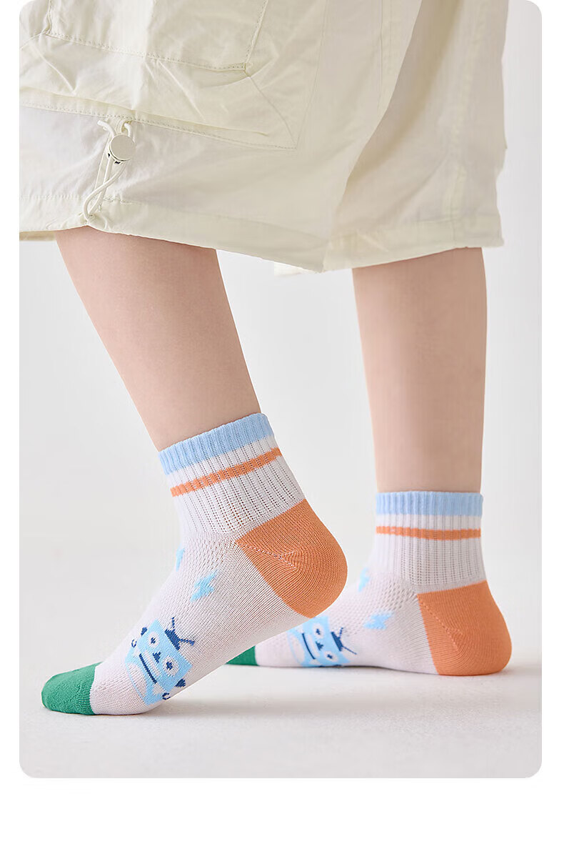 猫人(MiiOW)春夏儿童袜子7A抗菌新疆长绒棉透气袜子男女童网眼透气中筒袜 机器人系列 5双 3-5岁 (M) 建议鞋码22-26码