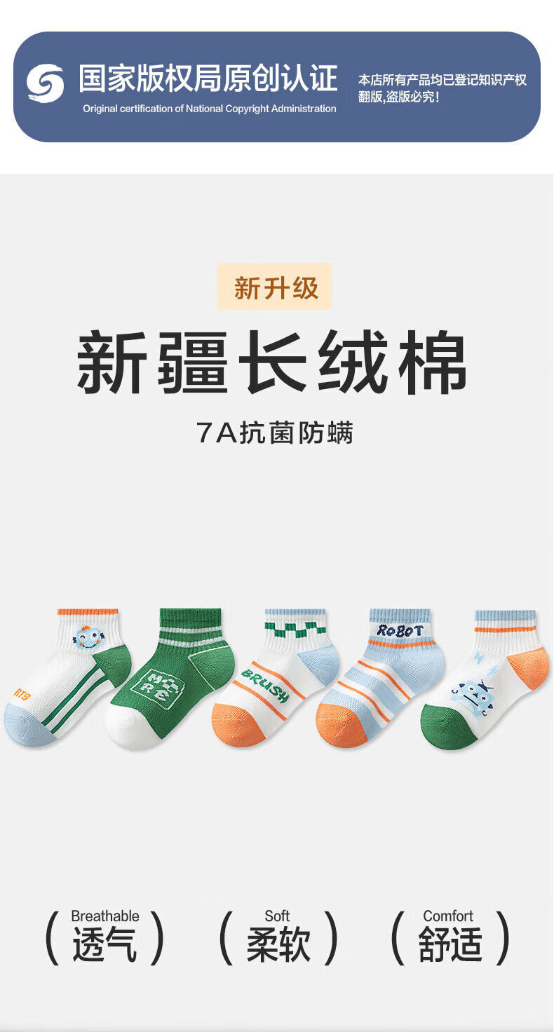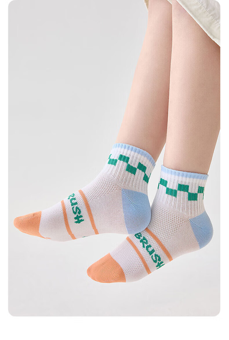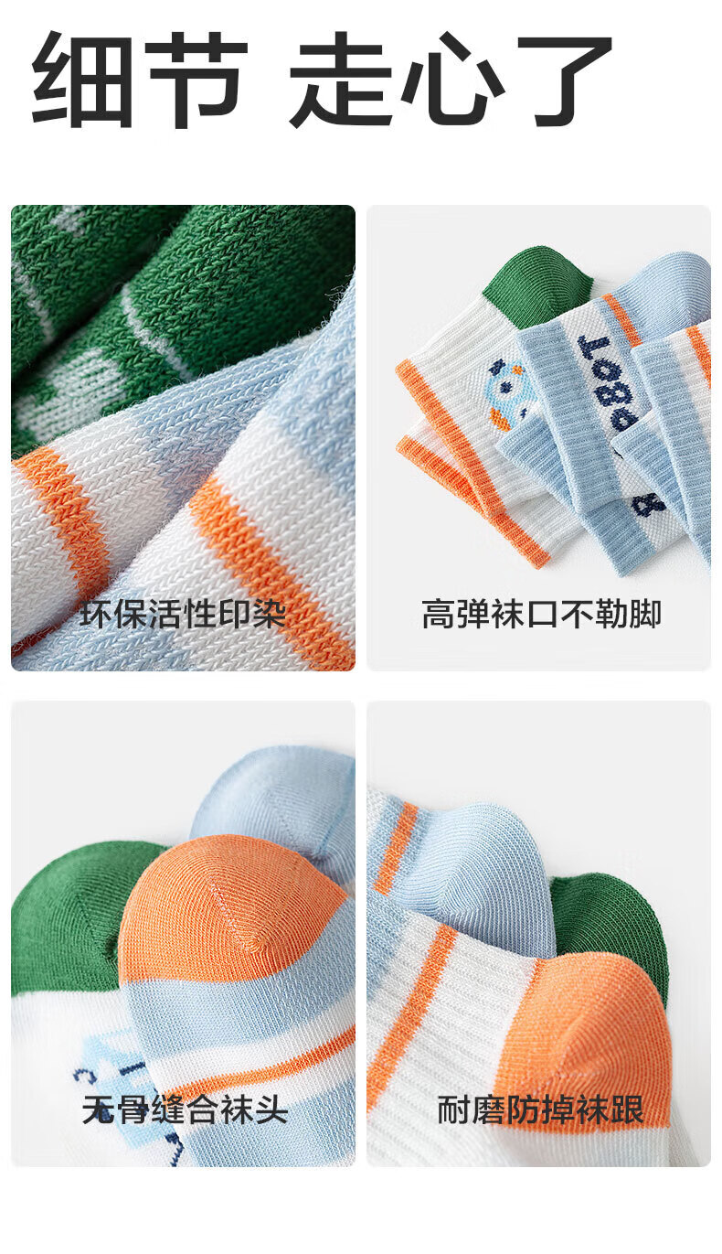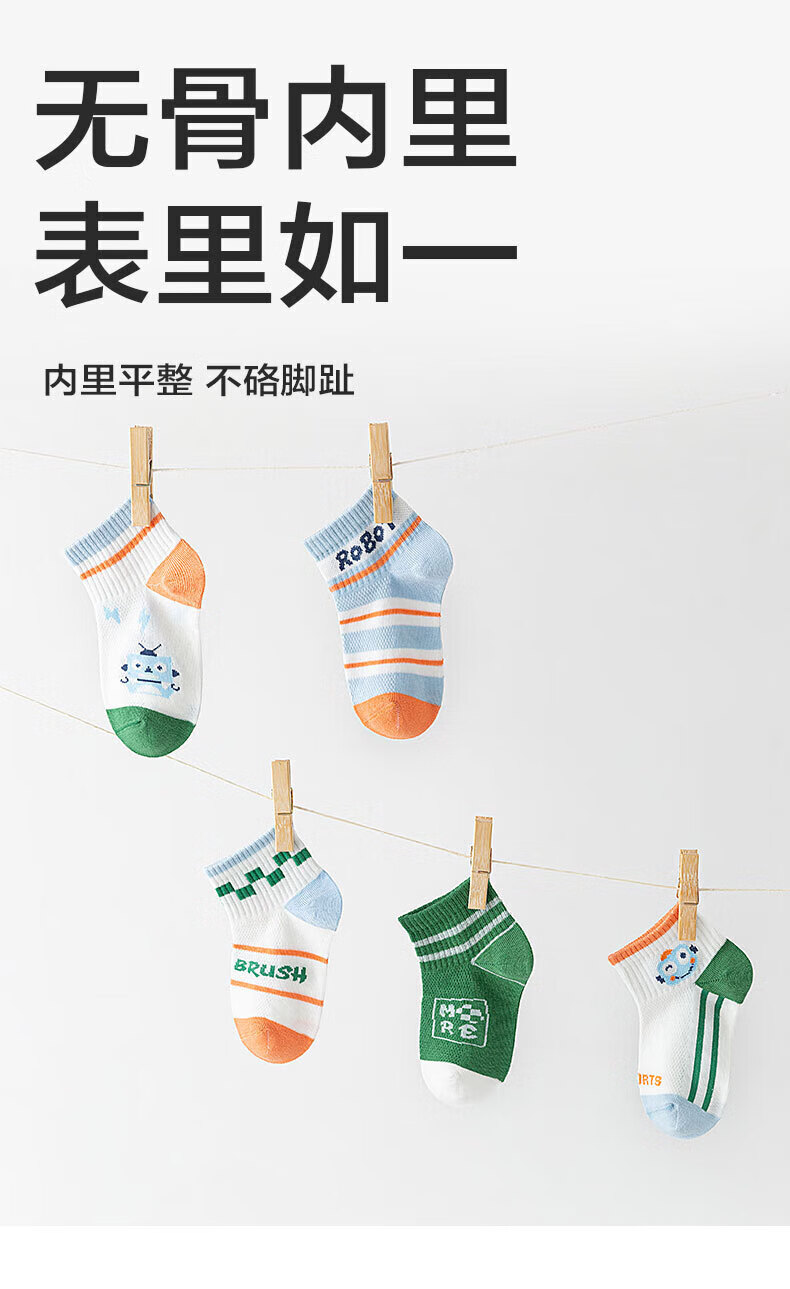 猫人(MiiOW)春夏儿童袜子7A抗菌新疆长绒棉透气袜子男女童网眼透气中筒袜 机器人系列 5双 3-5岁 (M) 建议鞋码22-26码