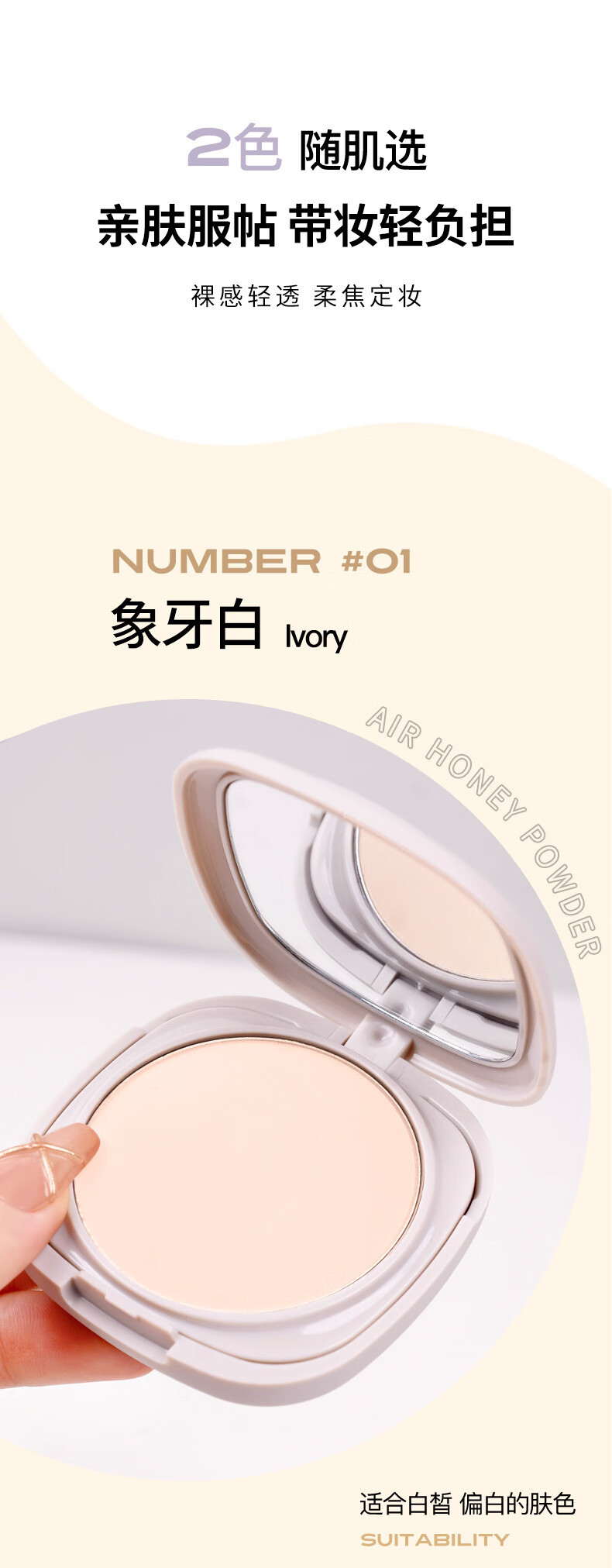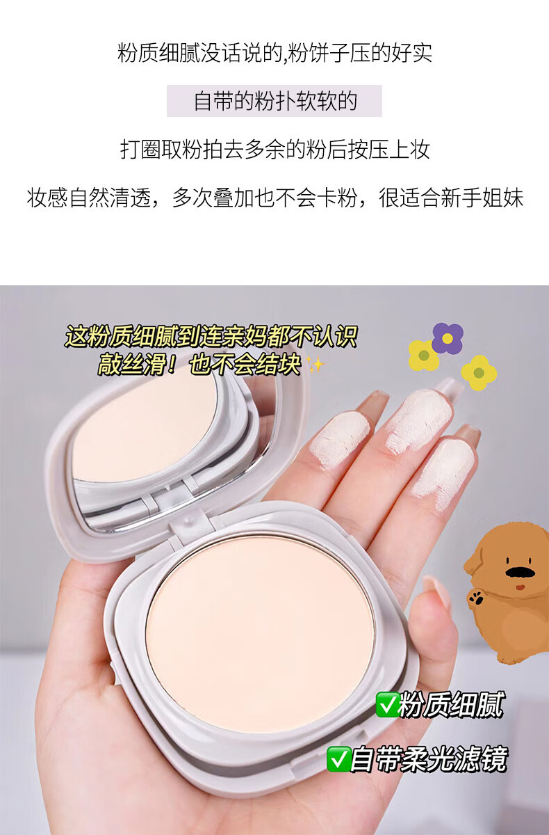 丝感柔雾定妆粉饼显白磨皮持久定薄贴肤不浮粉干湿两用 1#象牙白*1盒装