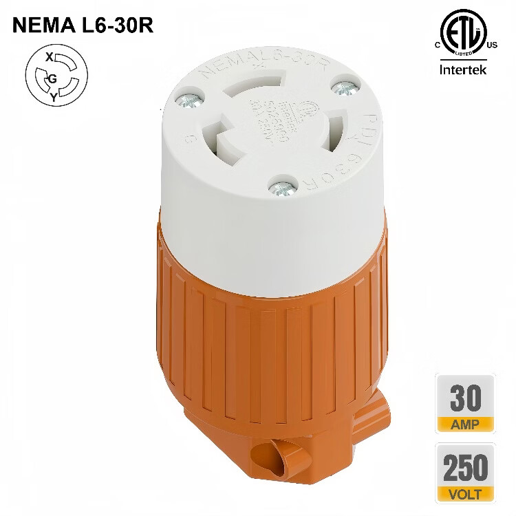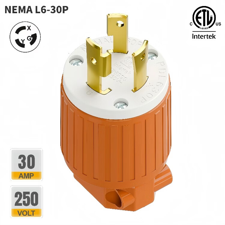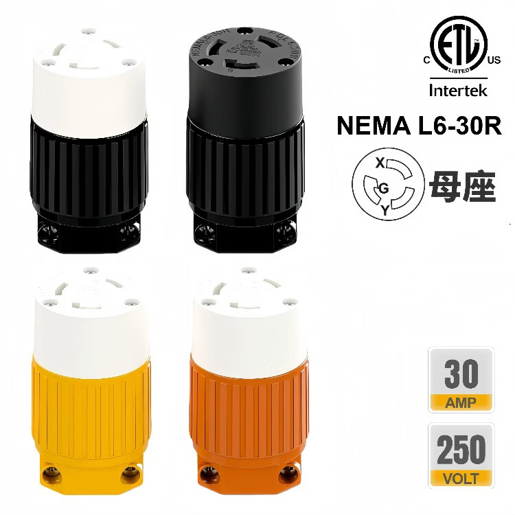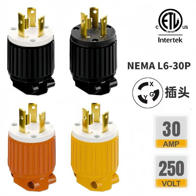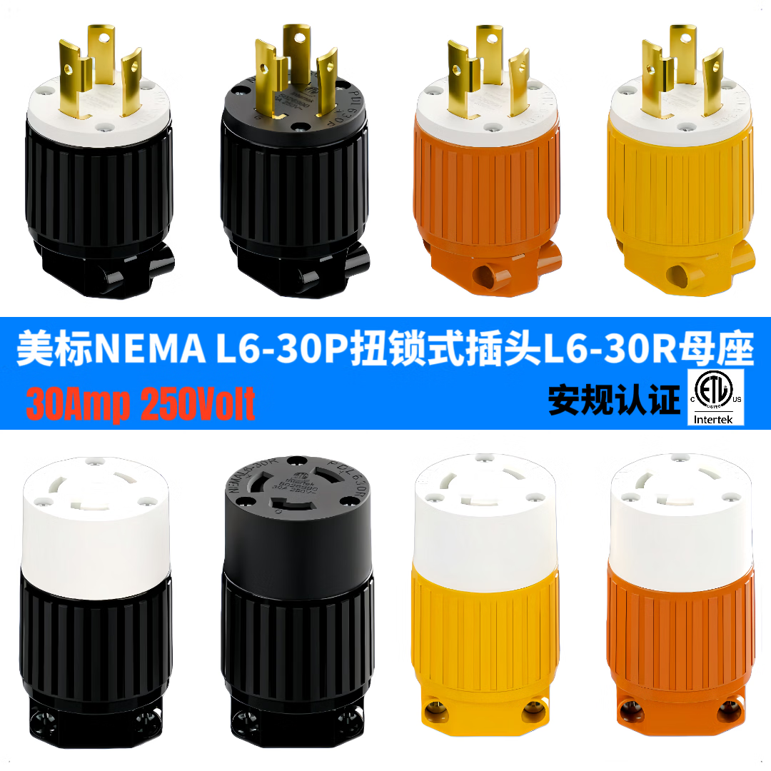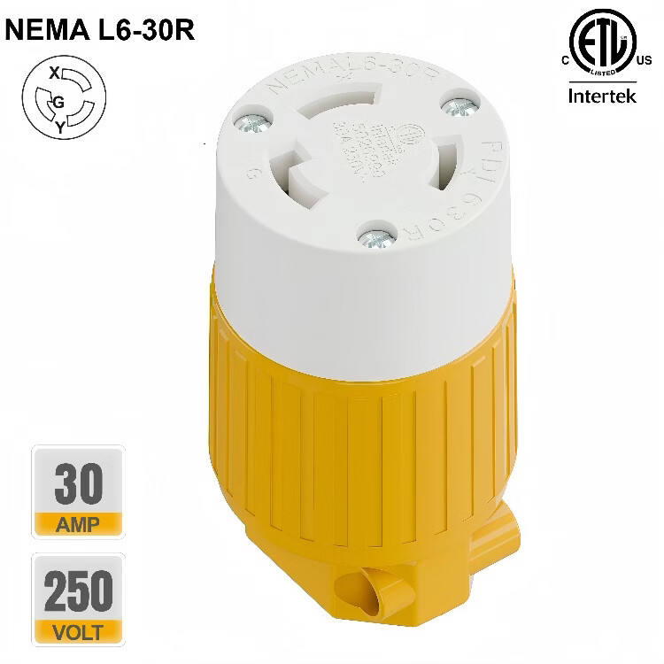 TLDPLUG美标NEMA L6-30P插头扭锁式 L6-30R插座30A 250V 美规房车发电机 黄色 美标NEMA L6-30P母座30A 250V
