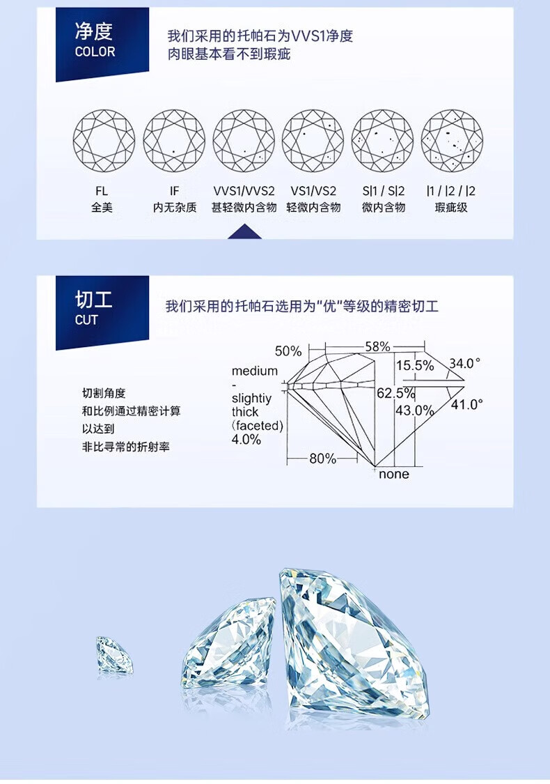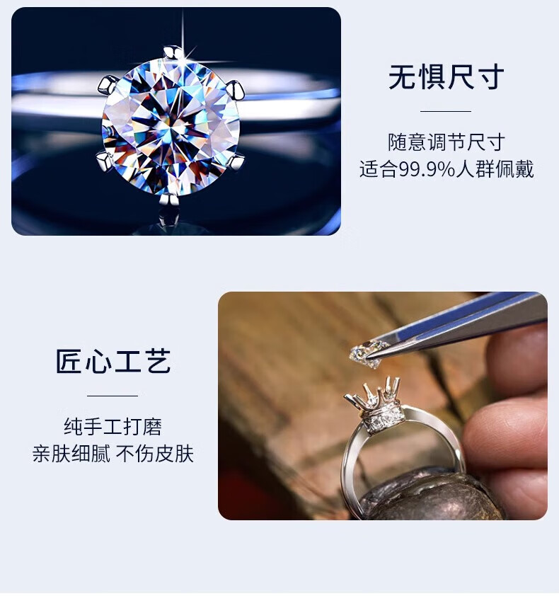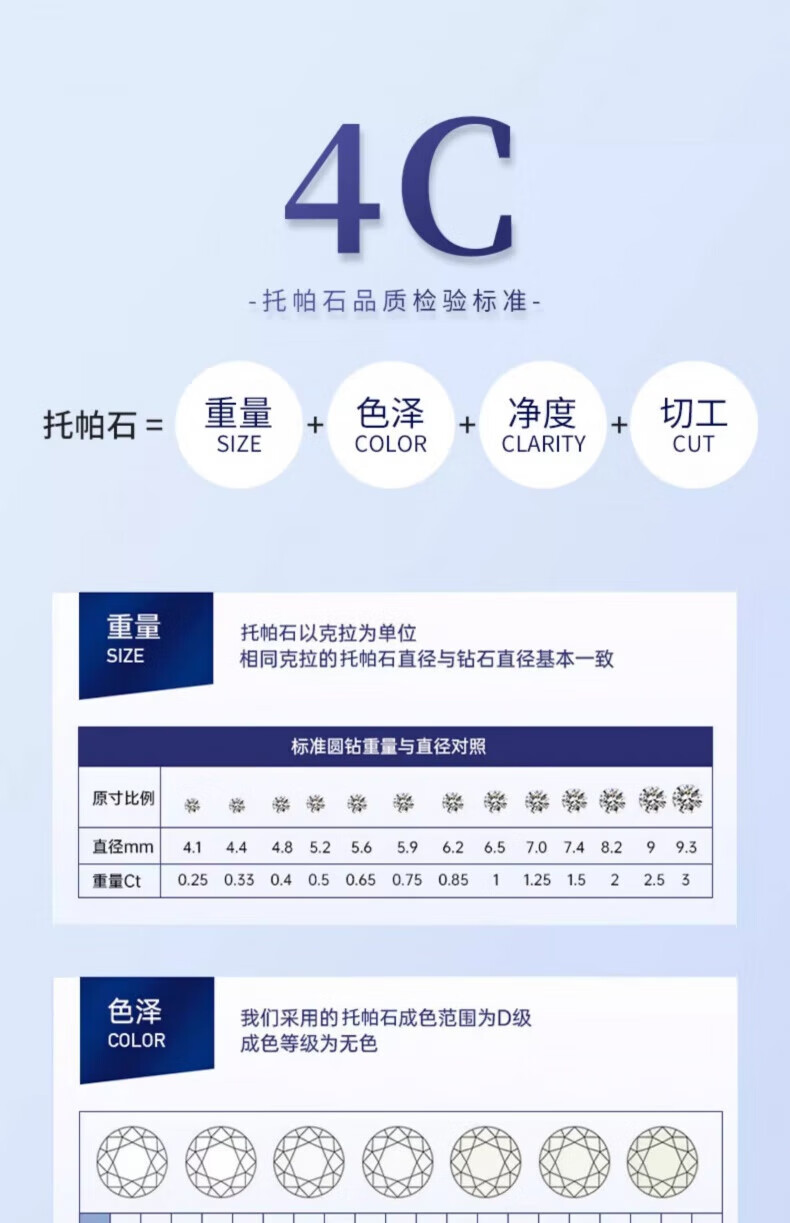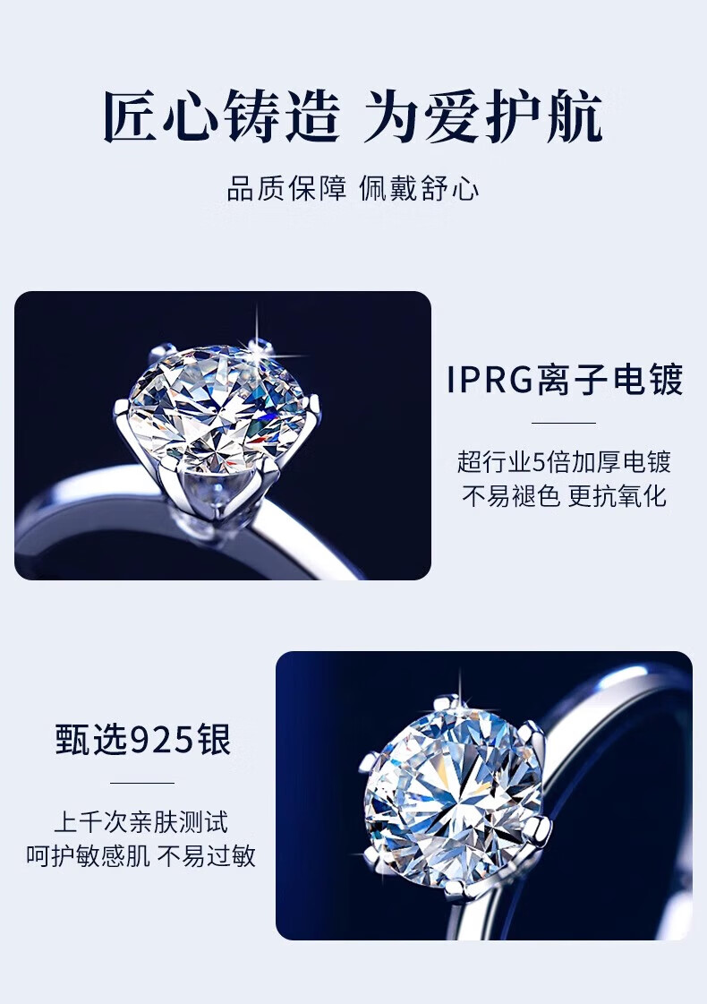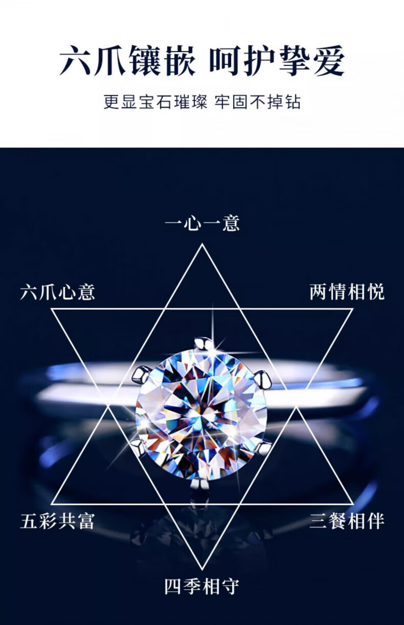 老凤祥一克拉托帕石钻石戒指纯银求婚情侣对戒纪念日情人节礼物送女朋友 一克拉戒指-925银*刻字/代写贺卡