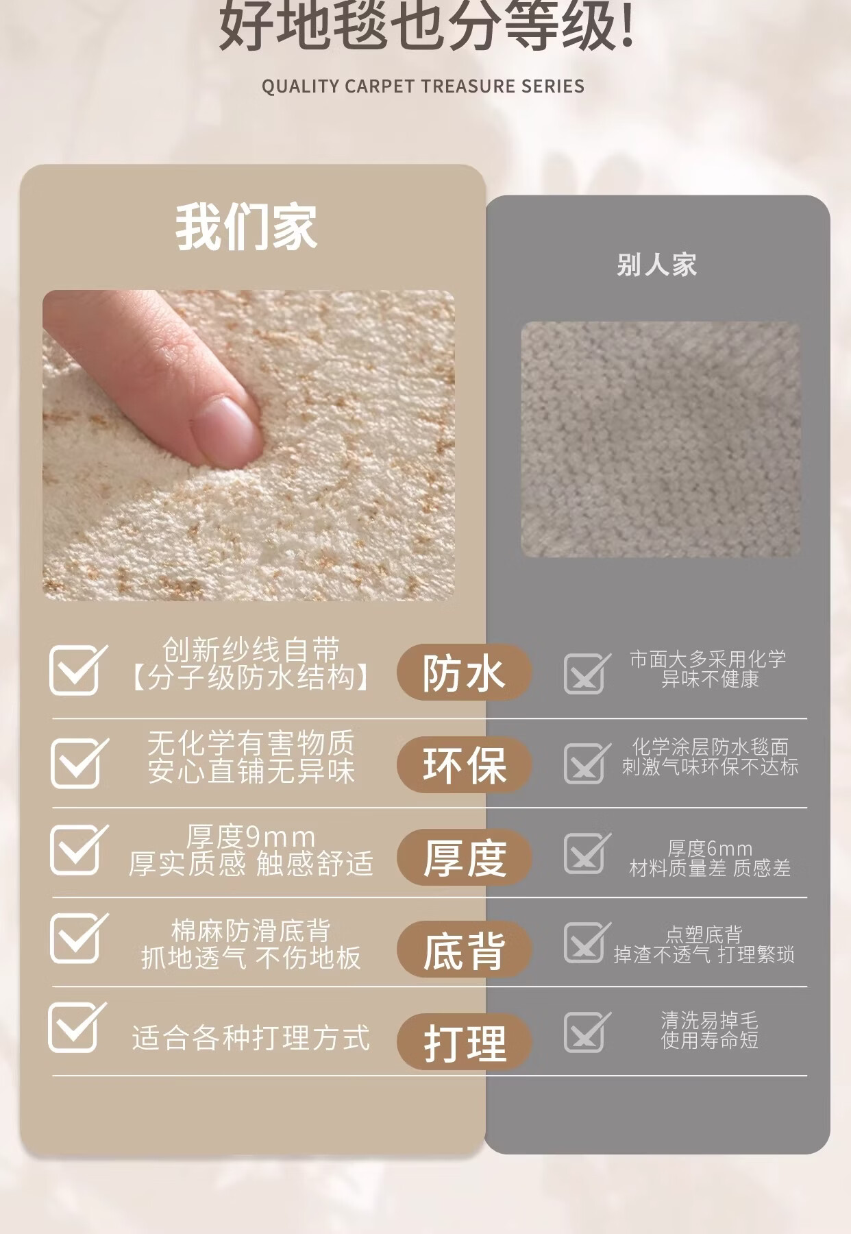 Y U-LIVE地毯客厅2026新款轻奢高级简约现代纯色免洗可擦防水沙发卧室 S仿羊绒-檀秋 140*200CM【细腻仿羊绒】