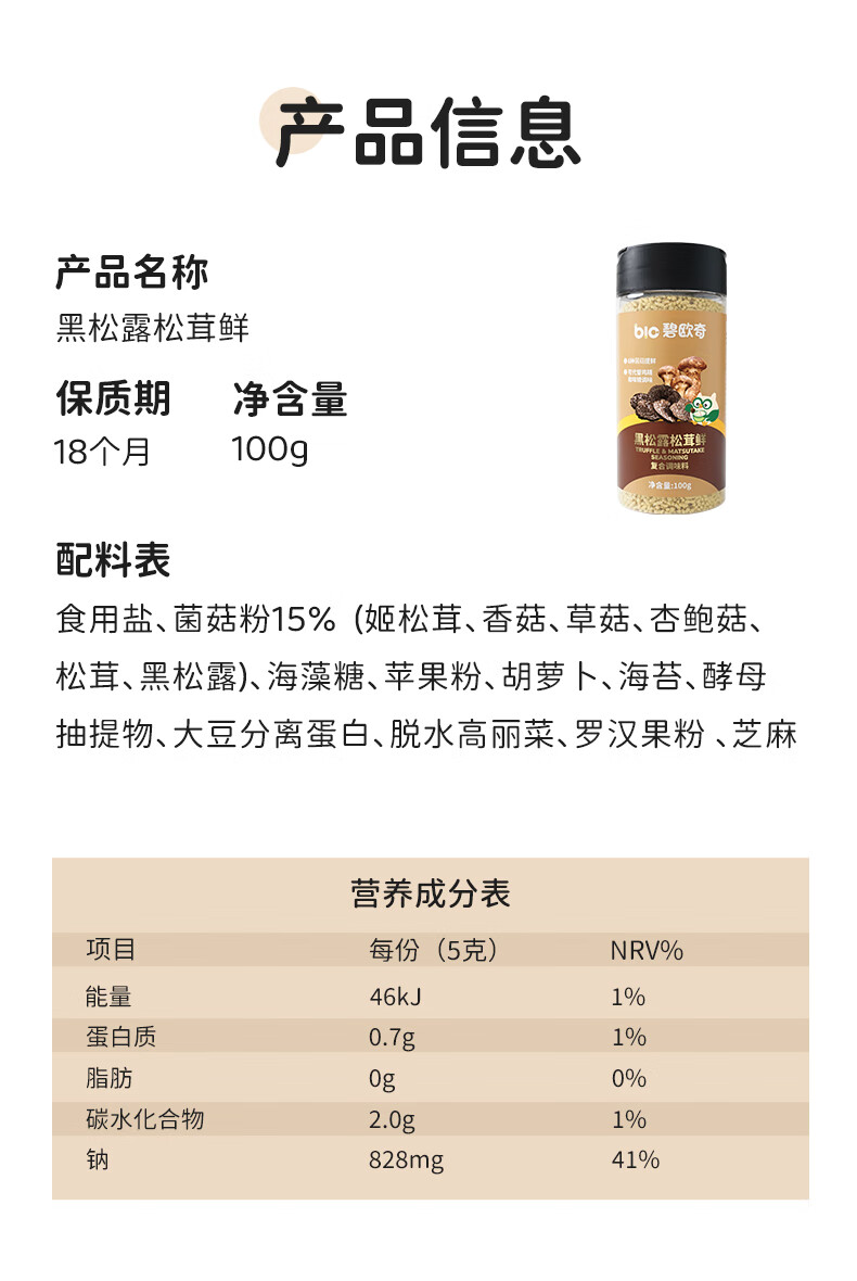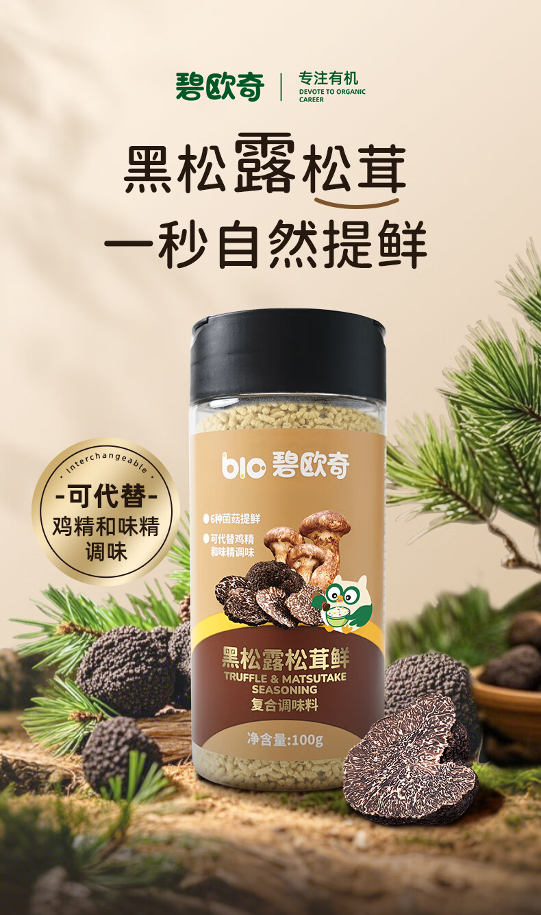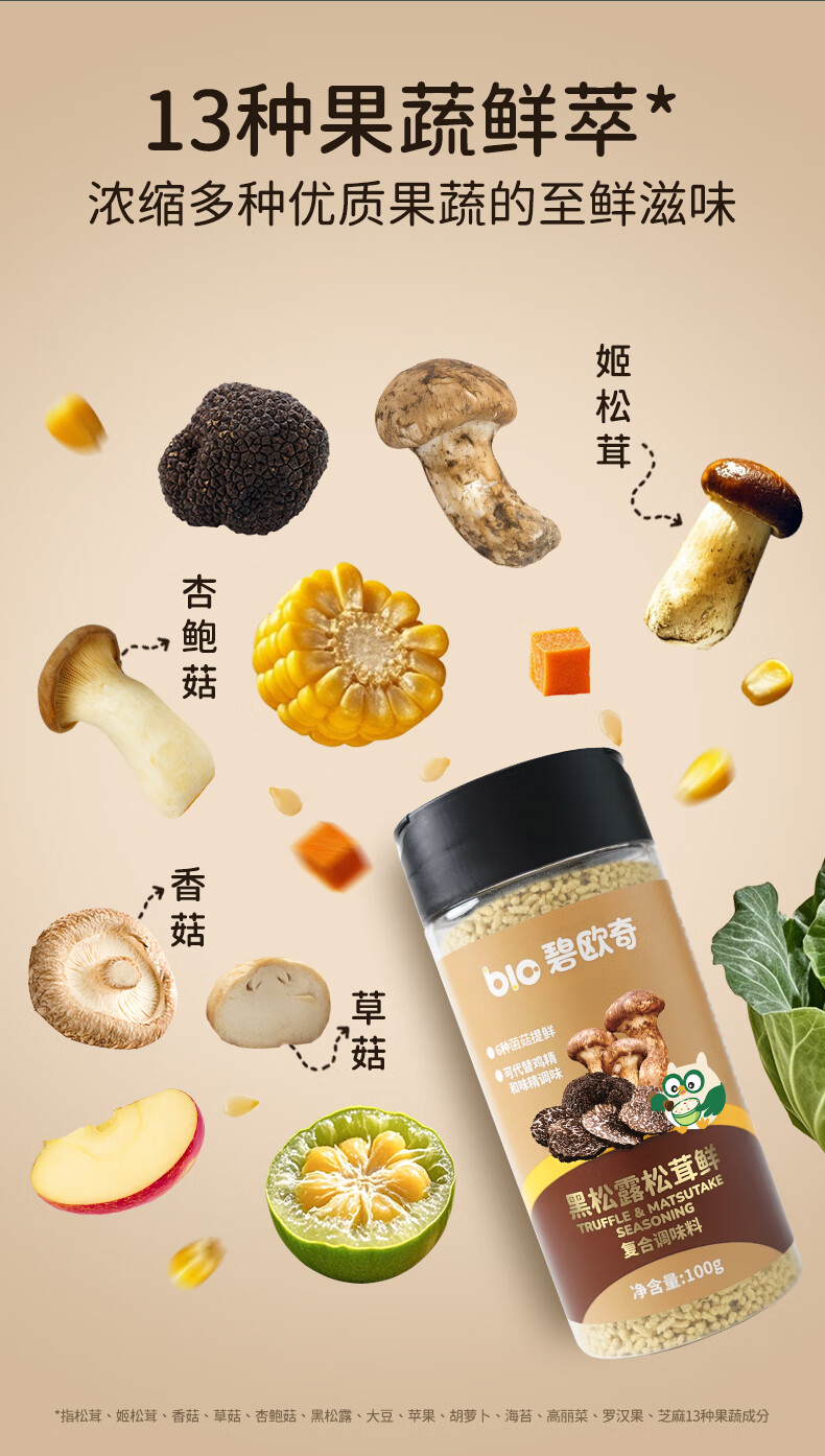 碧欧奇黑松露松茸鲜 儿童调味料可替代鸡精味精盐 送宝宝婴幼儿食谱 黑松露松茸鲜100g*3