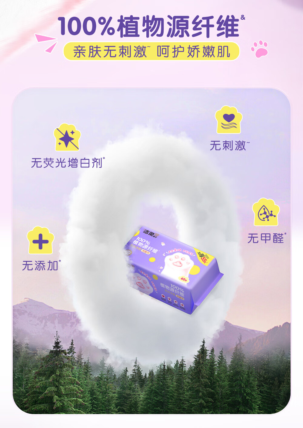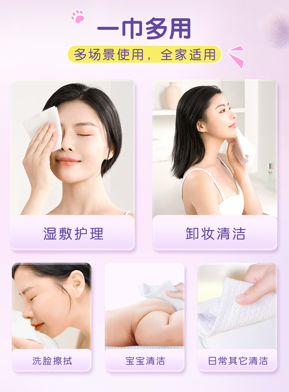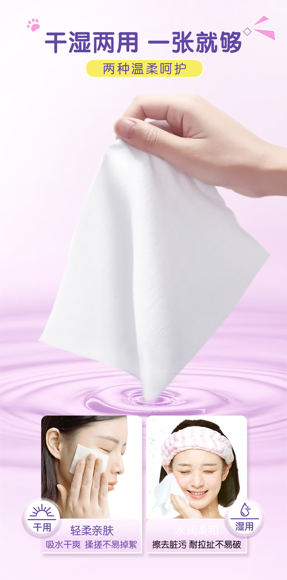 洁柔洗脸巾60抽*3包柔肤净颜母婴可用 大规格加大加厚干湿两用擦脸巾