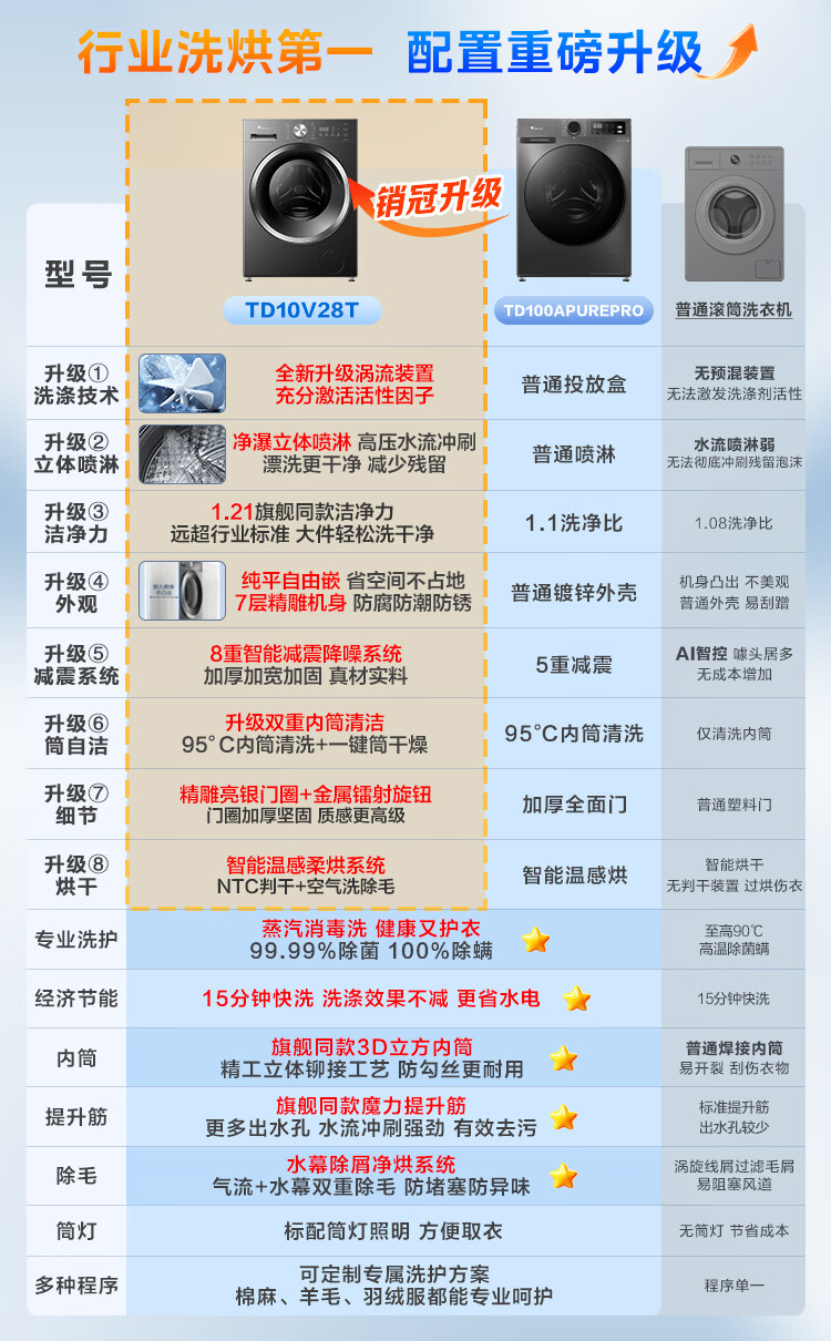 美的(Midea)滚筒洗衣机全自动 带烘干洗烘一体 10公斤家用超薄 双重除菌 MD100V11FPRO 以旧换新 补贴