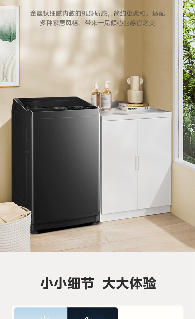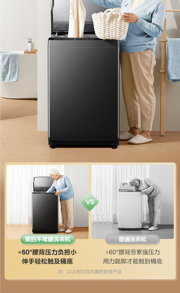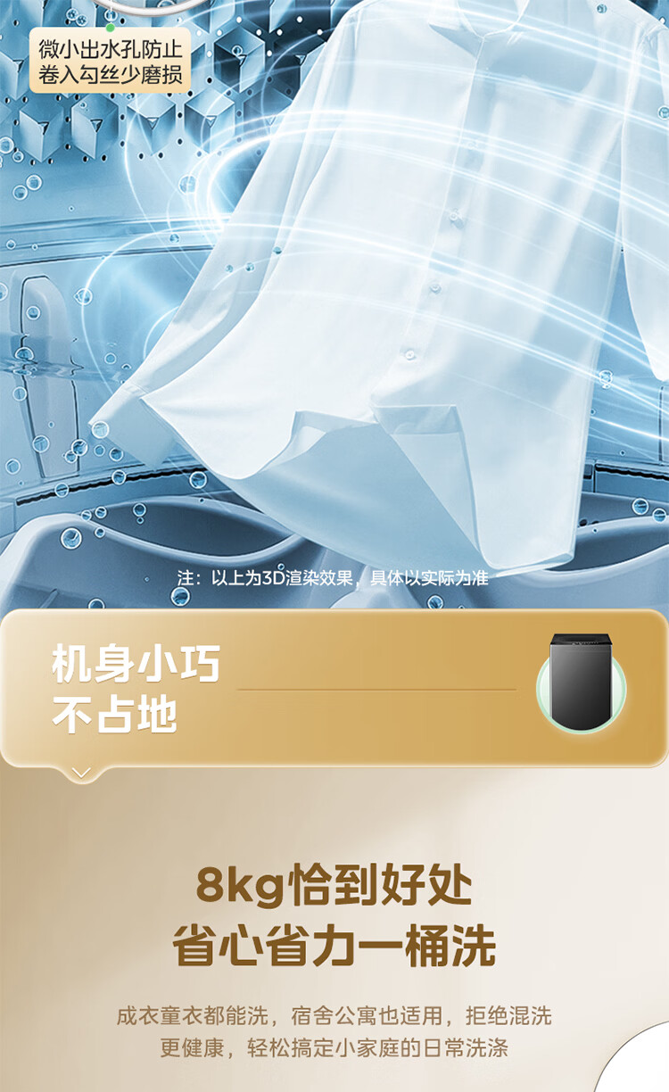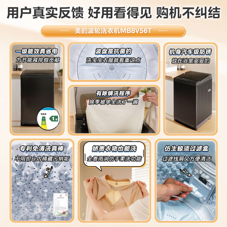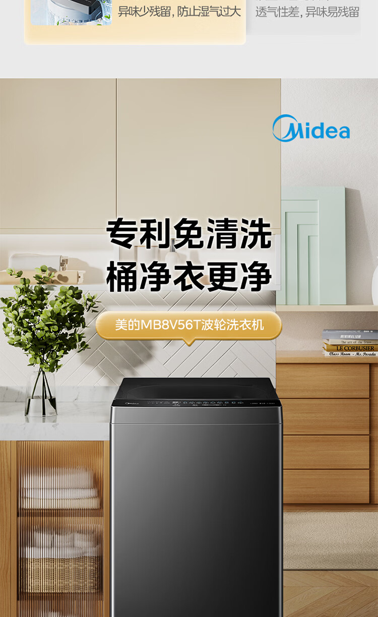 美的(Midea)随心洗 波轮洗衣机全自动 8公斤 小型家用 免清洗 一级能效 MB8V56T 以旧换新 京东自营