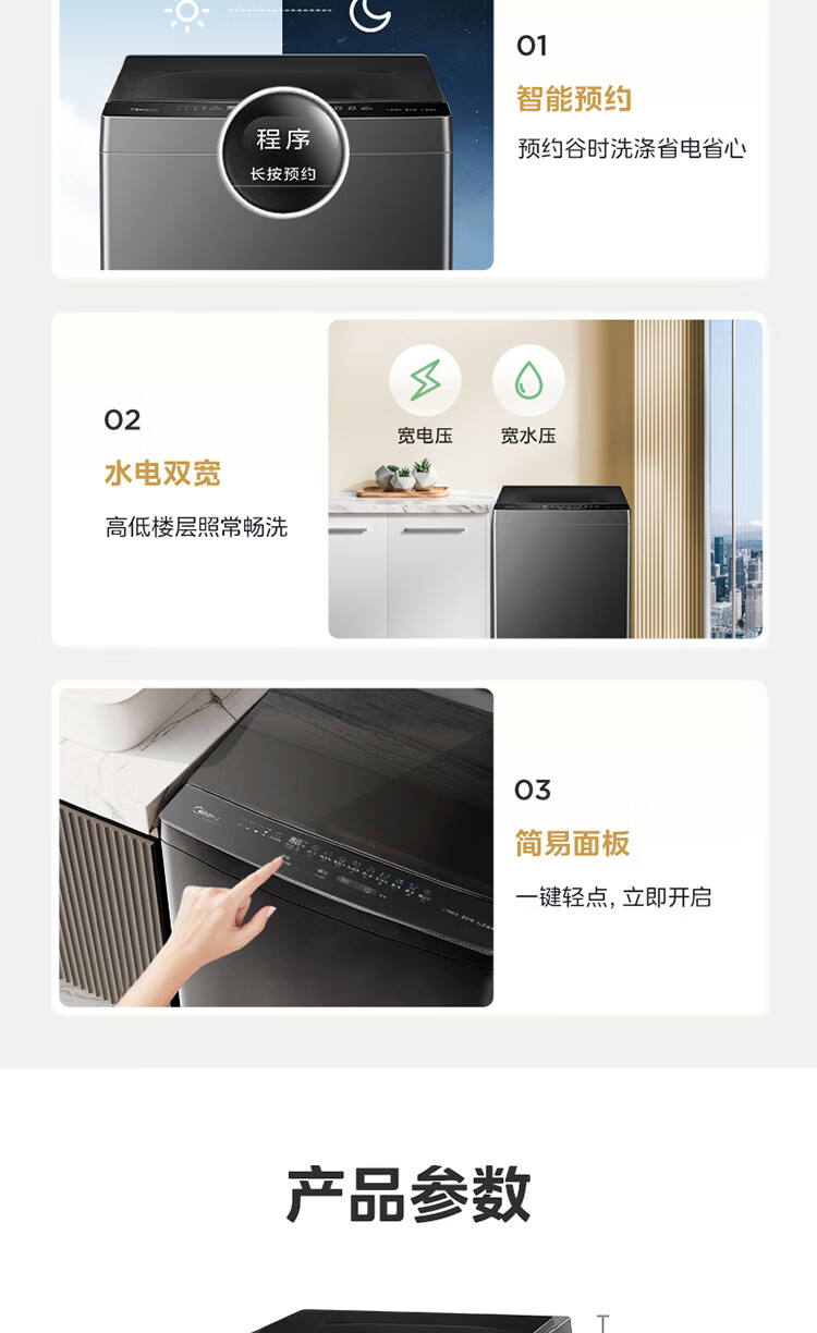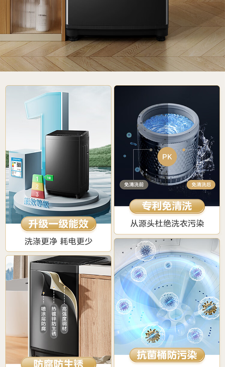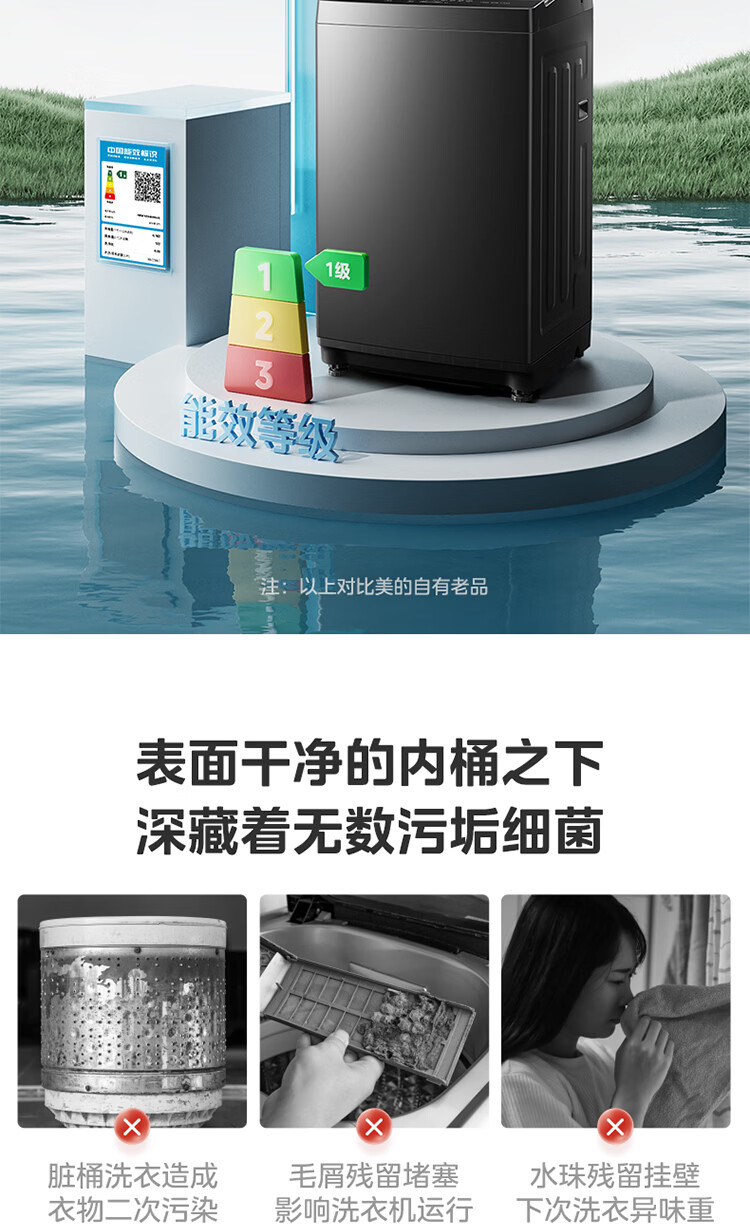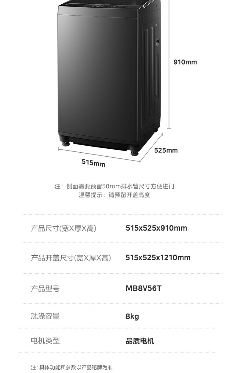 美的(Midea)随心洗 波轮洗衣机全自动 8公斤 小型家用 免清洗 一级能效 MB8V56T 以旧换新 京东自营