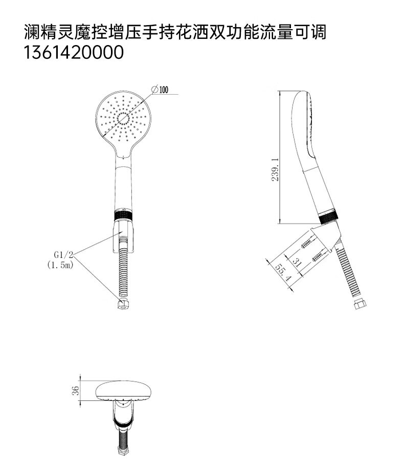 美标卫浴澜精灵增压手持花洒多功能强冲喷枪可调节流量手洒 澜精灵双功能手持(流量可调款)