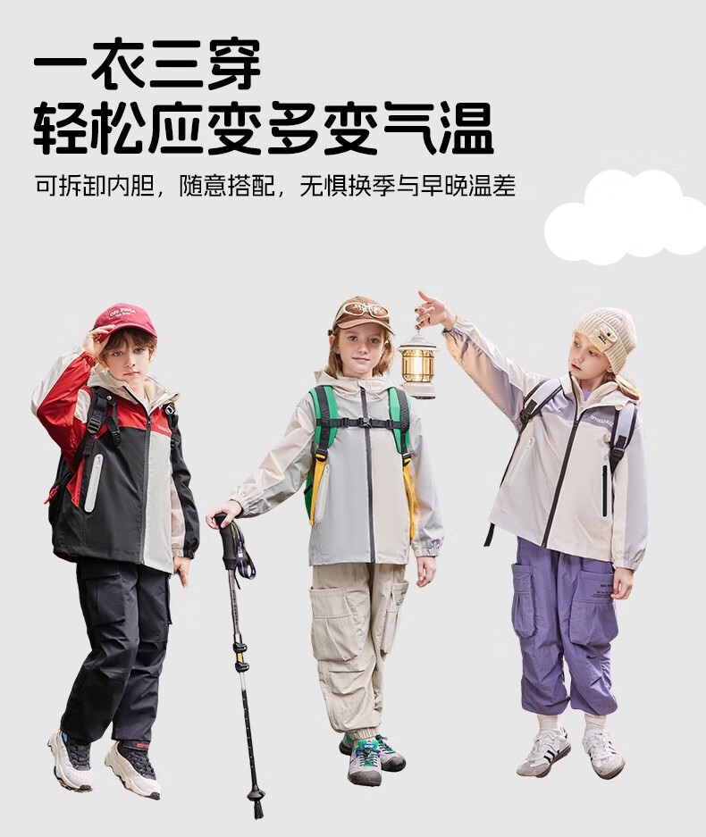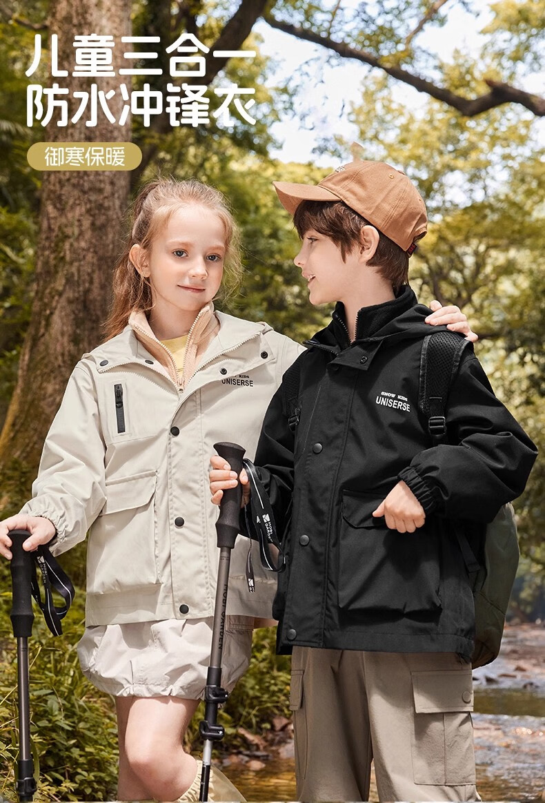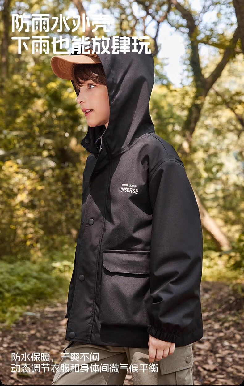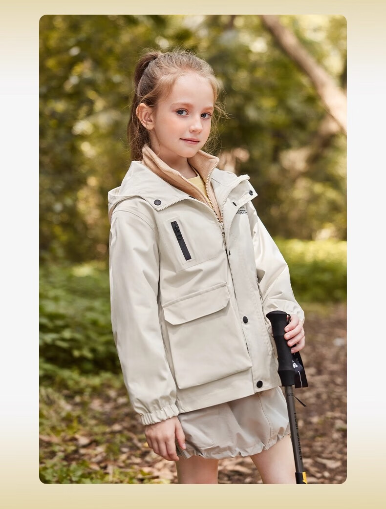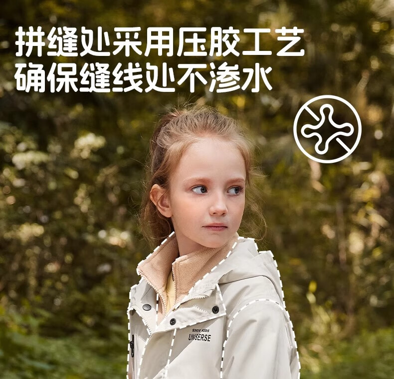 雪中飞kids新款男女童户外连帽登山服三合一夹克时尚外套 含羞绿5774 120
