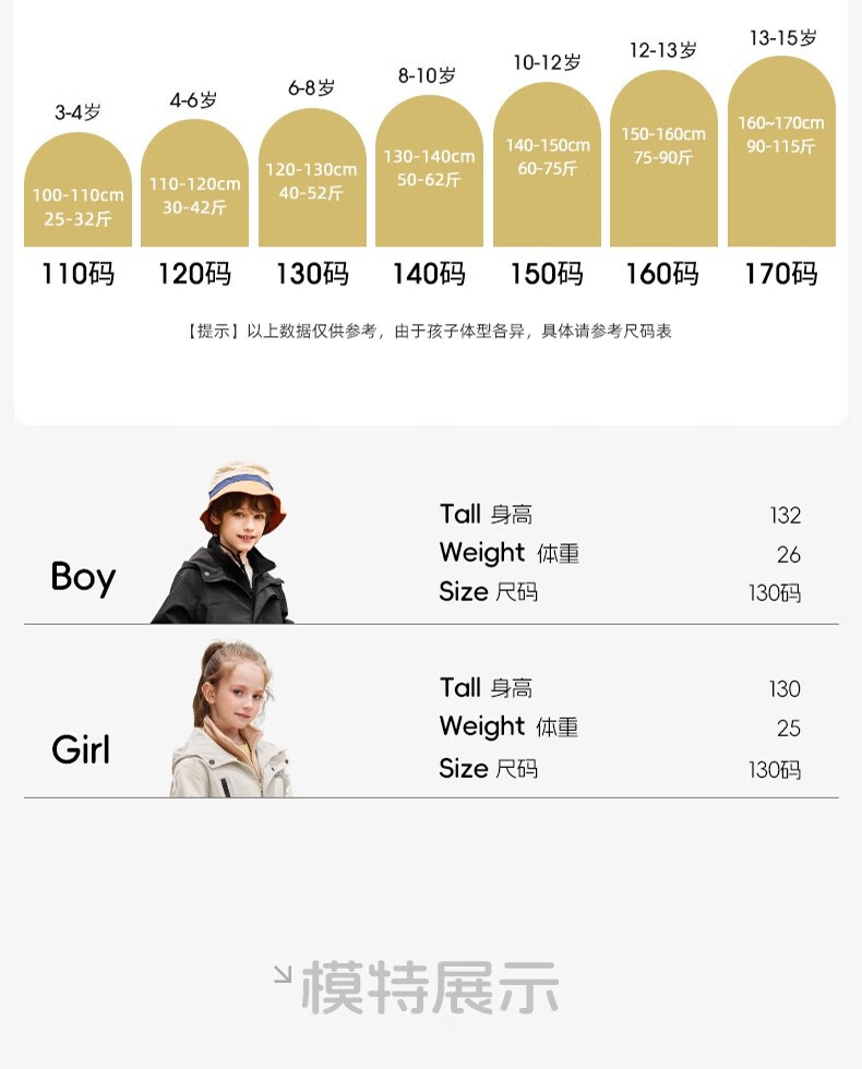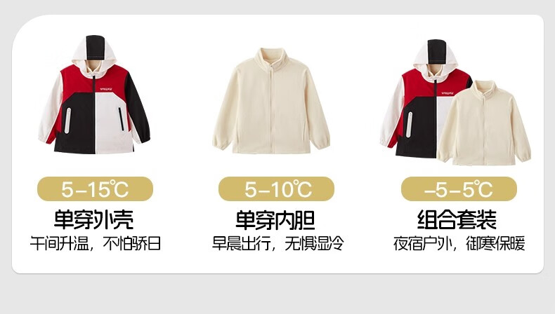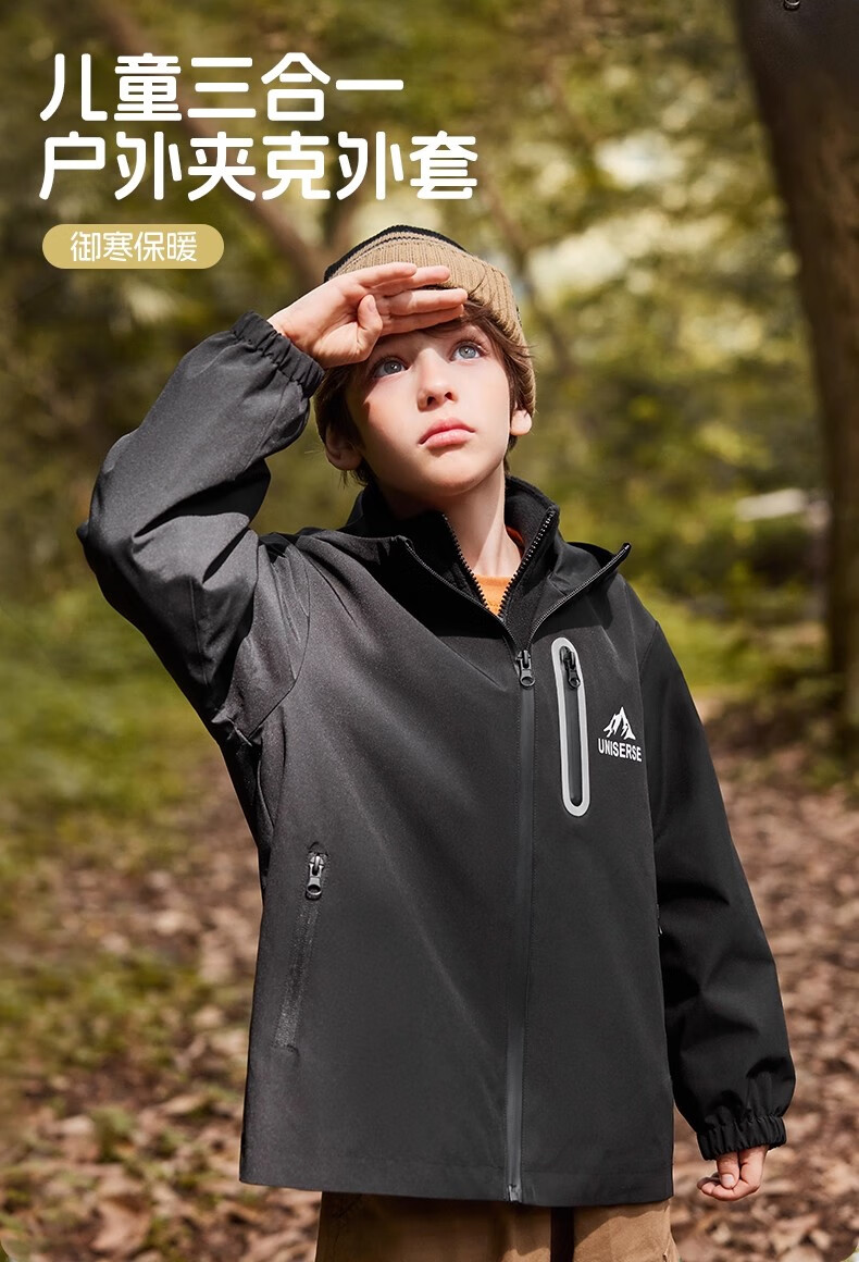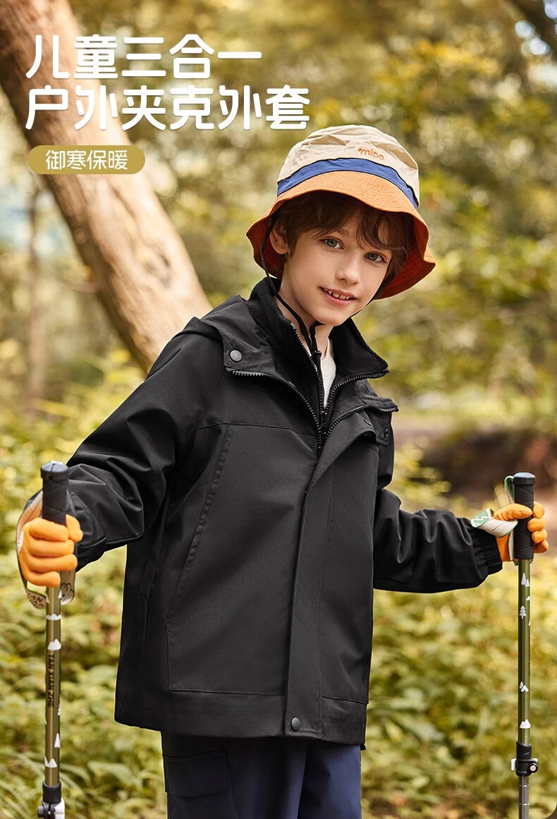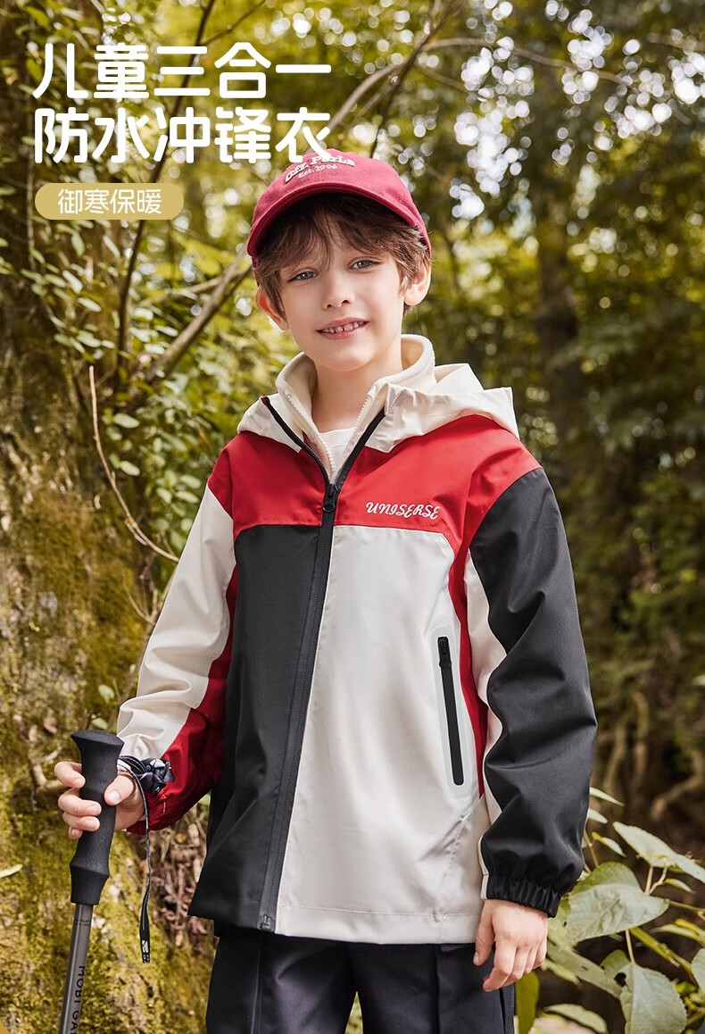 雪中飞kids新款男女童户外连帽登山服三合一夹克时尚外套 含羞绿5774 120