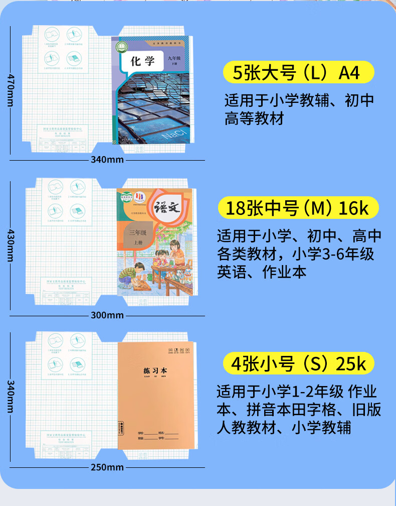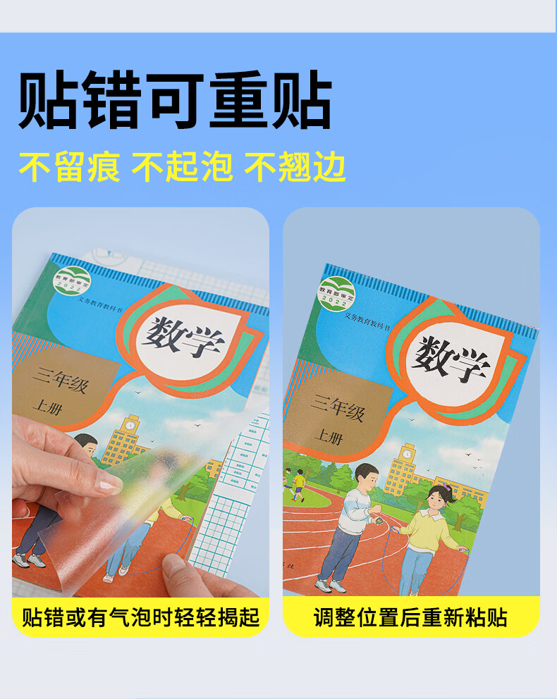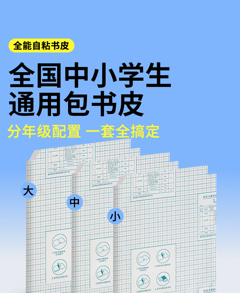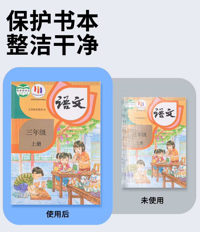 BEIFA自粘磨砂加厚透明自粘包书皮保护套小学生课本书皮包书膜16K/A4开学文具 27张(大号5张+中号18张+小号34张)