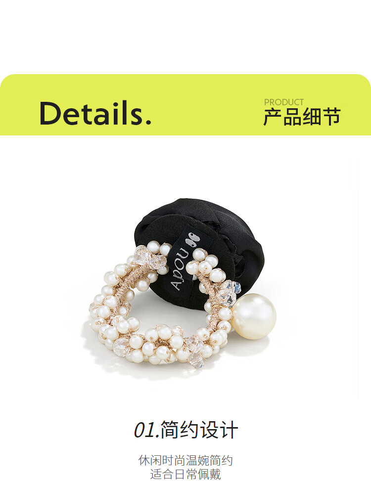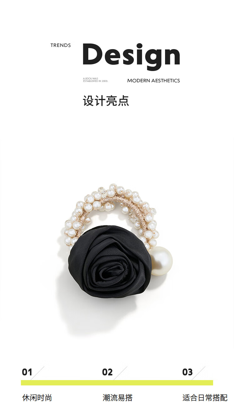AJIDOU阿吉豆发圈生日礼物 时尚简约仿珍珠玫瑰发圈发饰送女友闺蜜老婆 绿色 1个