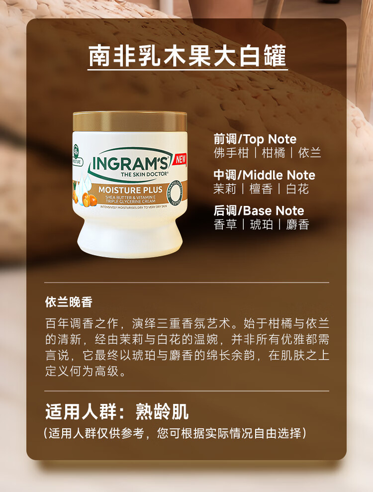 INGRAM'S【秋瓷炫推荐】INGRAM'S南非乳木果身体乳水润抚纹舒缓干燥保湿霜 450ml南非乳木果身体乳+送硅胶刷