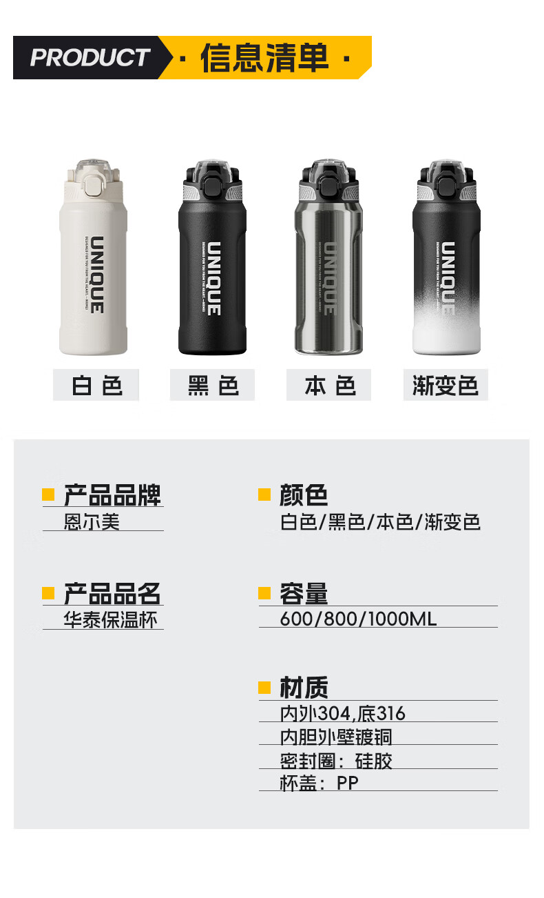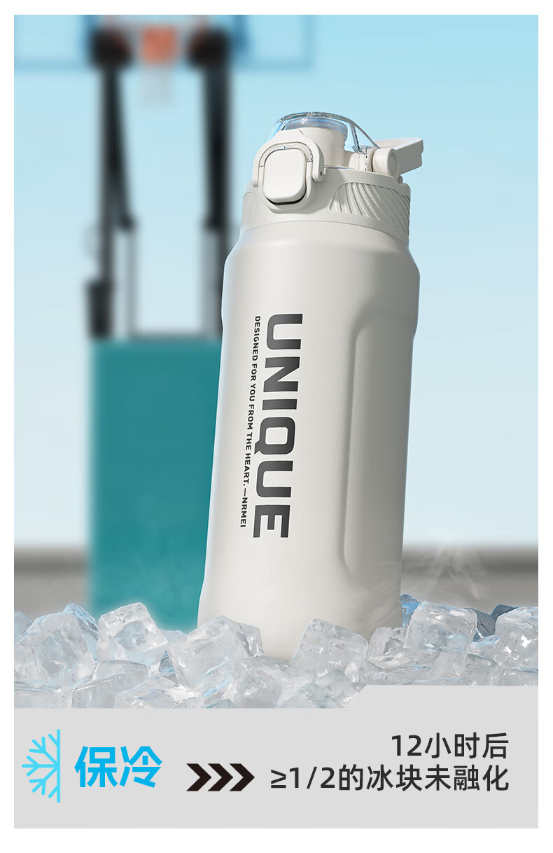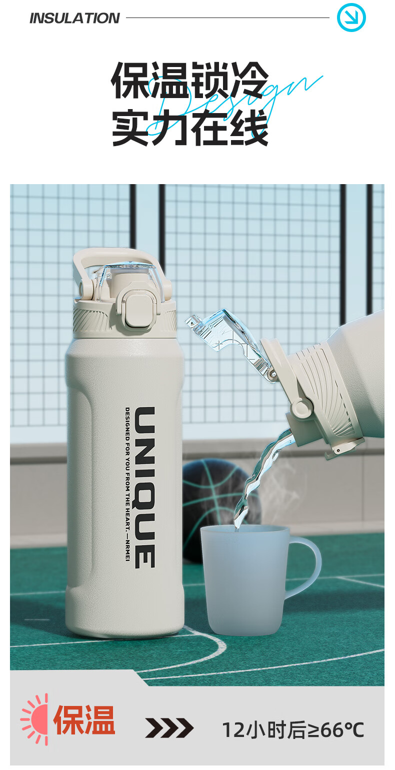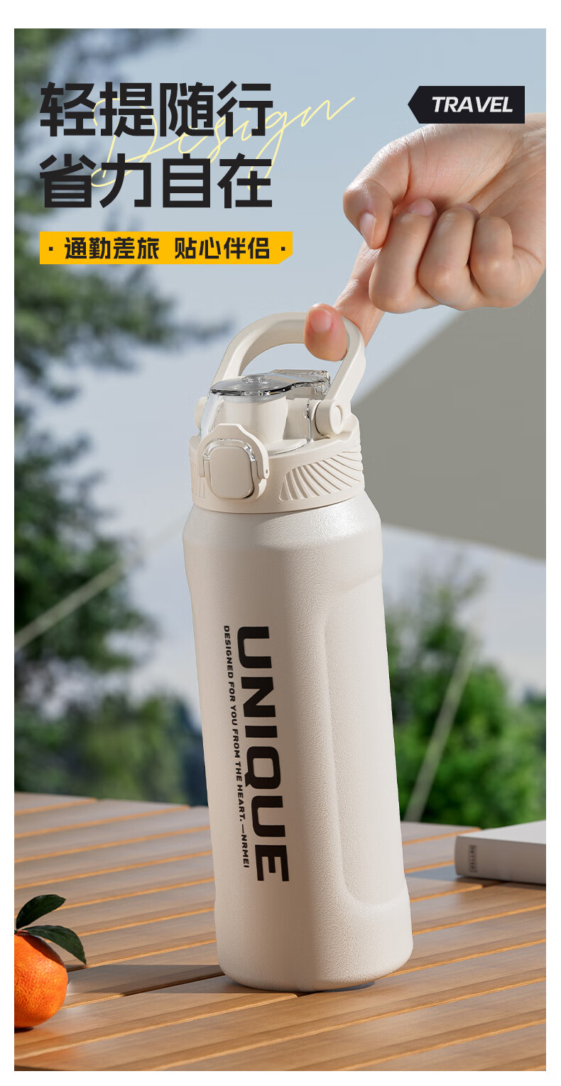 恩尔美(nRMEi)保温杯大容量男款初高中学生上学专用户外便携防摔运动水壶杯子 白色600ml【316不锈钢/一杯双饮】