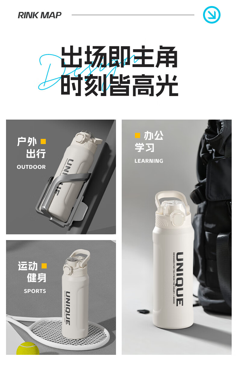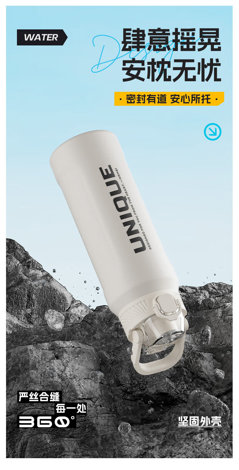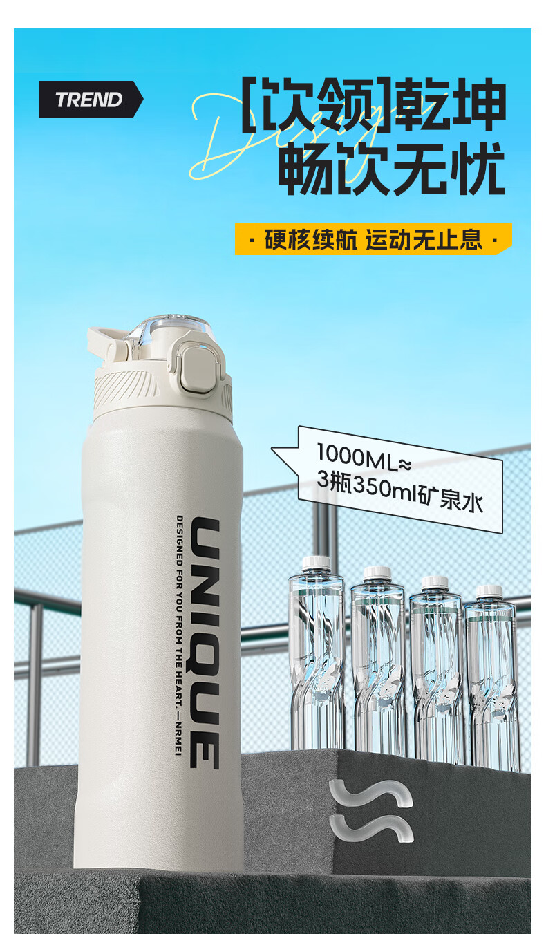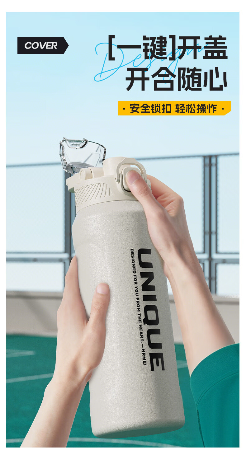 恩尔美(nRMEi)保温杯大容量男款初高中学生上学专用户外便携防摔运动水壶杯子 白色600ml【316不锈钢/一杯双饮】