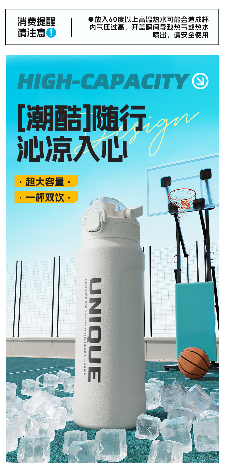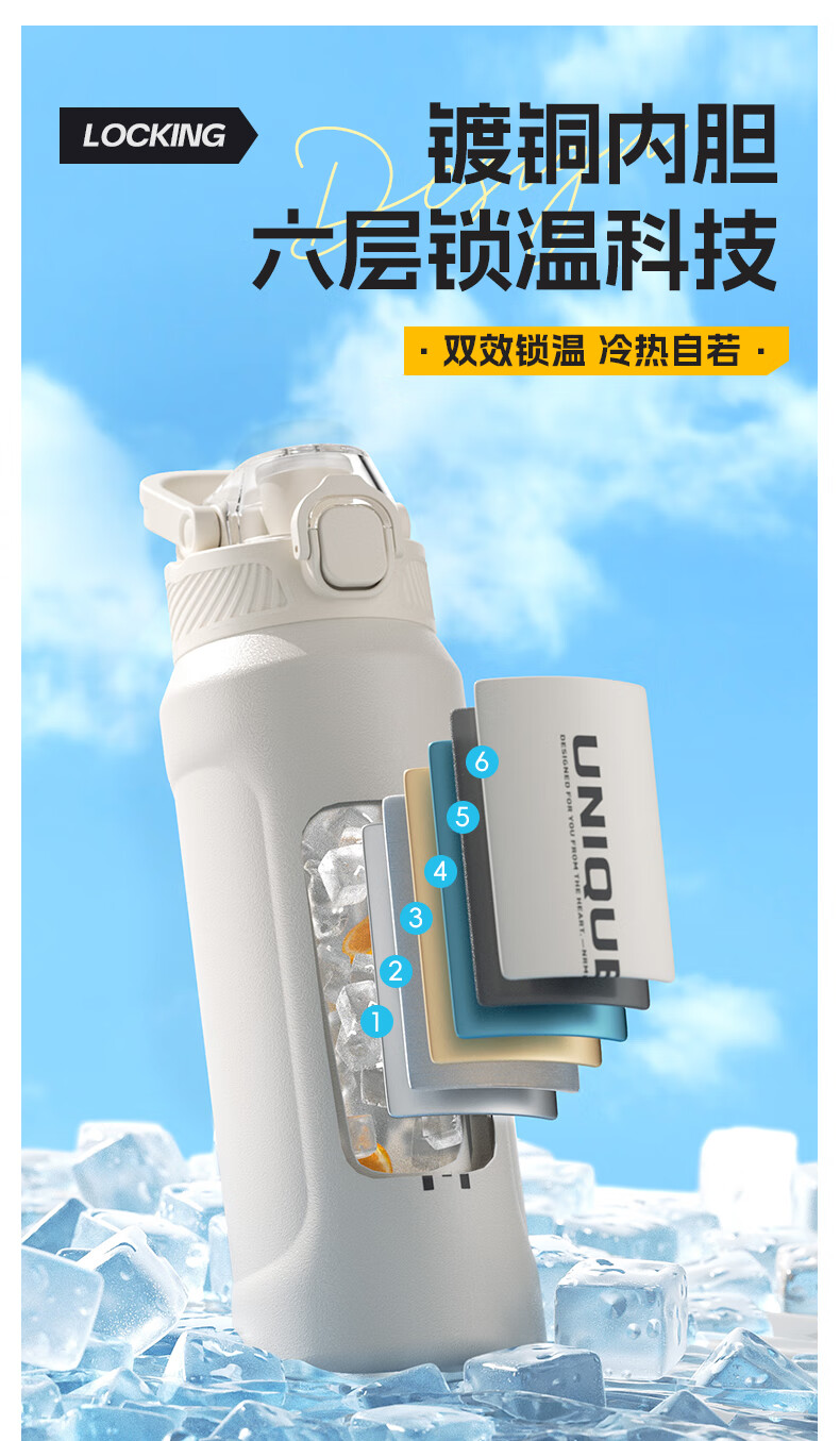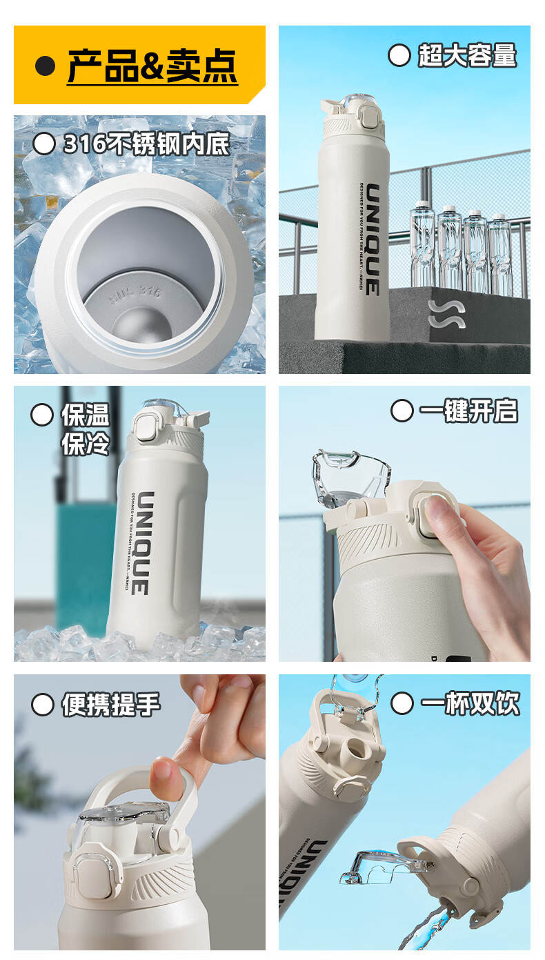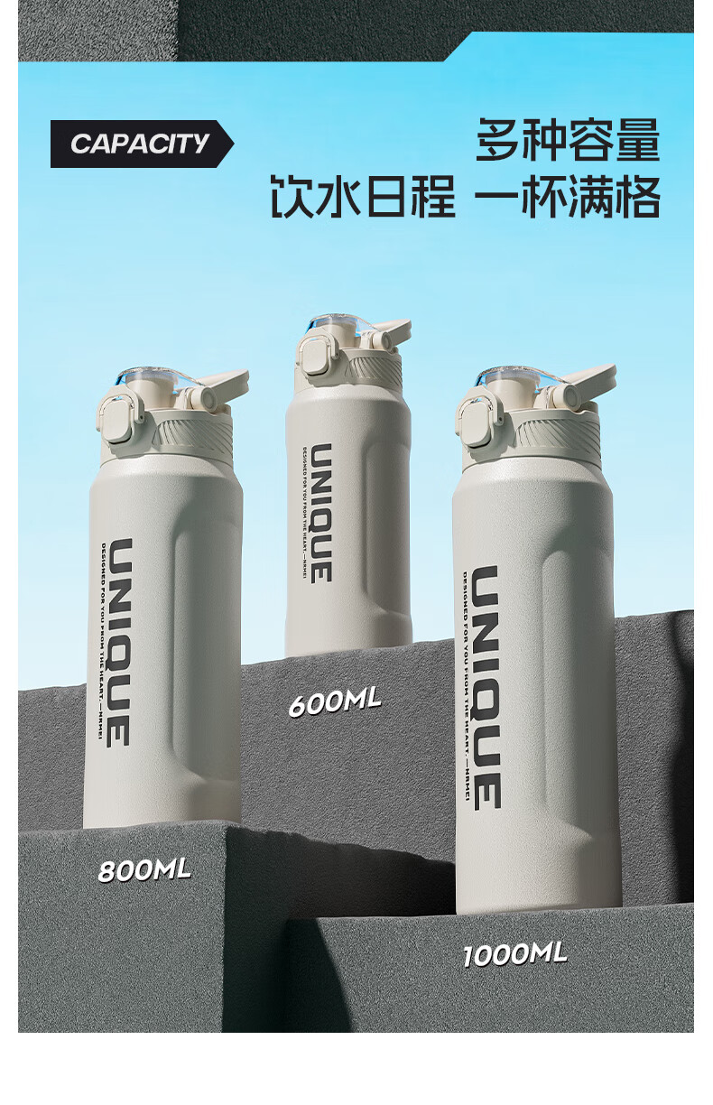 恩尔美(nRMEi)保温杯大容量男款初高中学生上学专用户外便携防摔运动水壶杯子 白色600ml【316不锈钢/一杯双饮】