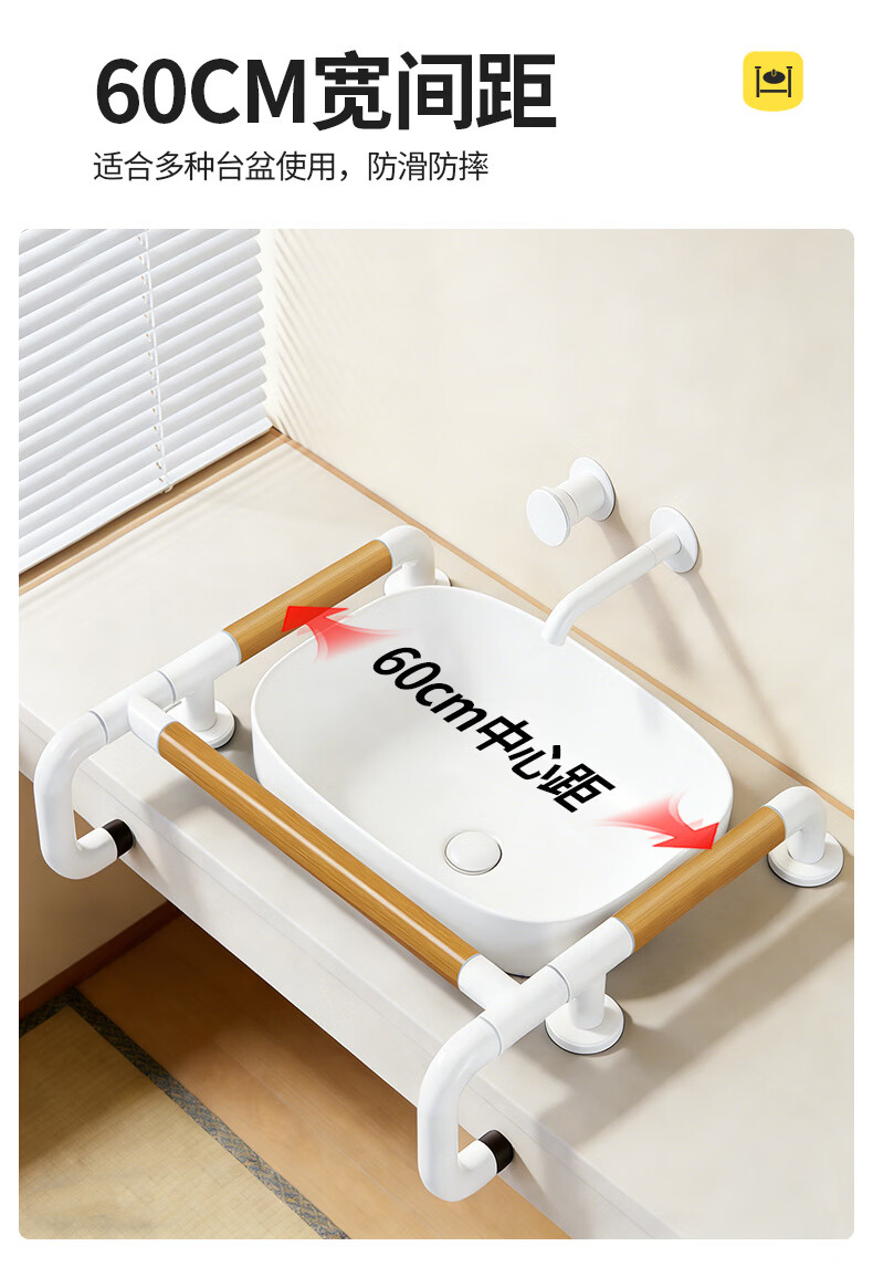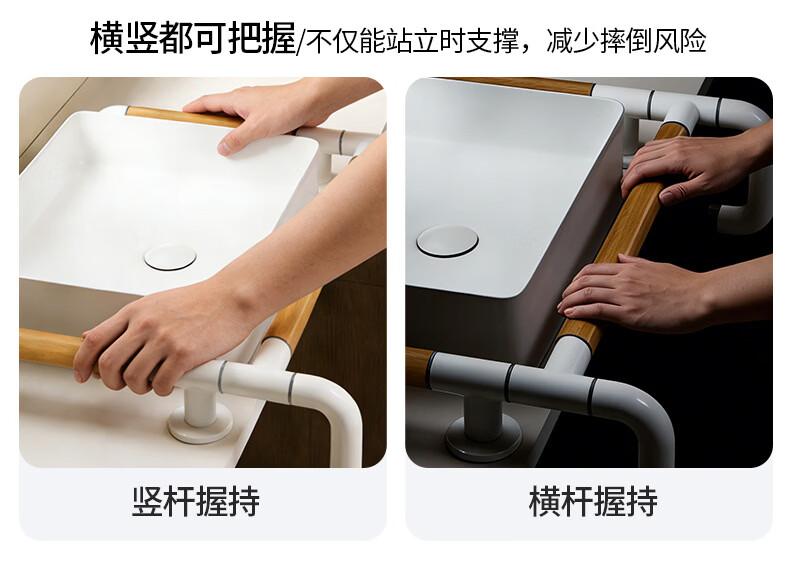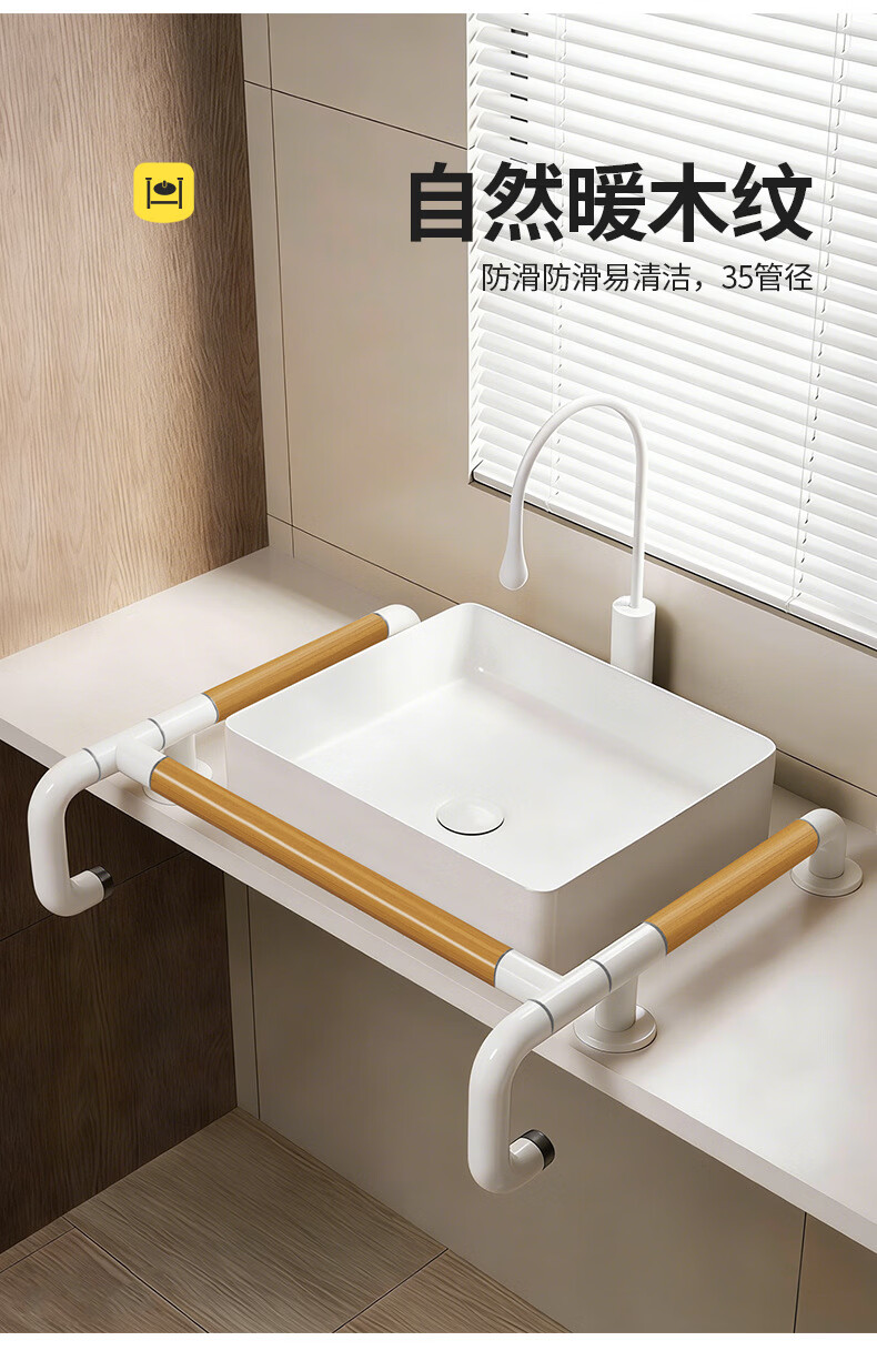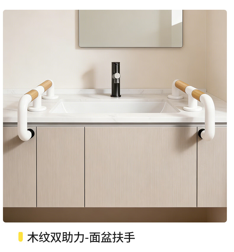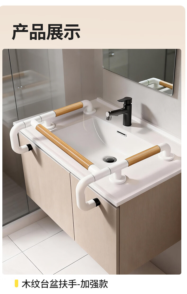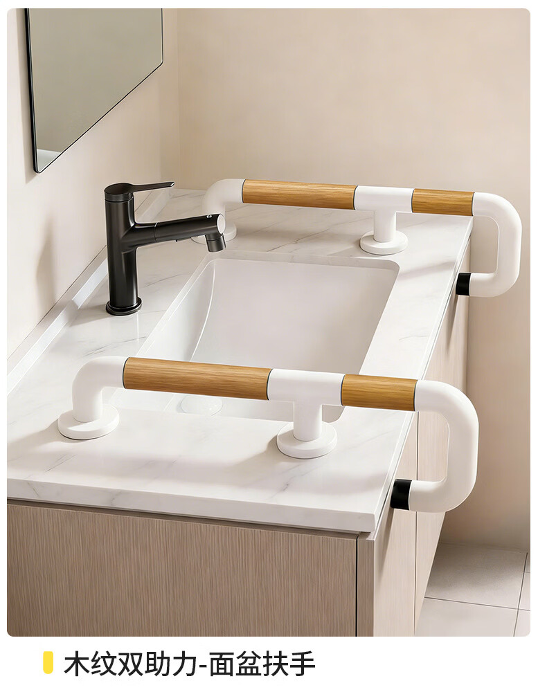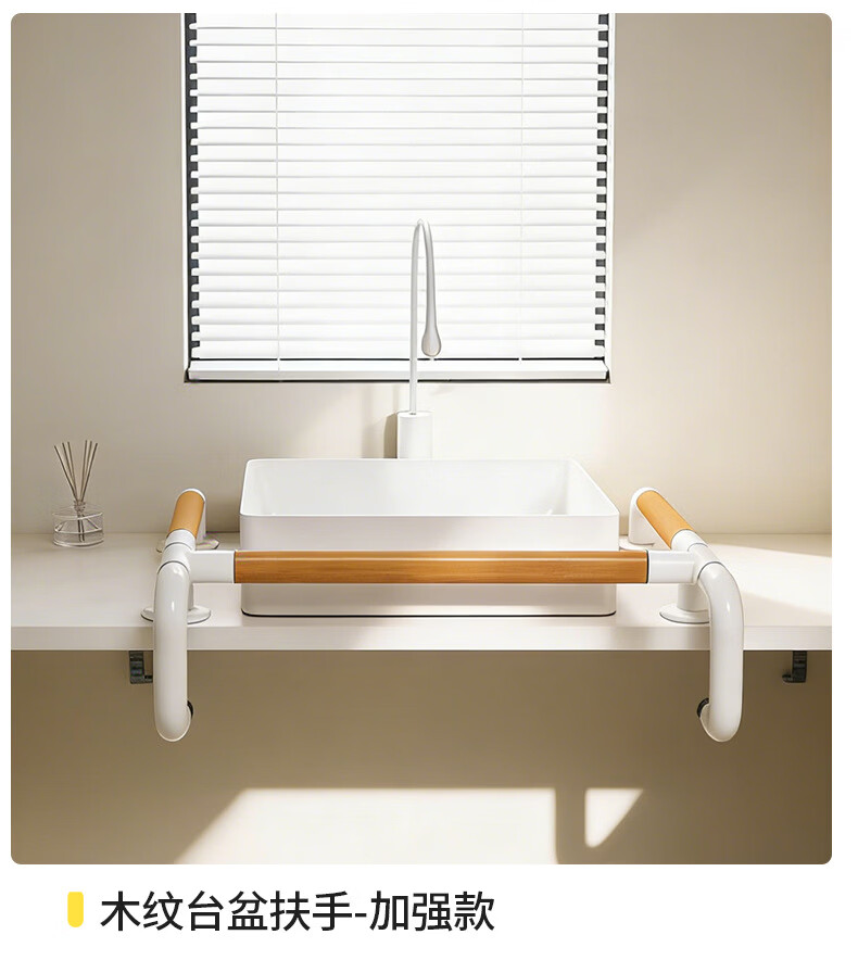 家文化(JIAWENHUA)残疾人第三卫生间木纹扶手残卫公厕无障碍老人洗手台盆洗脸面盆 木纹色-带横杆面盆扶手((支持定制))