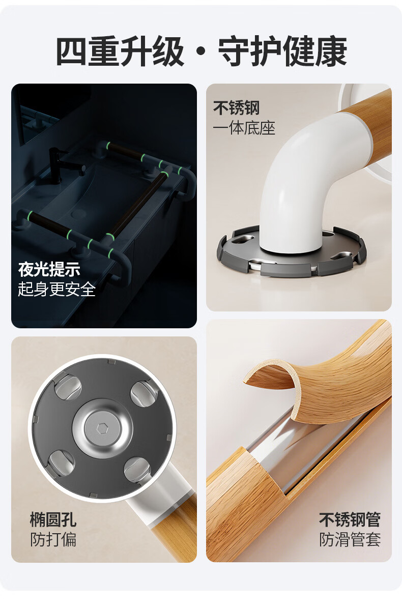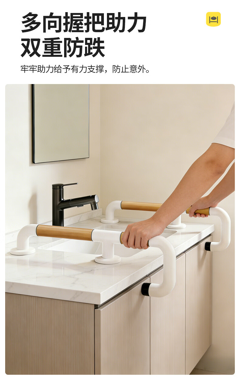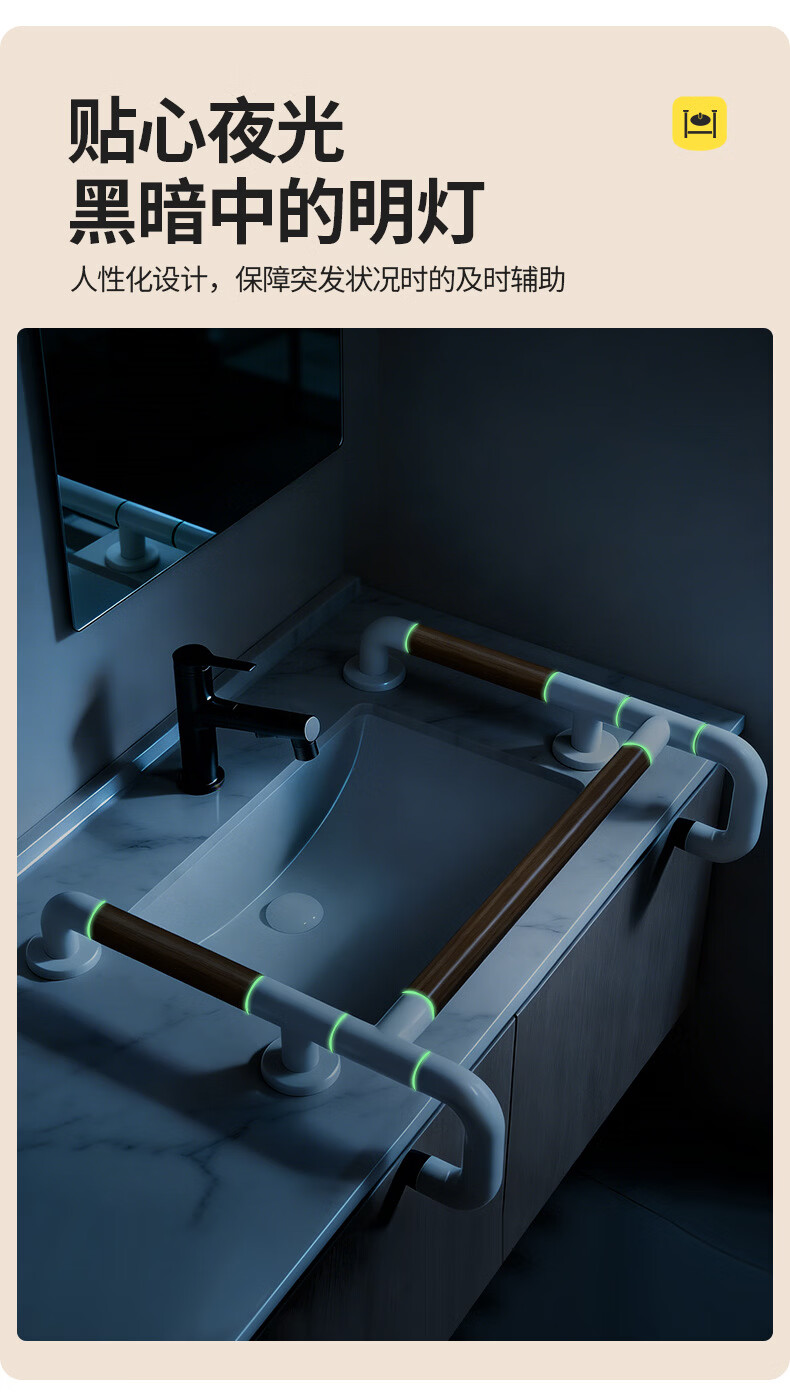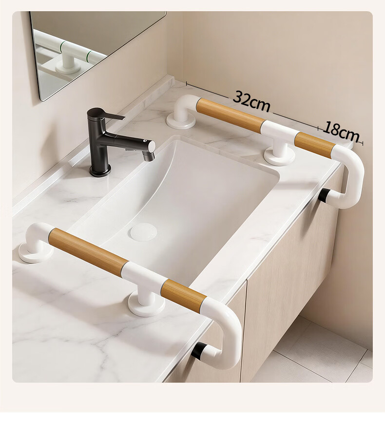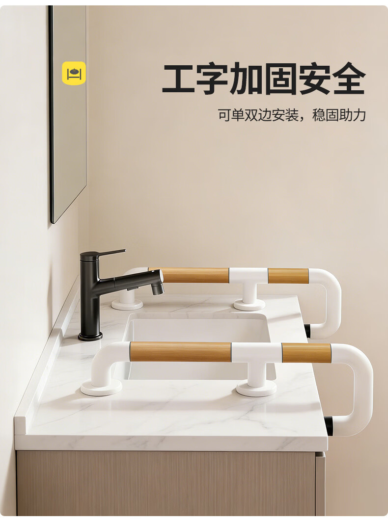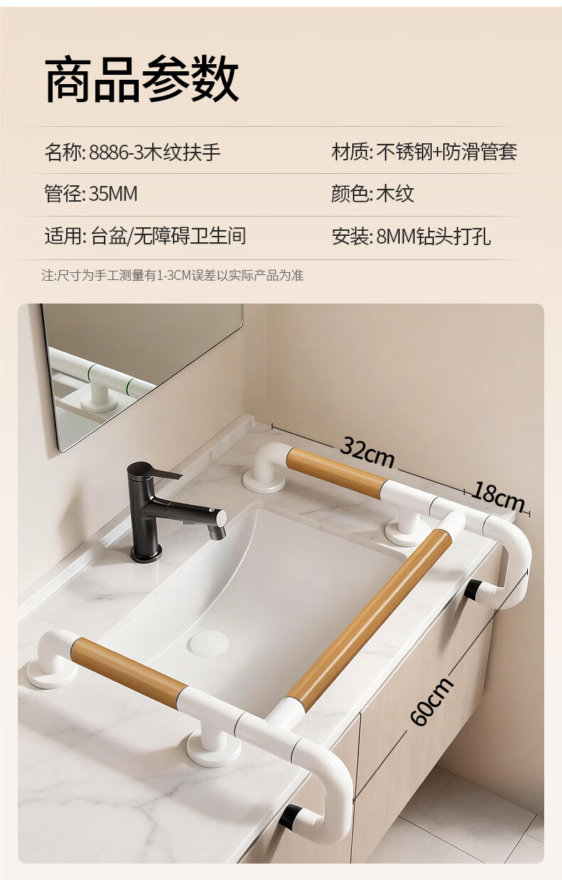 家文化(JIAWENHUA)残疾人第三卫生间木纹扶手残卫公厕无障碍老人洗手台盆洗脸面盆 木纹色-带横杆面盆扶手((支持定制))
