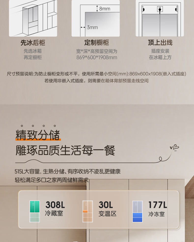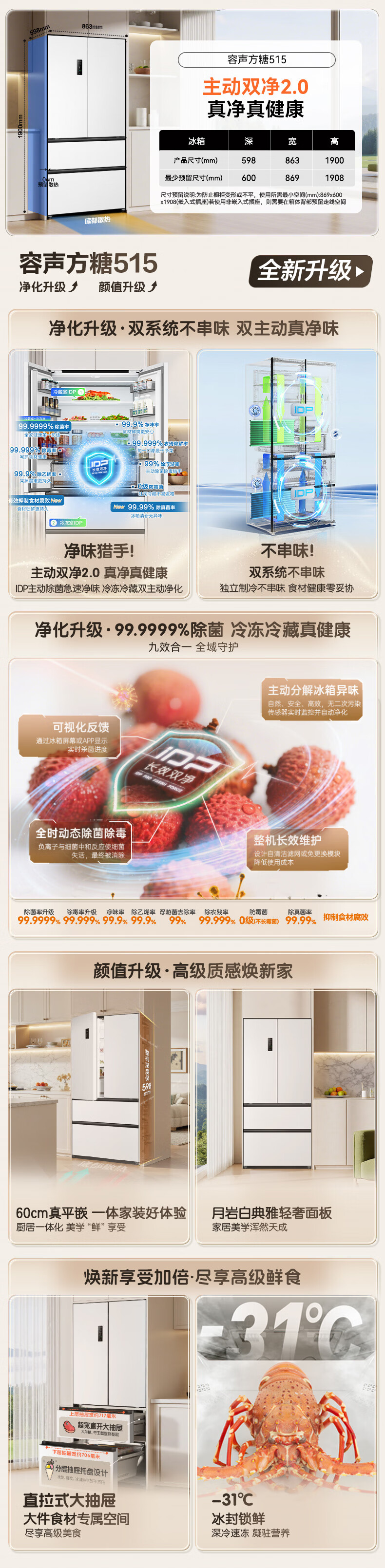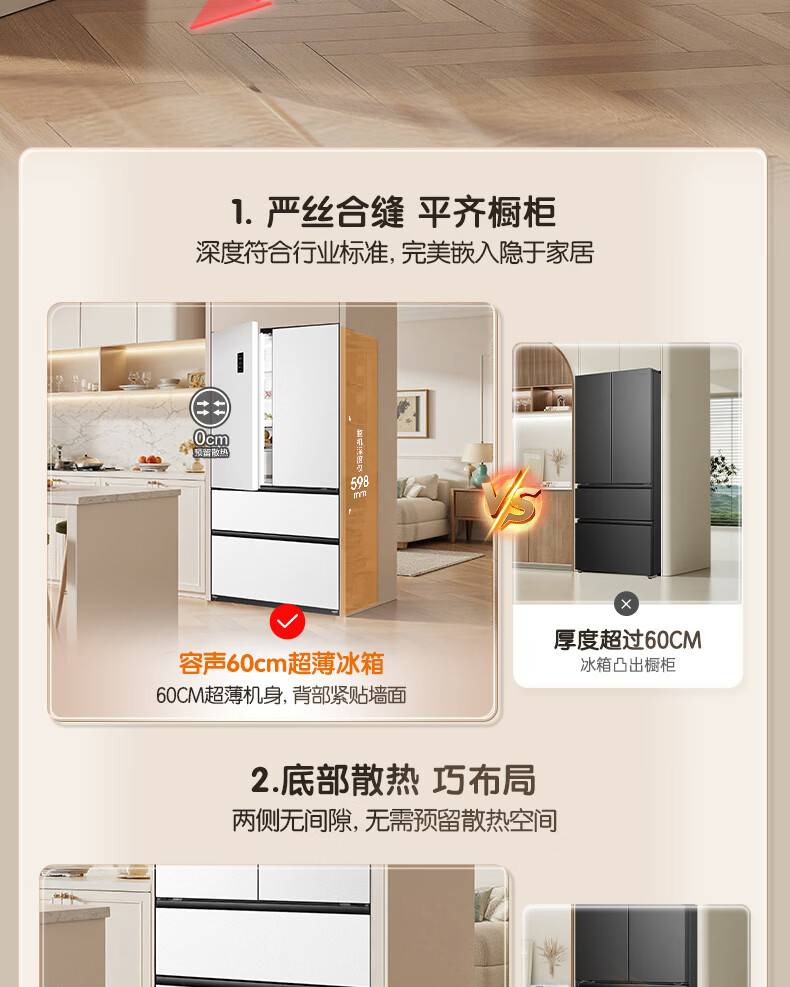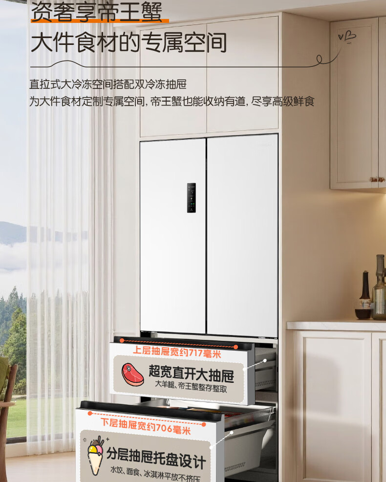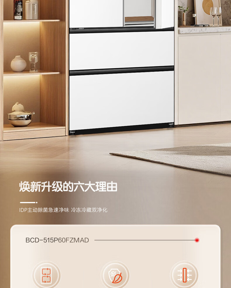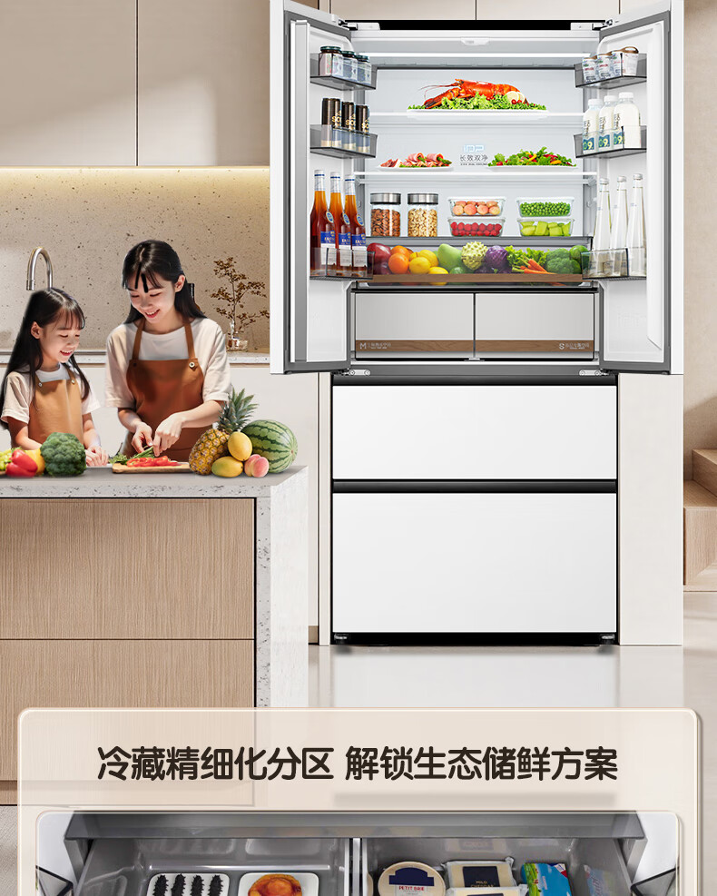 容声方糖515L法式多门冰箱双系统循环超薄零嵌入式一级能效风冷无霜四开门白BCD-515P60FZMAD国家补贴