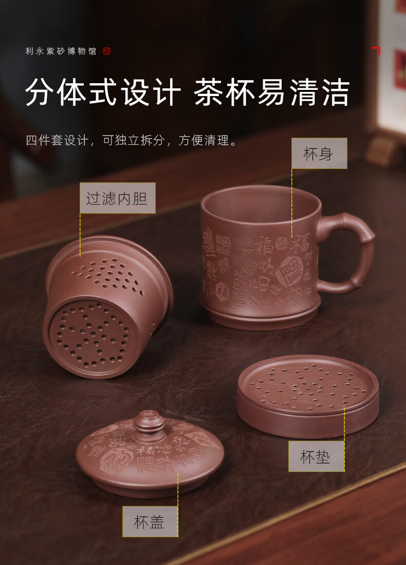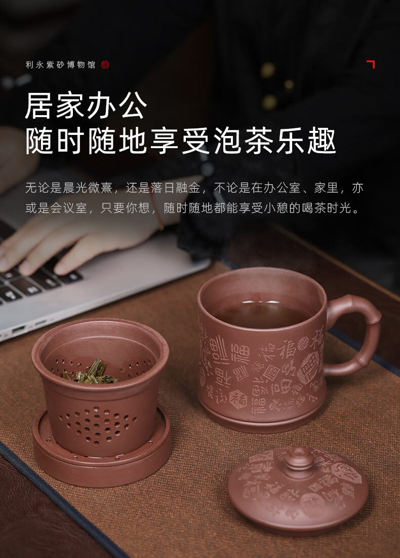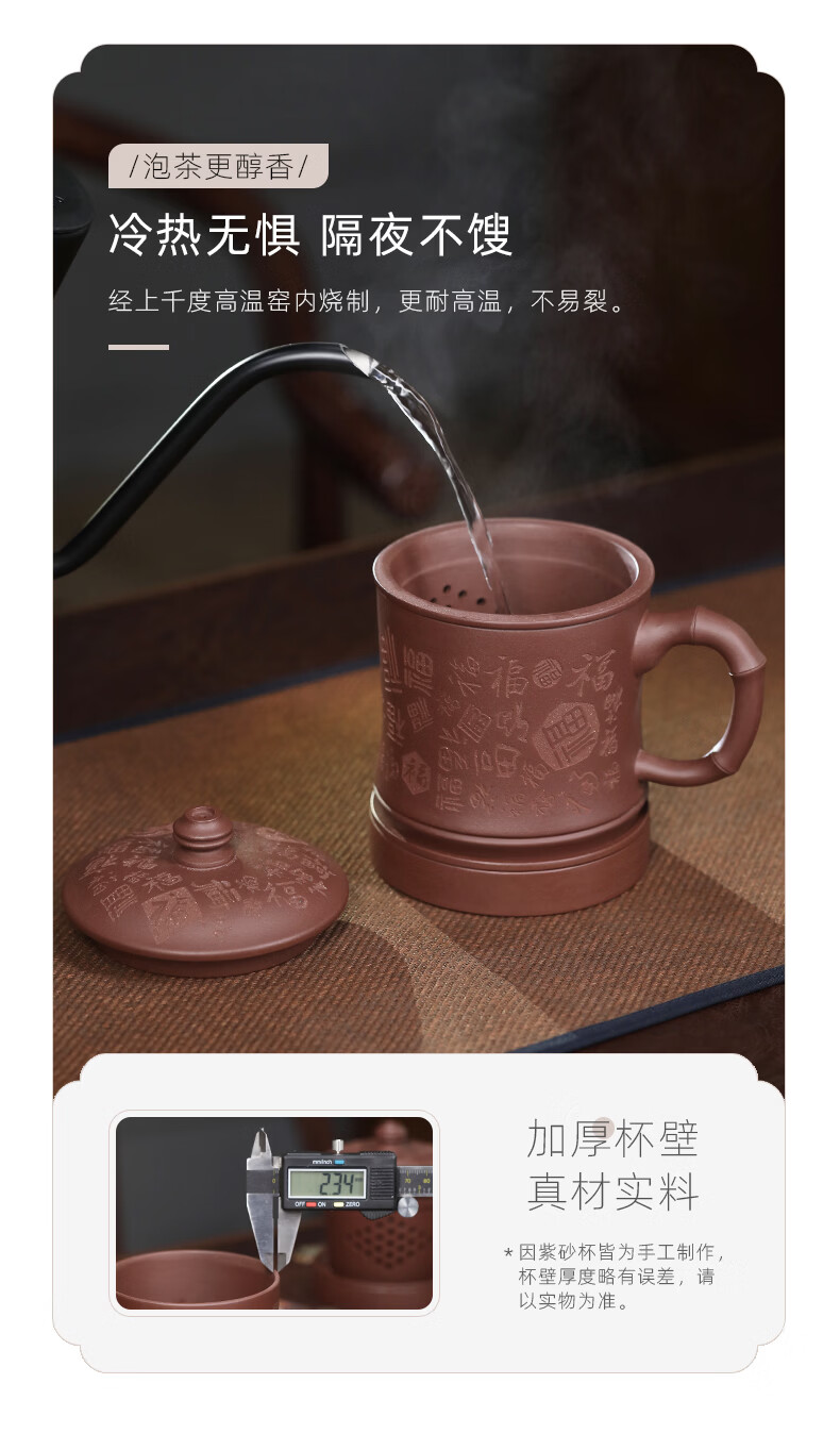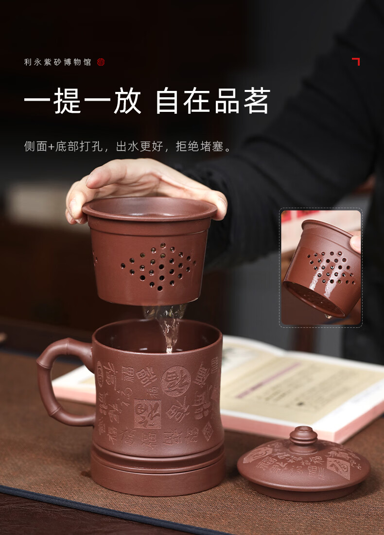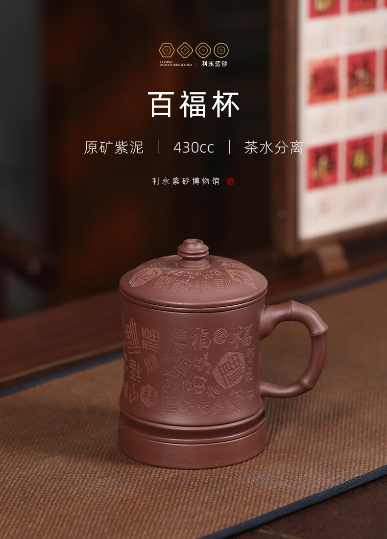 百年利永宜兴紫砂盖杯纯全手工原矿紫泥百福杯茶水分离男士办公泡茶水杯子