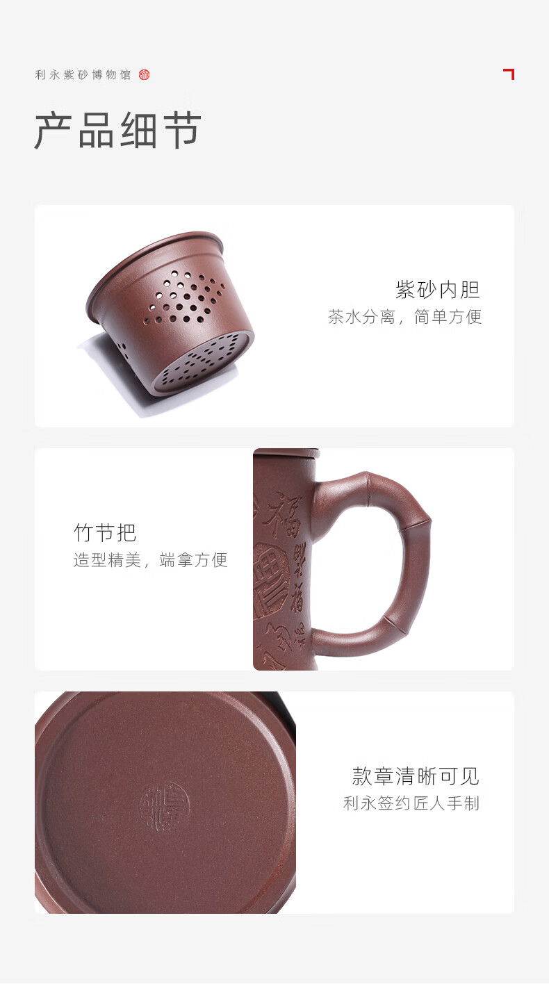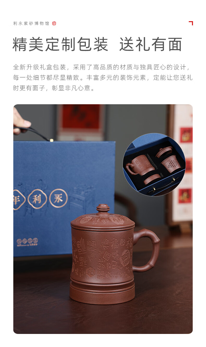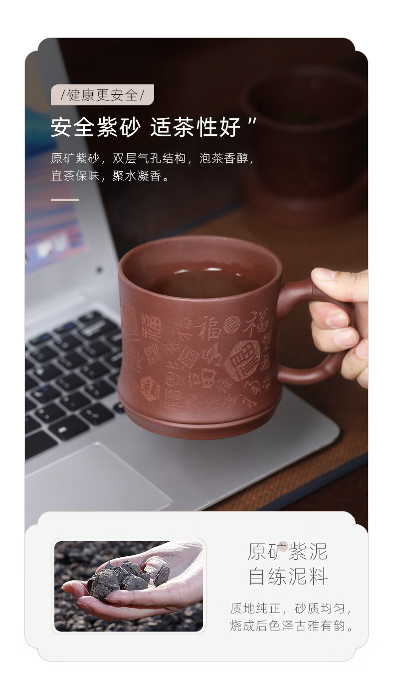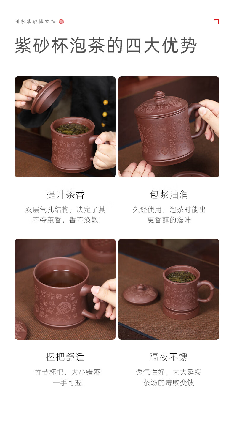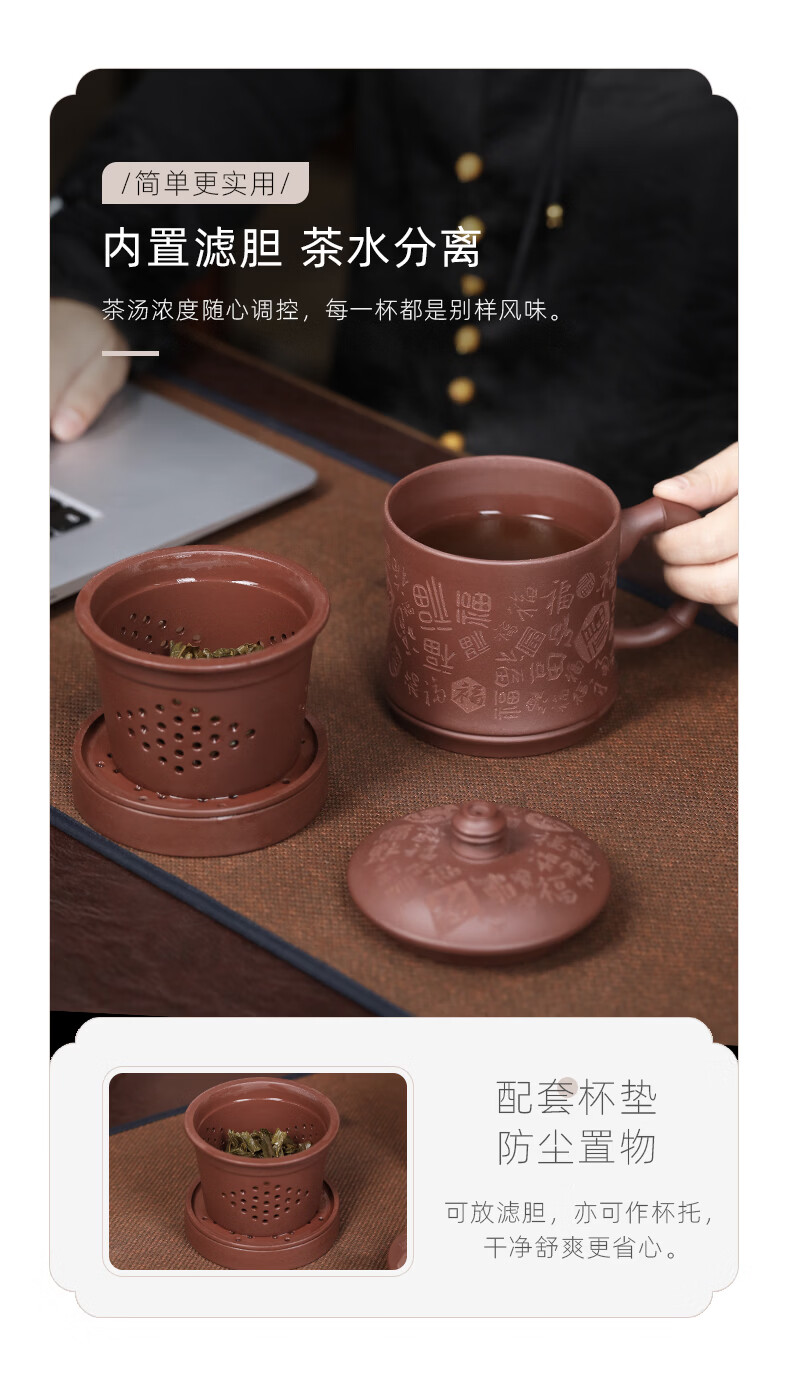 百年利永宜兴紫砂盖杯纯全手工原矿紫泥百福杯茶水分离男士办公泡茶水杯子