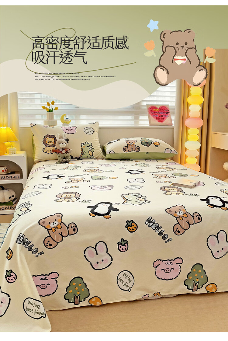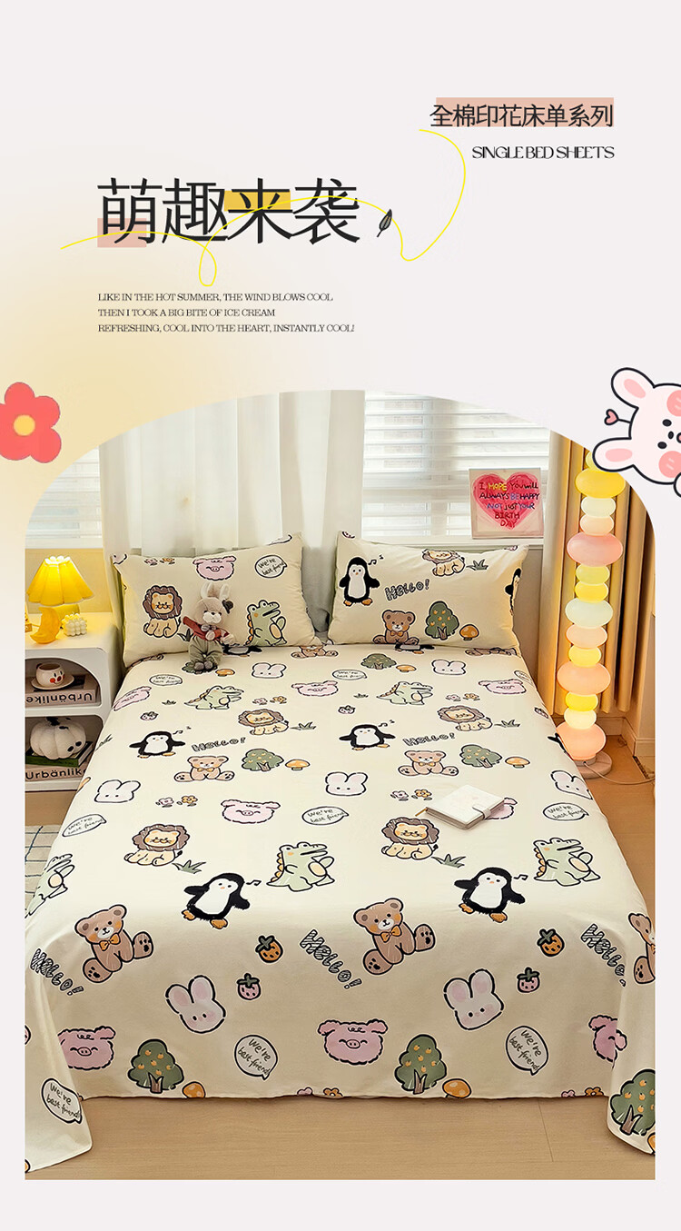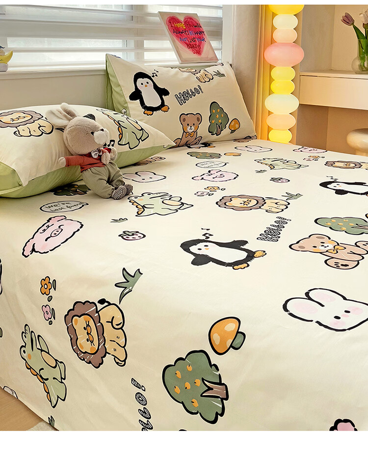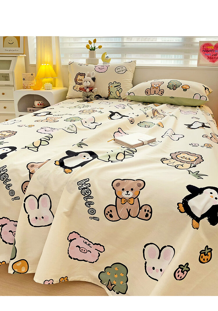 无印良品卡通纯棉床单200x230cm单件100%全棉印花宿舍家用可裸睡单人被单 动物世界【全棉纯棉 裸睡亲肤】 200cm*230cm -单床单