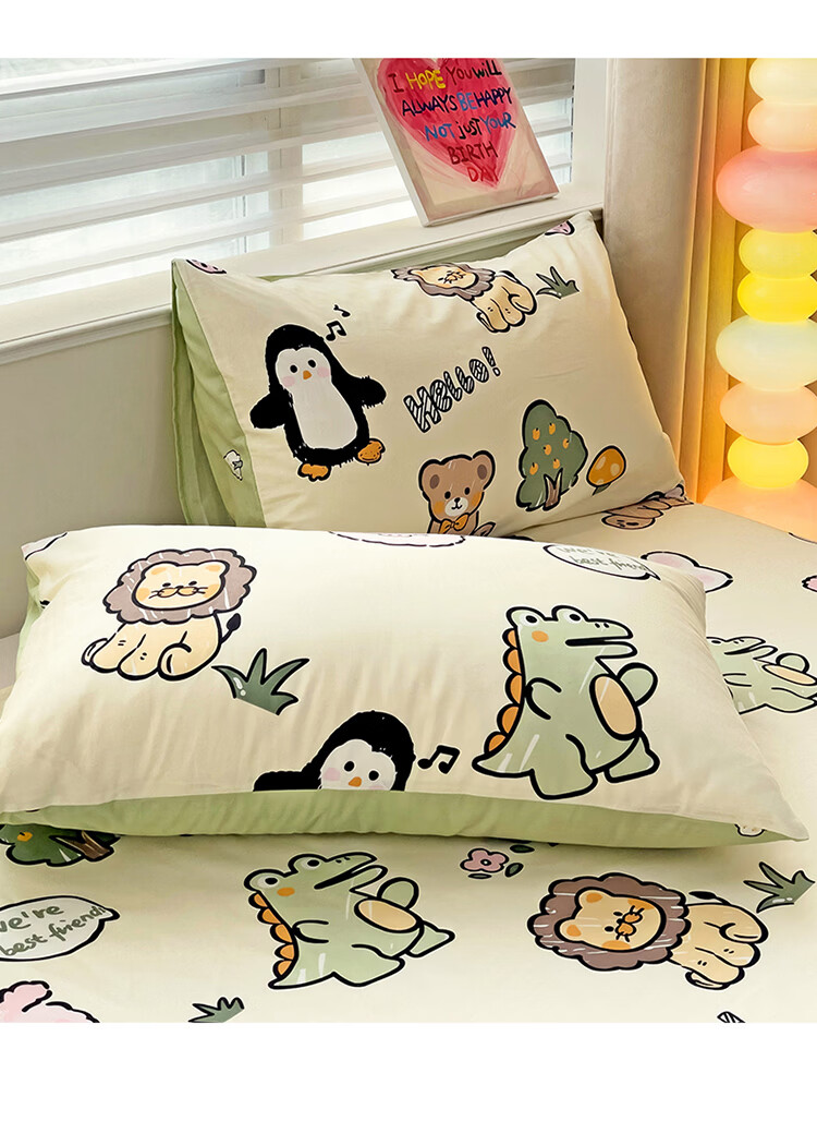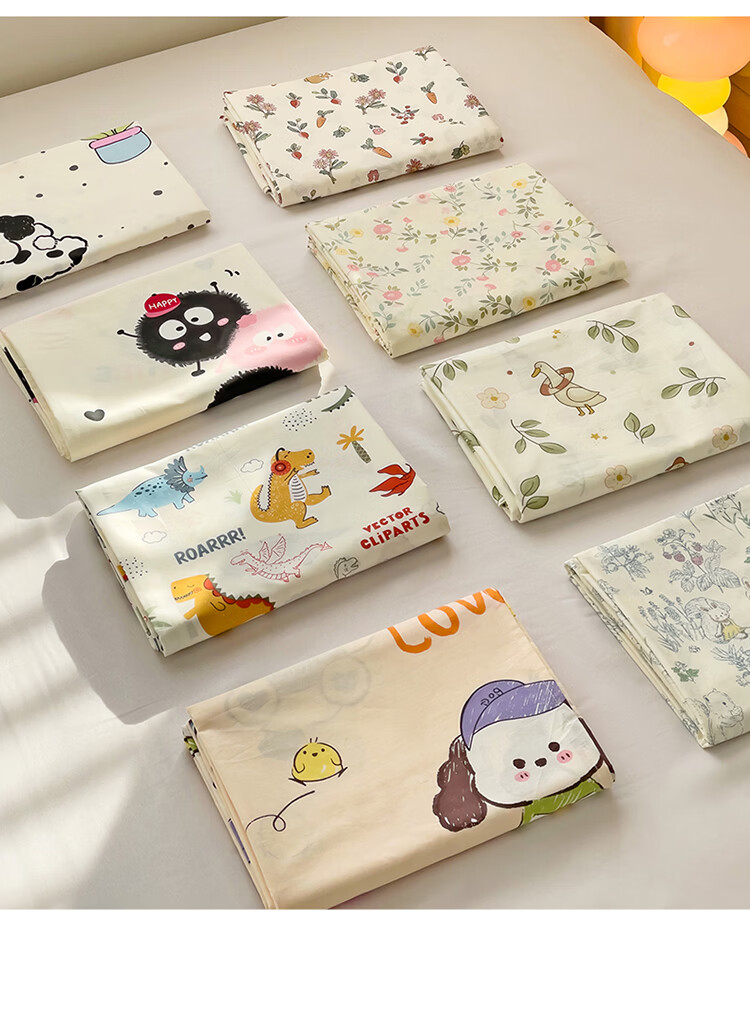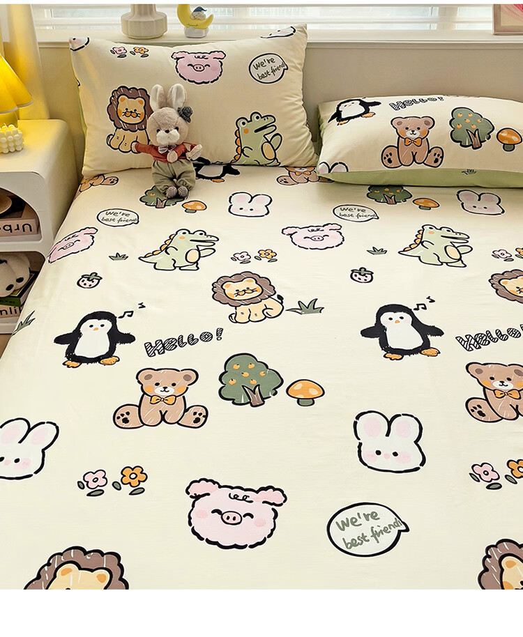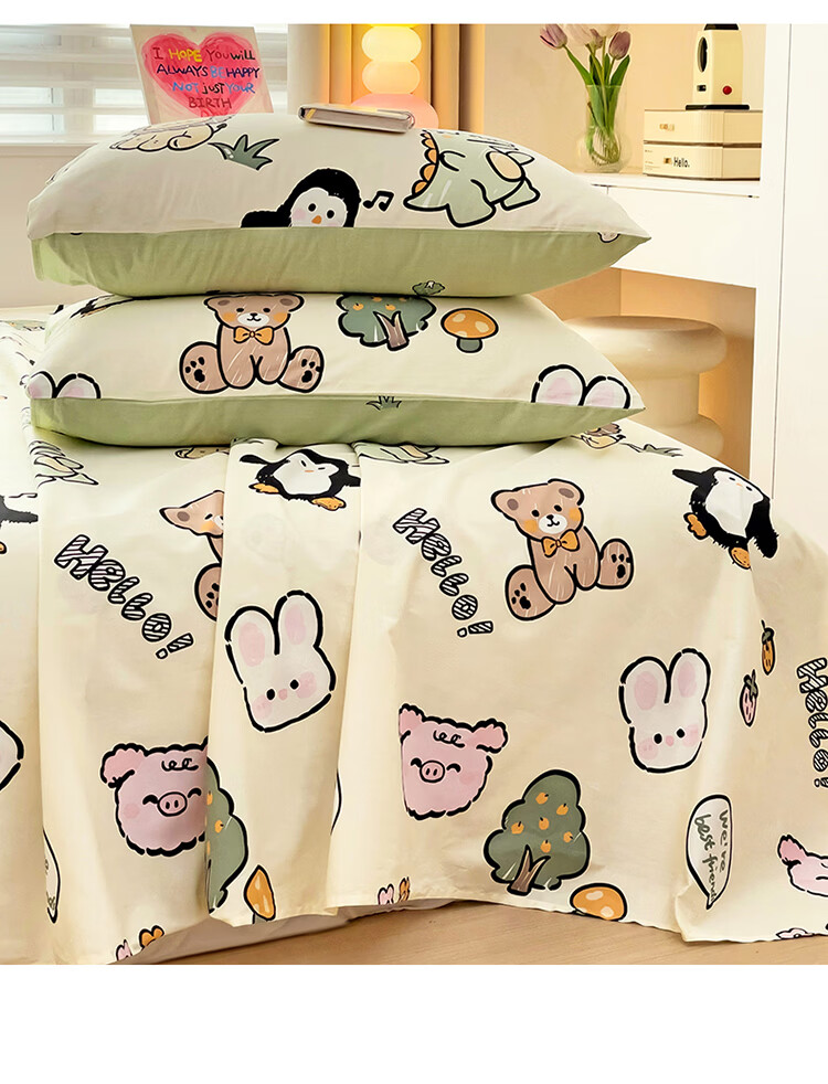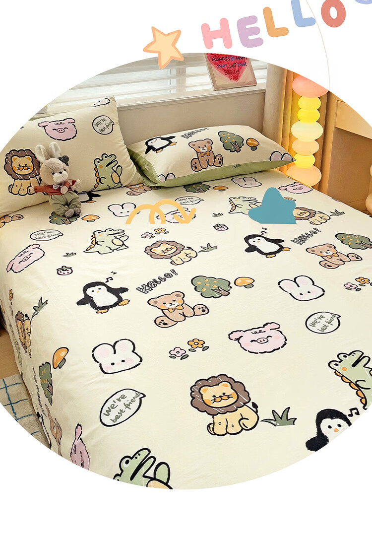 无印良品卡通纯棉床单200x230cm单件100%全棉印花宿舍家用可裸睡单人被单 动物世界【全棉纯棉 裸睡亲肤】 200cm*230cm -单床单