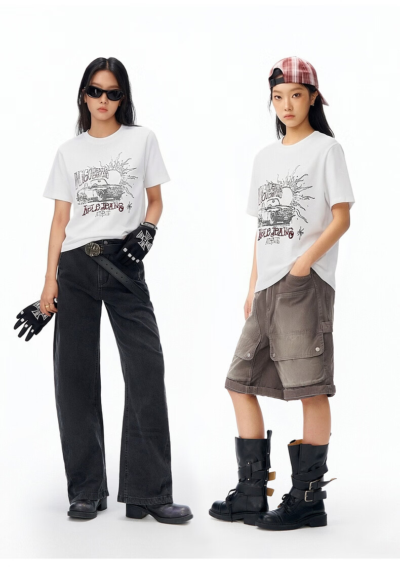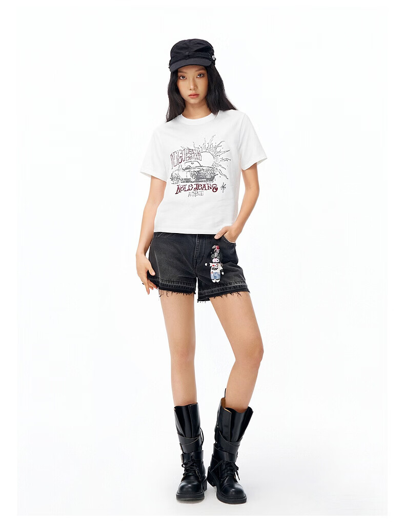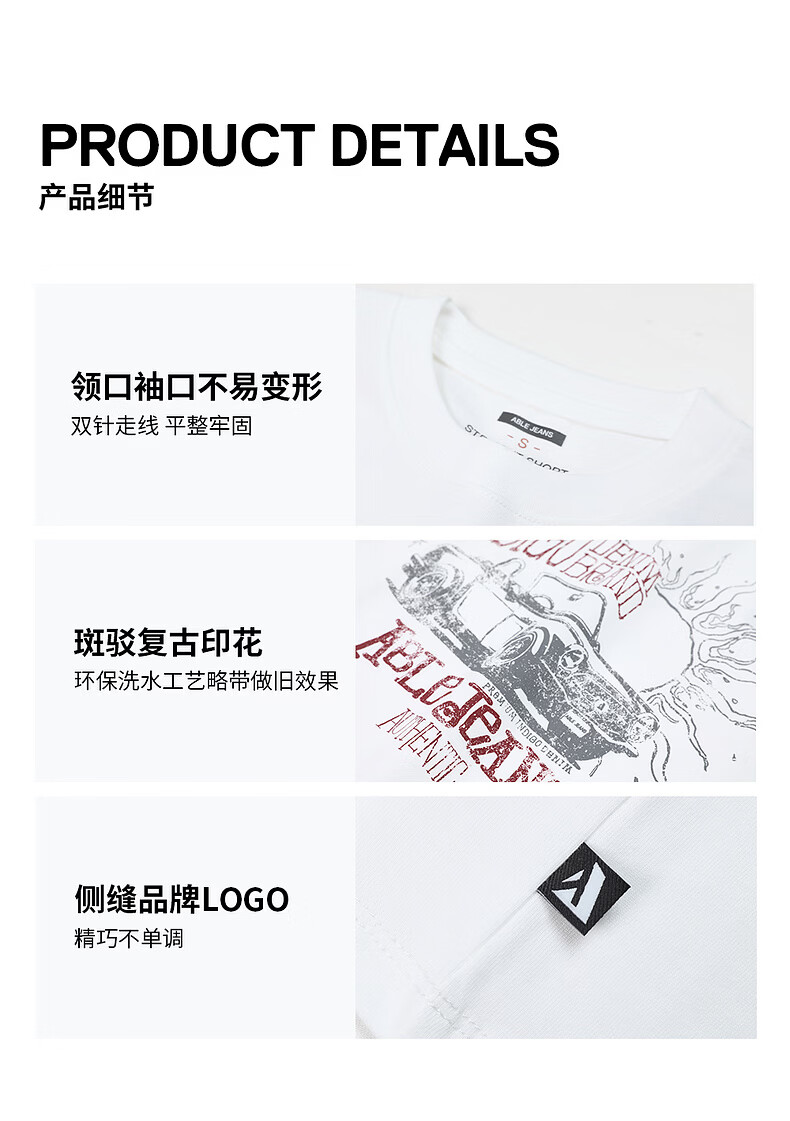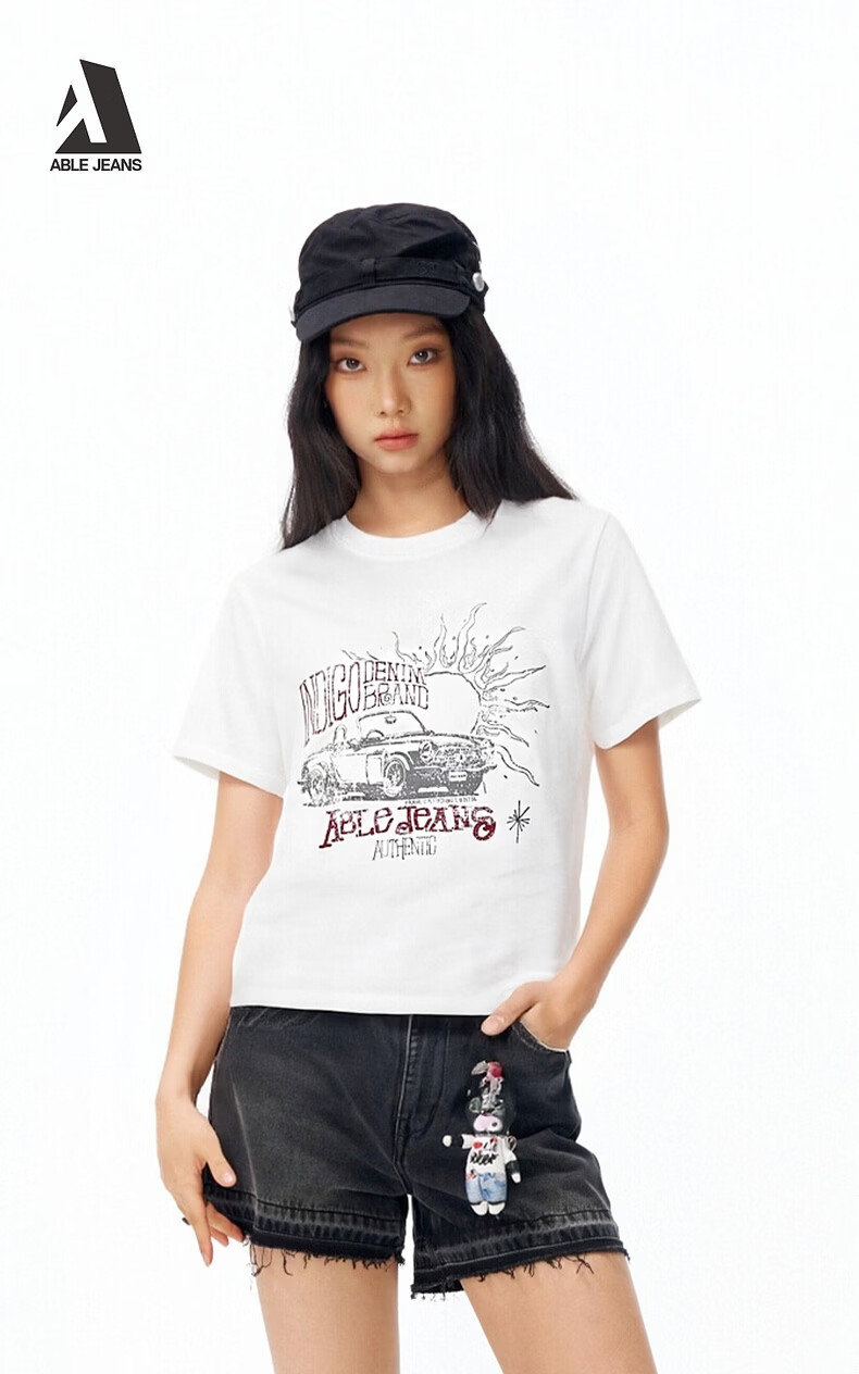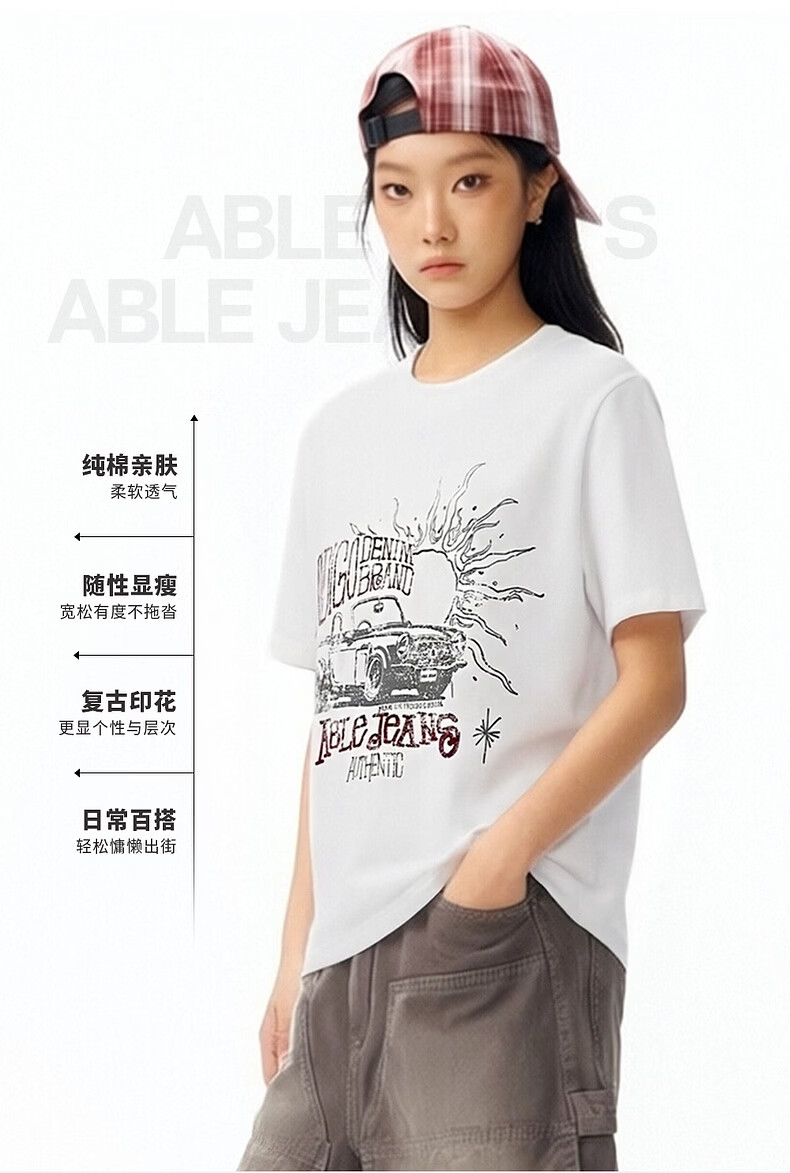ABLE JEANS 26春新款T恤女士纯棉复古印花上衣时尚透气都市旷野短袖 象牙白 XS
