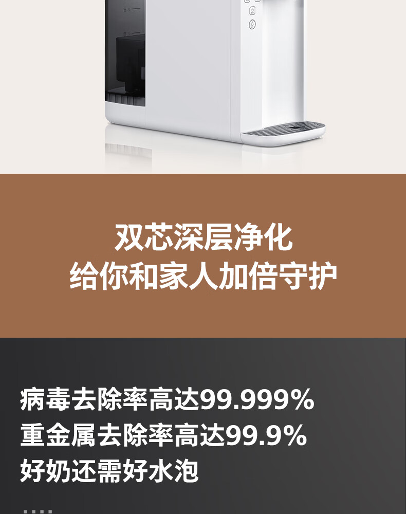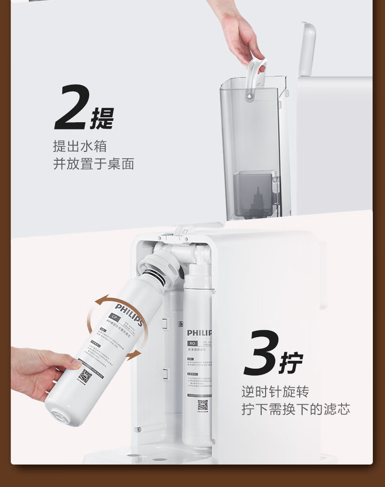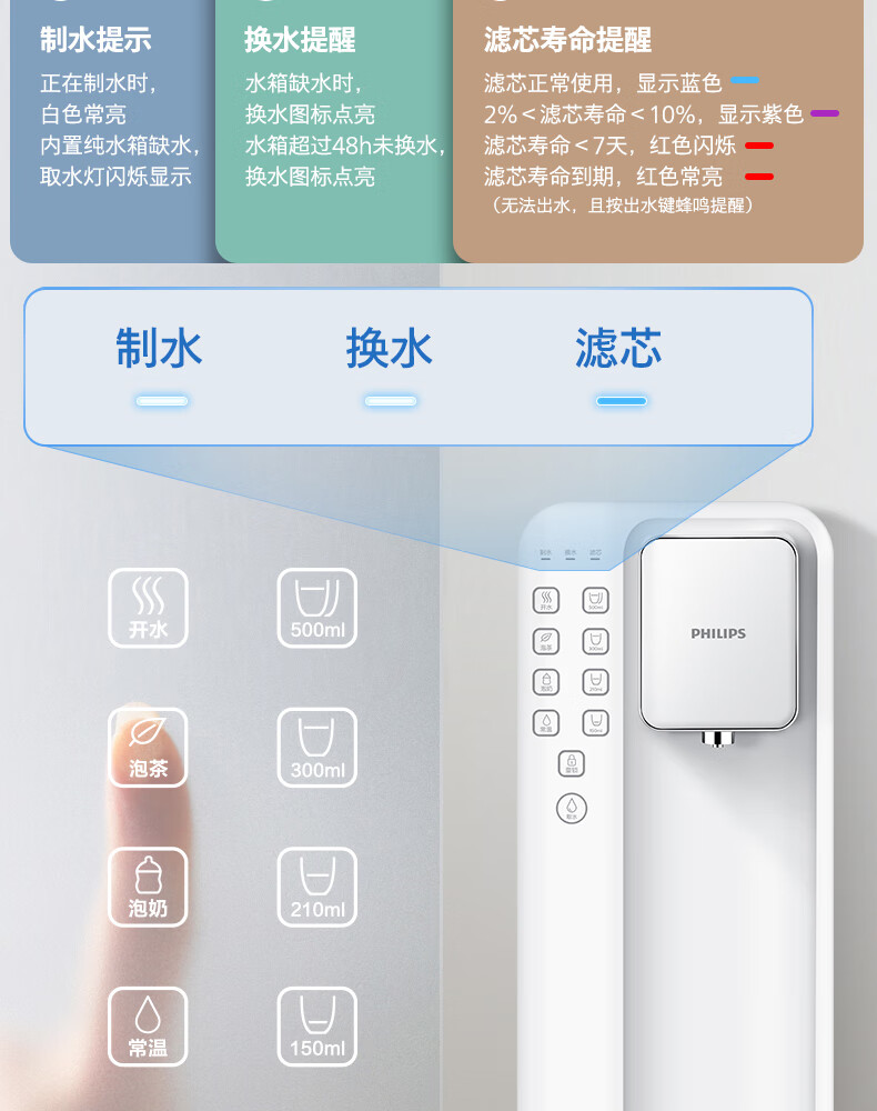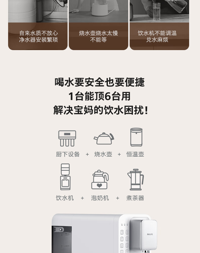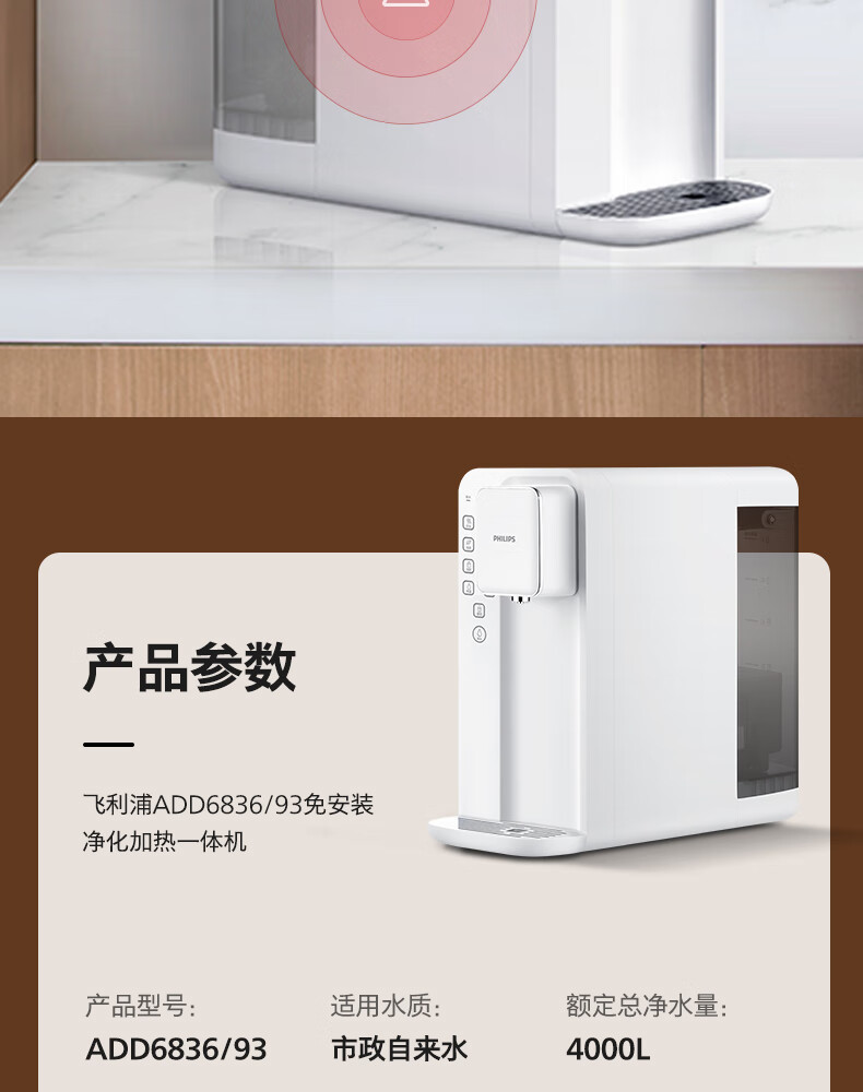 飞利浦(PHILIPS)家用净水器 加热直饮一体机 台式免安装即热直饮水机 反渗透净水器双芯 5升大水箱ADD6836/93 【升级一级水效】
