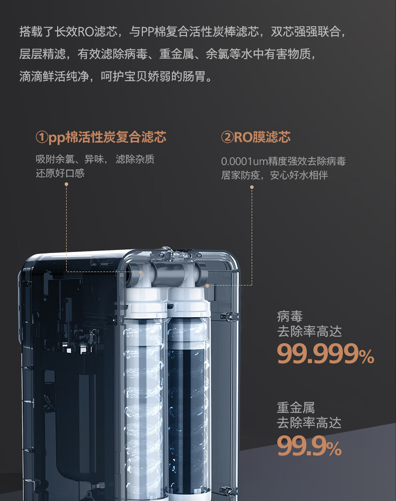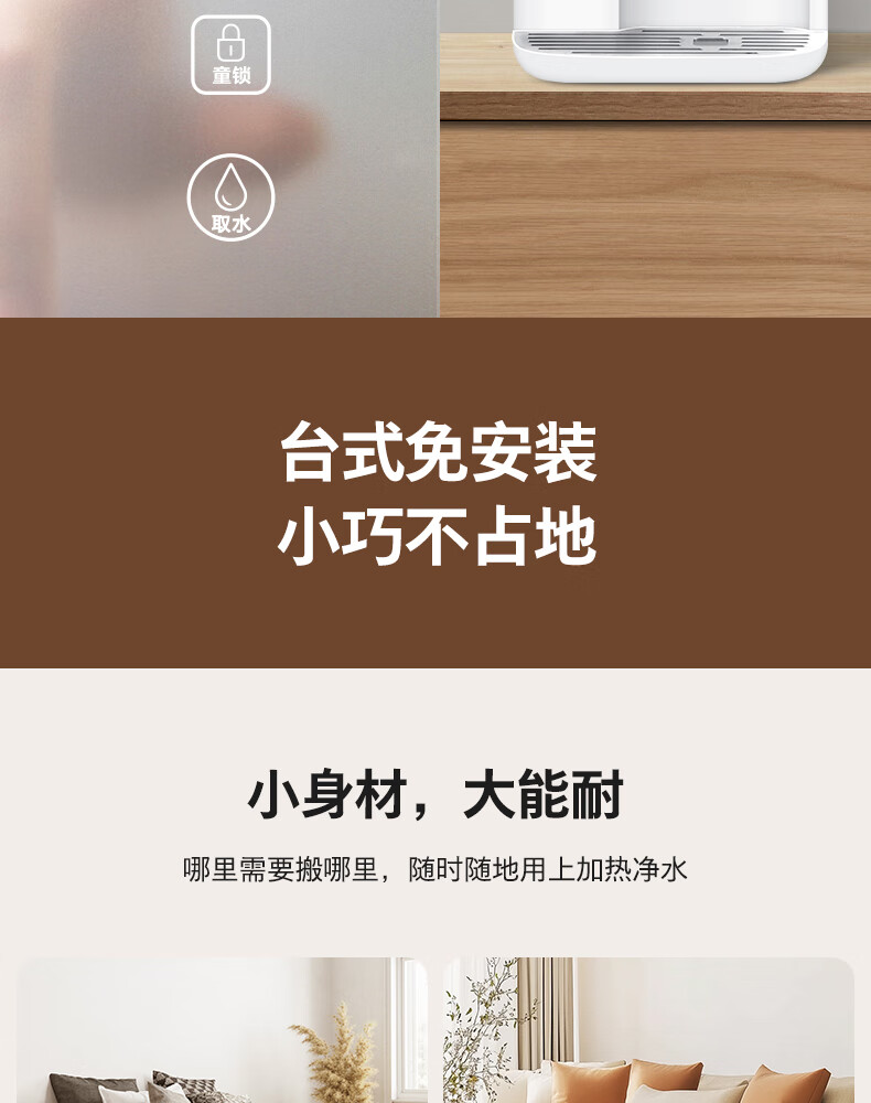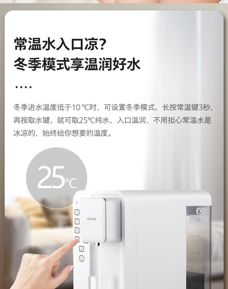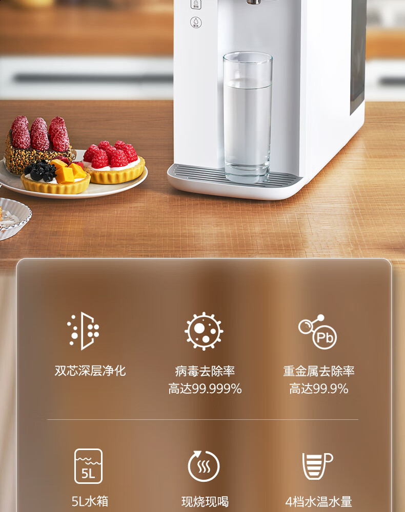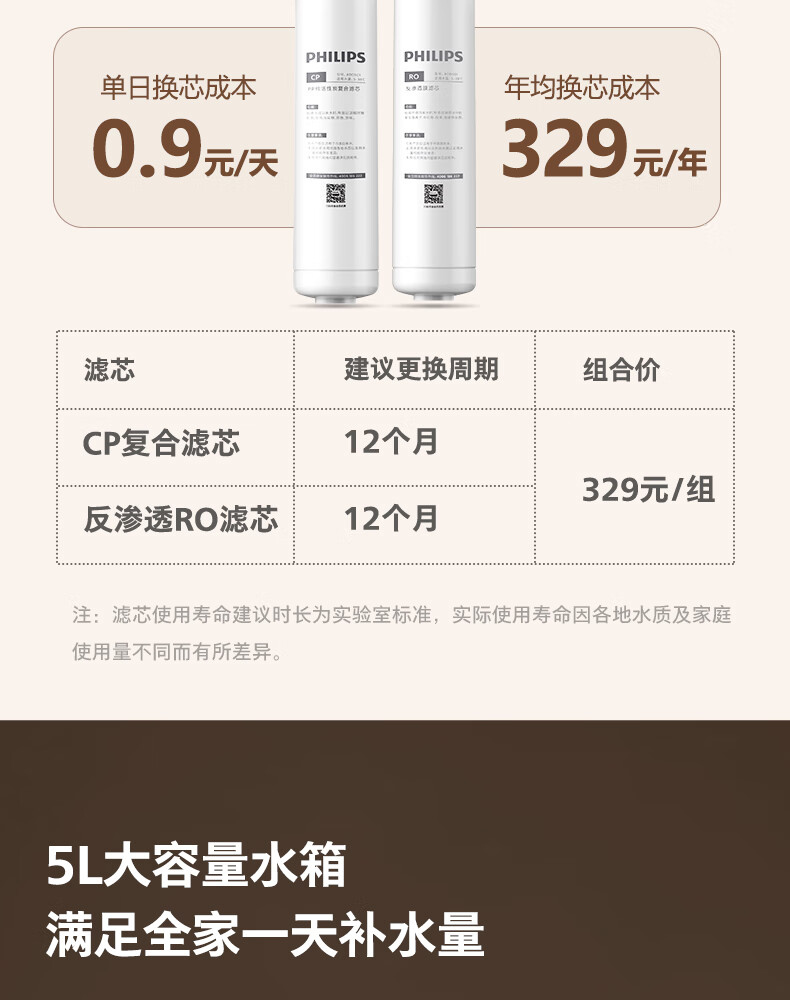 飞利浦(PHILIPS)家用净水器 加热直饮一体机 台式免安装即热直饮水机 反渗透净水器双芯 5升大水箱ADD6836/93 【升级一级水效】