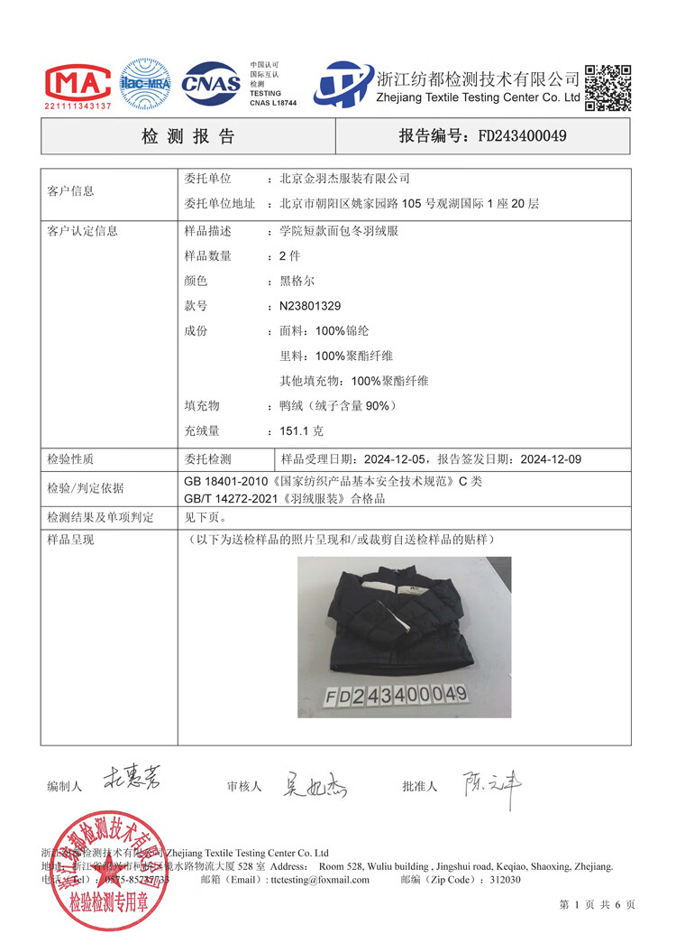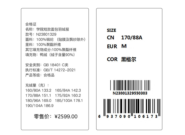 金羽杰设计师联名款冬新款防水羽绒服男女短款反季三防面包服N23801329 高街灰白 XS 适合120斤以下