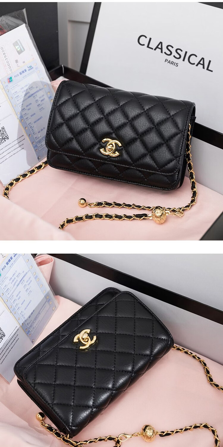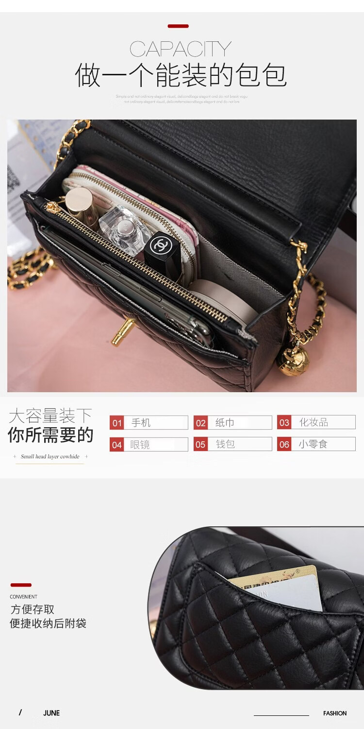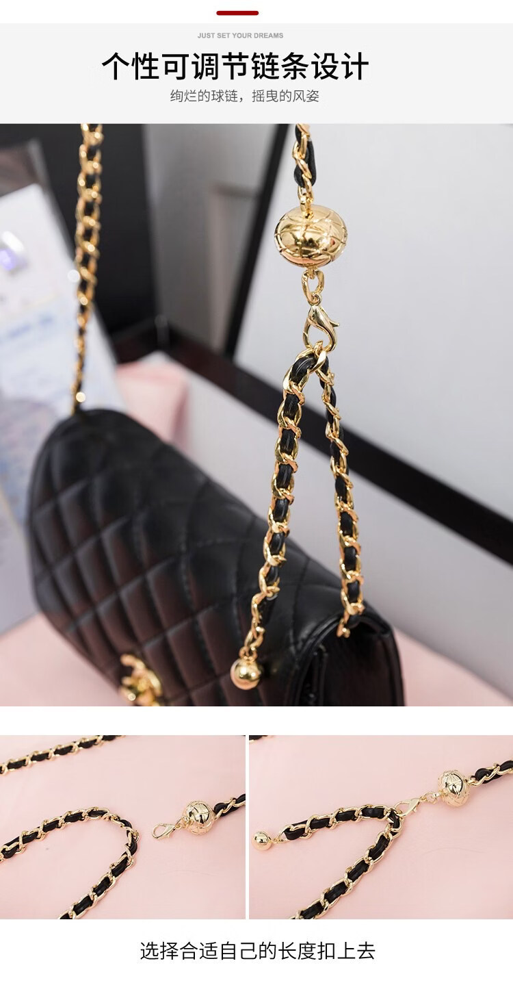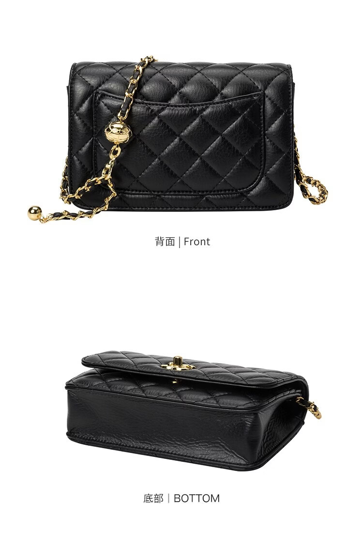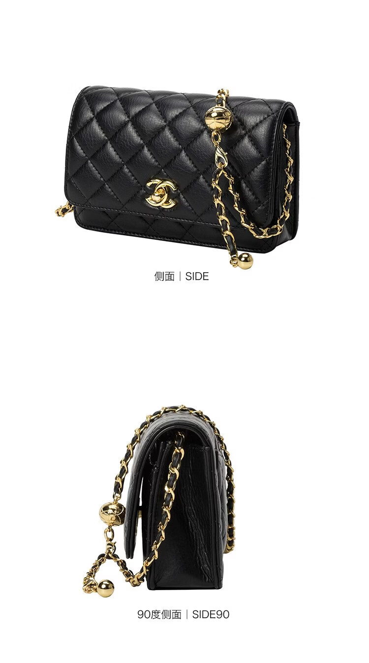 香奈小香儿包包女士新款真皮小金球单肩小方包小香儿时尚链条斜挎包 黑色