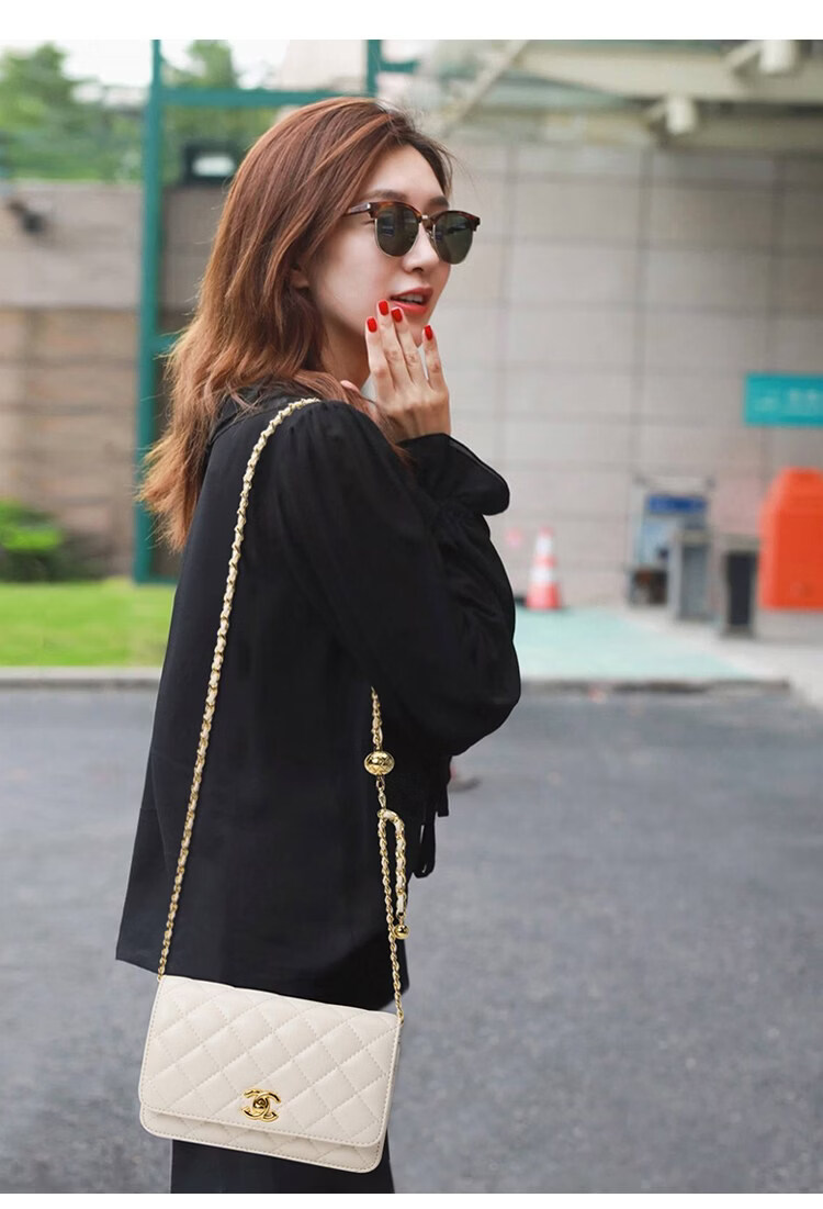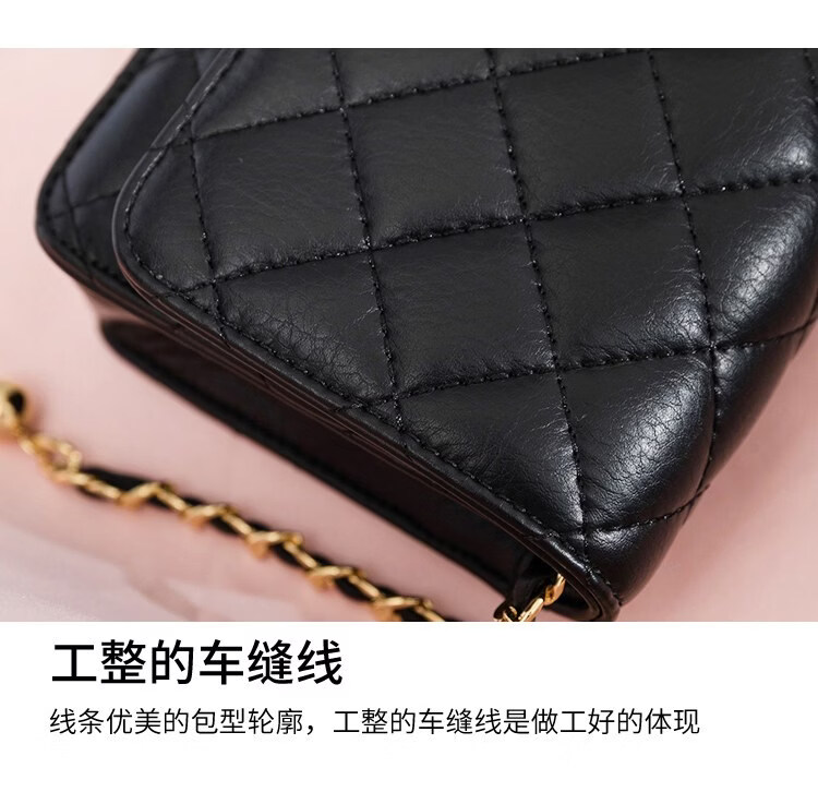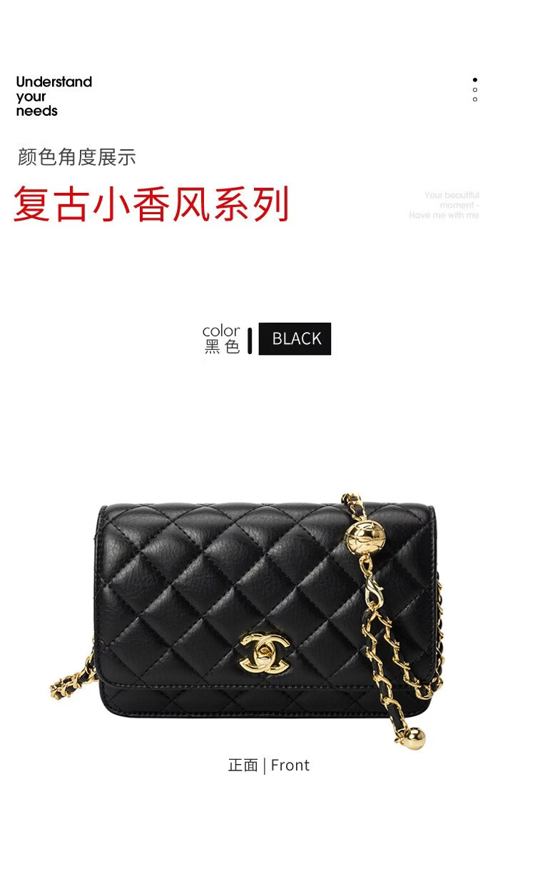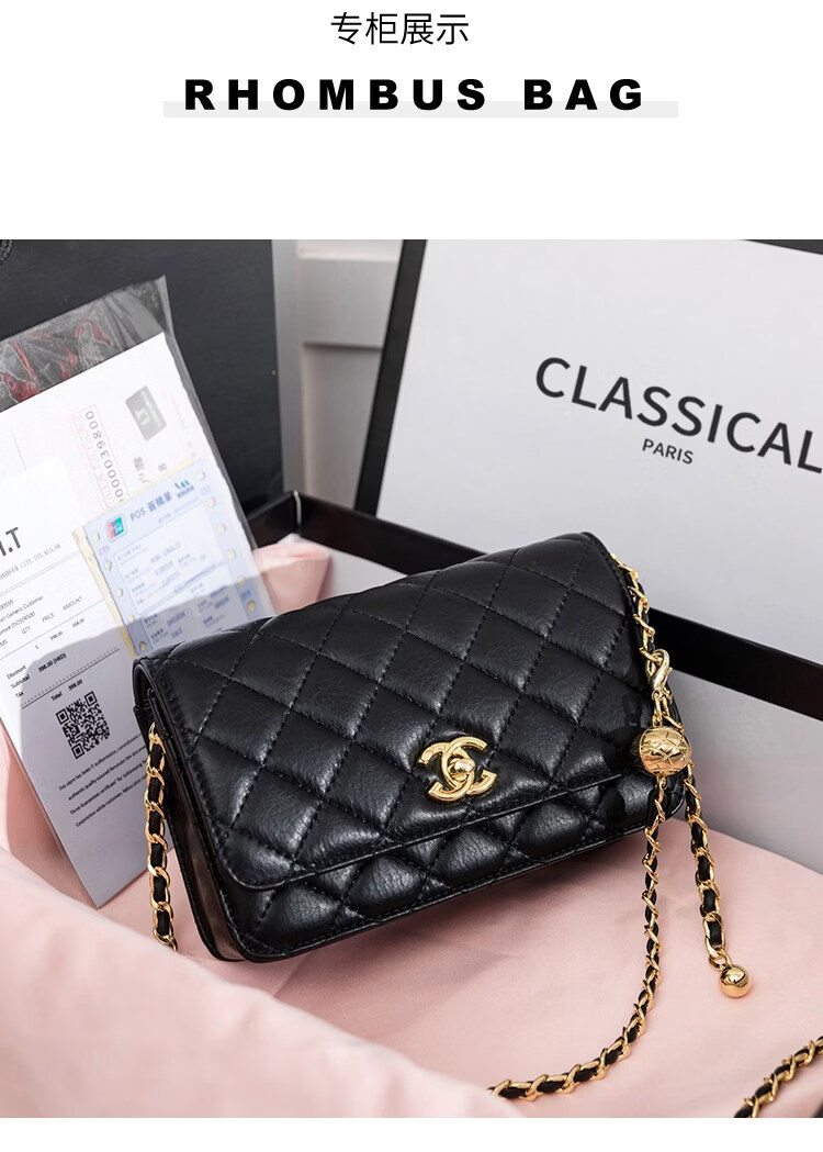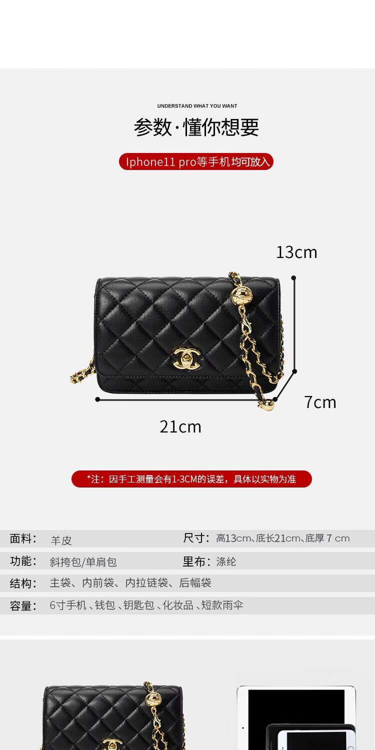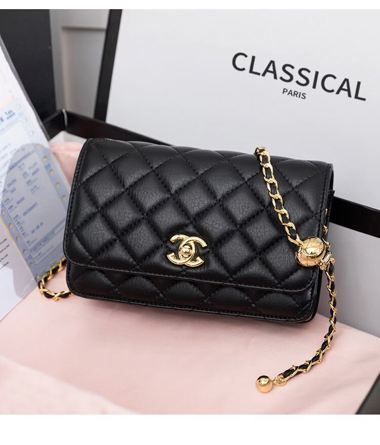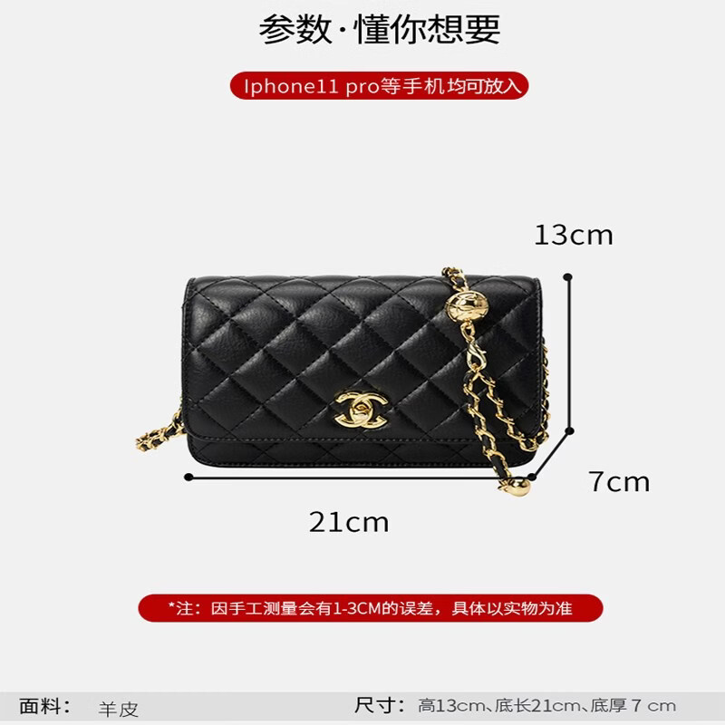 香奈小香儿包包女士新款真皮小金球单肩小方包小香儿时尚链条斜挎包 黑色