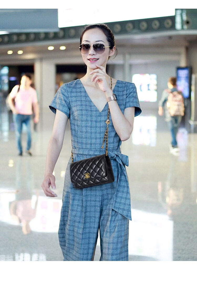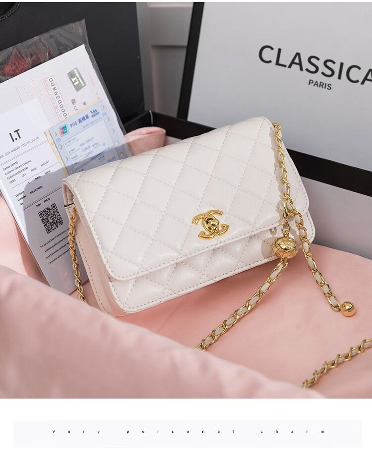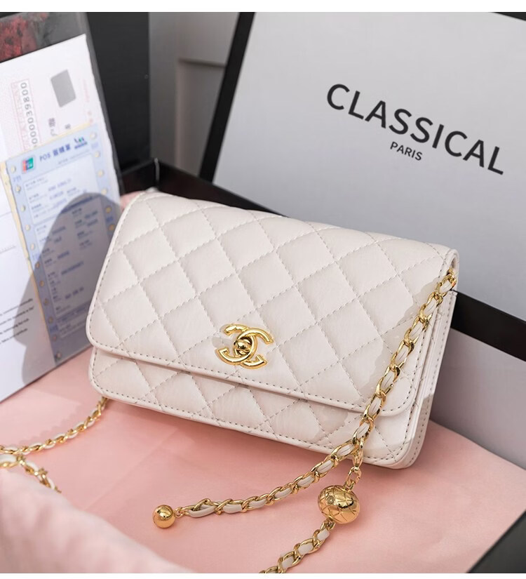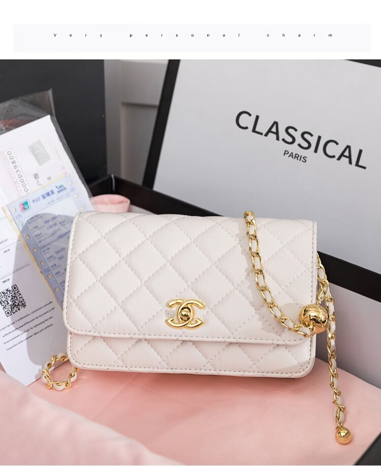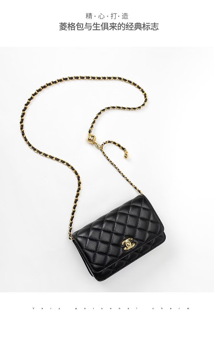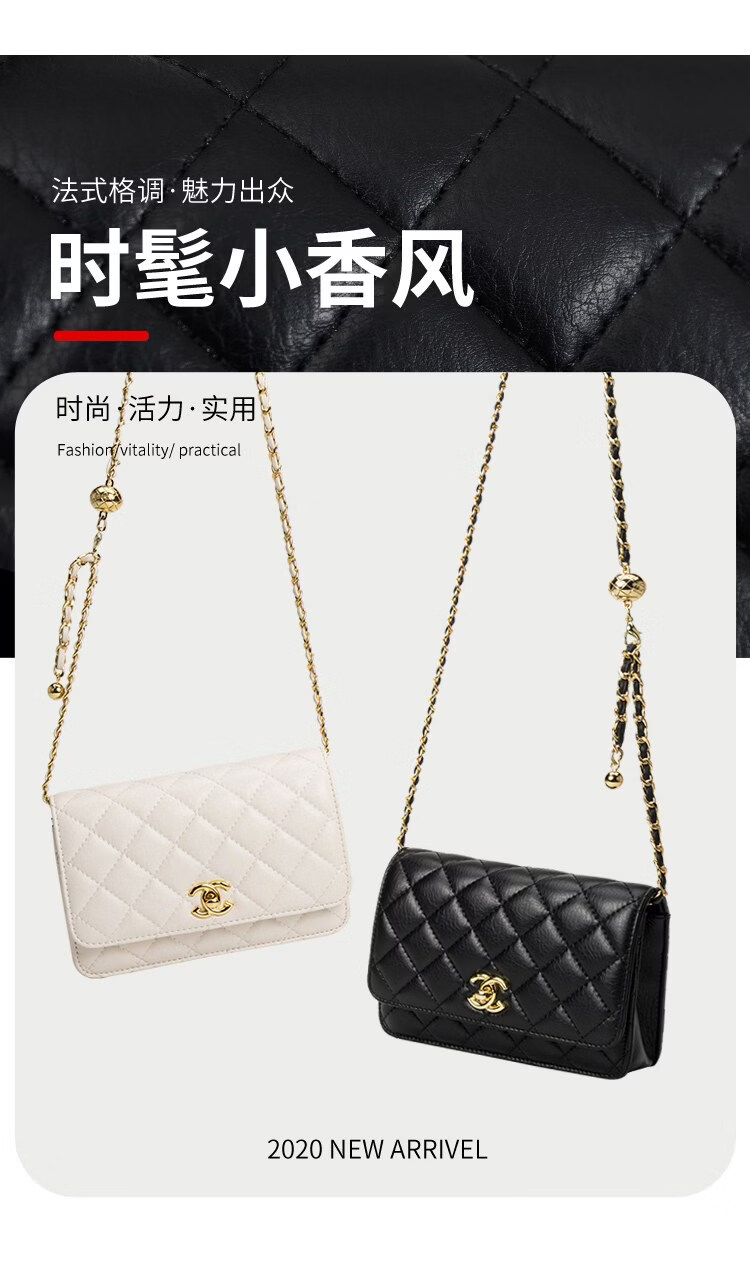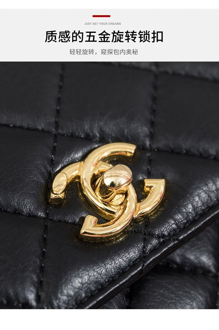 香奈小香儿包包女士新款真皮小金球单肩小方包小香儿时尚链条斜挎包 黑色
