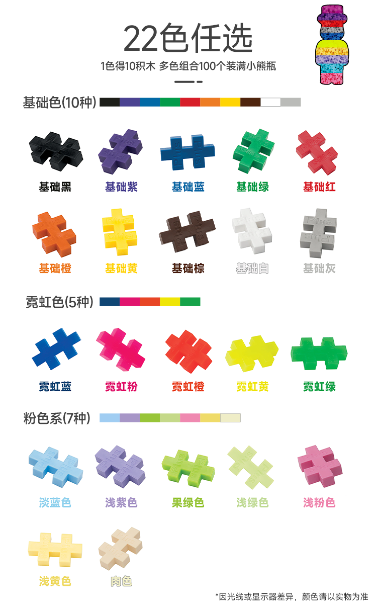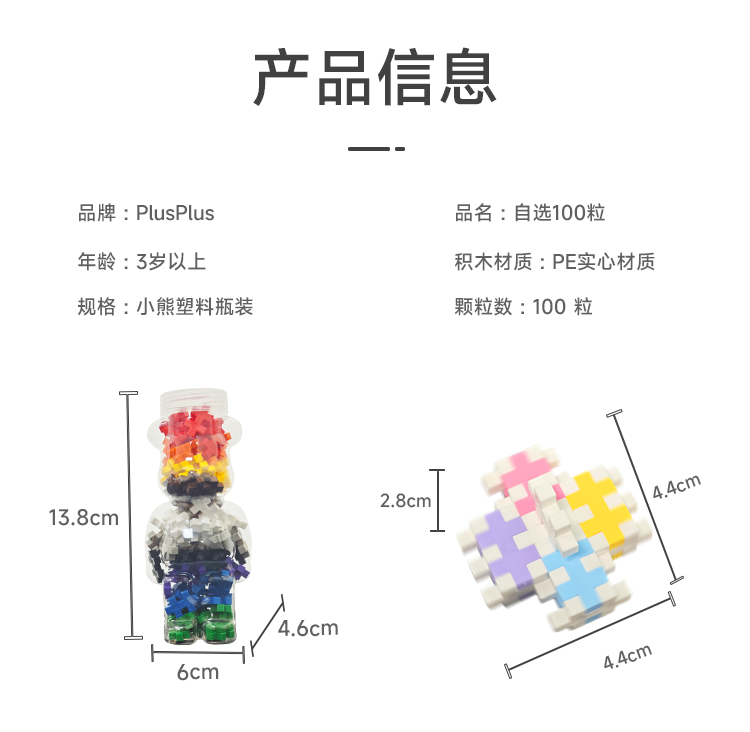 Plus-plus加加丹麦原装进口儿童益智积木拼搭旋转陀螺解压大人放松玩具 选10色,每种10粒【100粒】备注