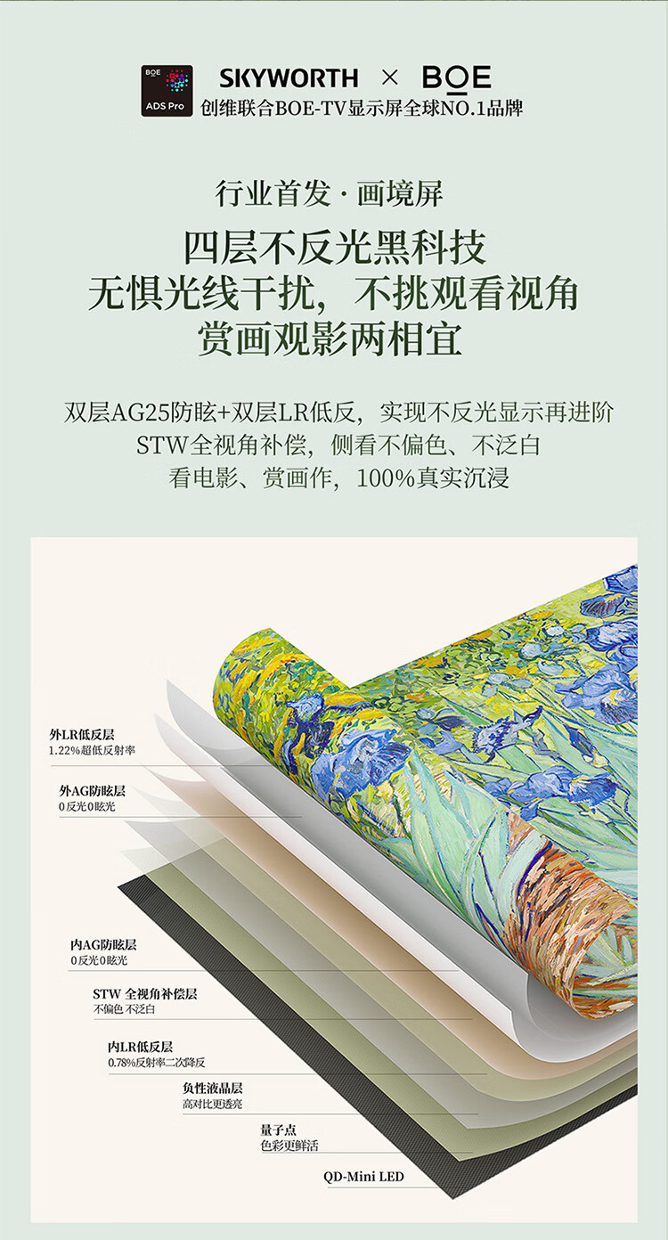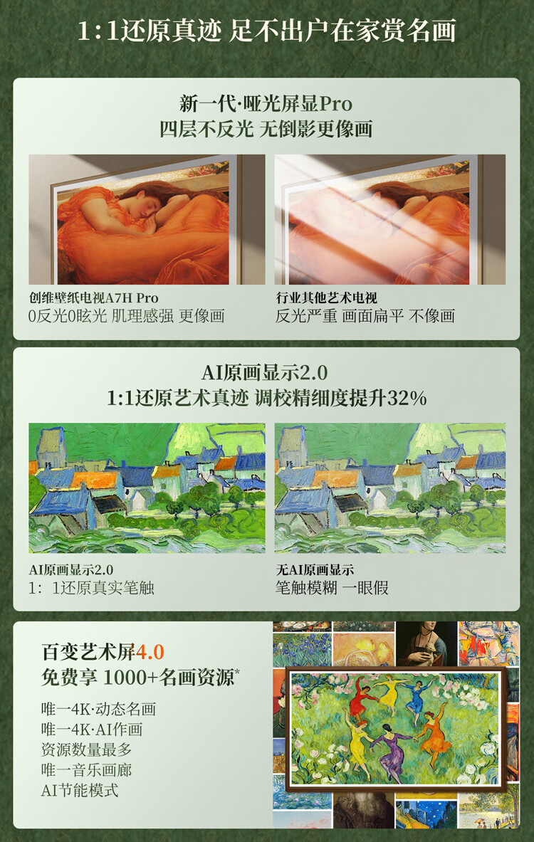 创维电视 55A7H pro 55英寸艺术壁纸电视Mini LED 3.9cm超薄无缝贴墙 平板电视机 家电国家补贴 55英寸 新品上市 咨询客服领好礼