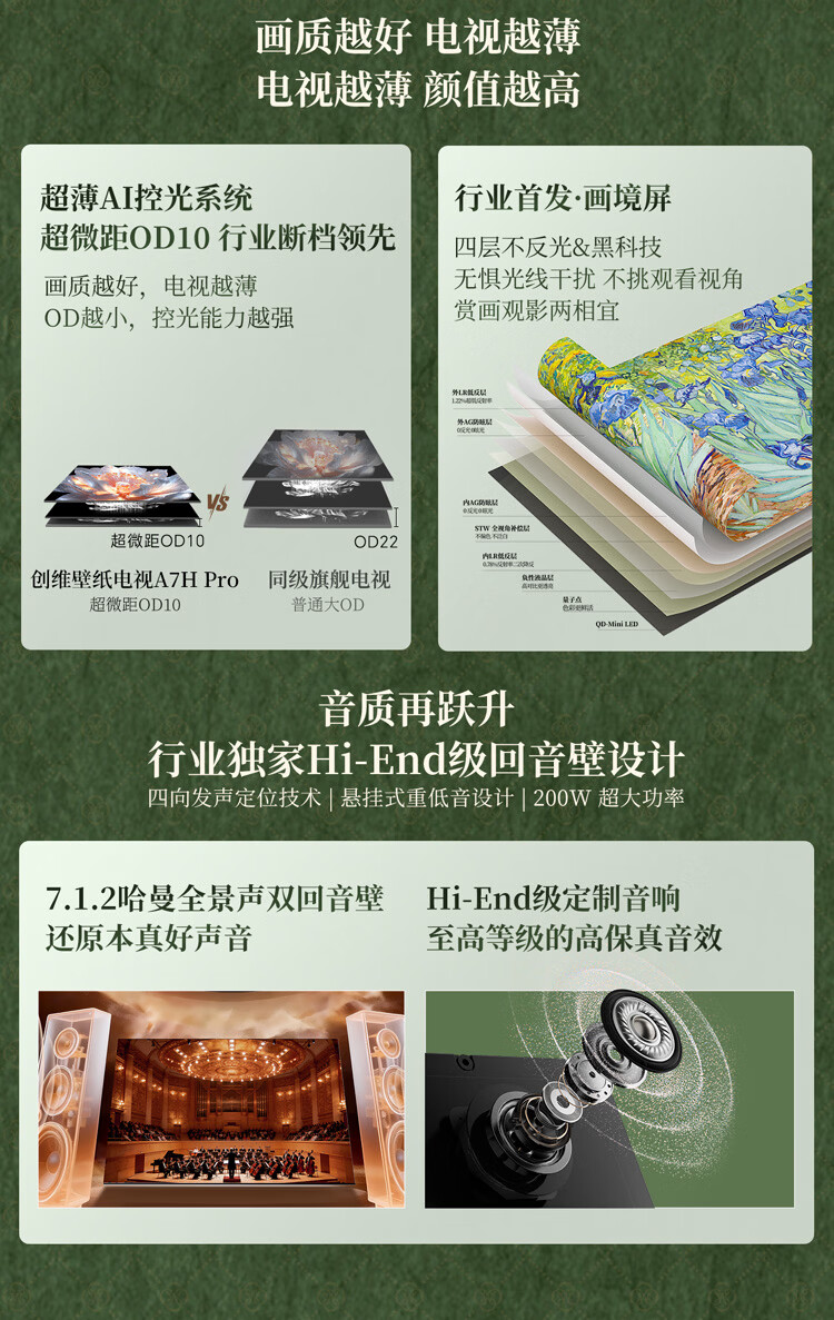 创维电视75A7H 75英寸【送装一体-固定挂架】艺术壁纸电视Mini LED3.9cm超薄平板电视机 家电国家补贴